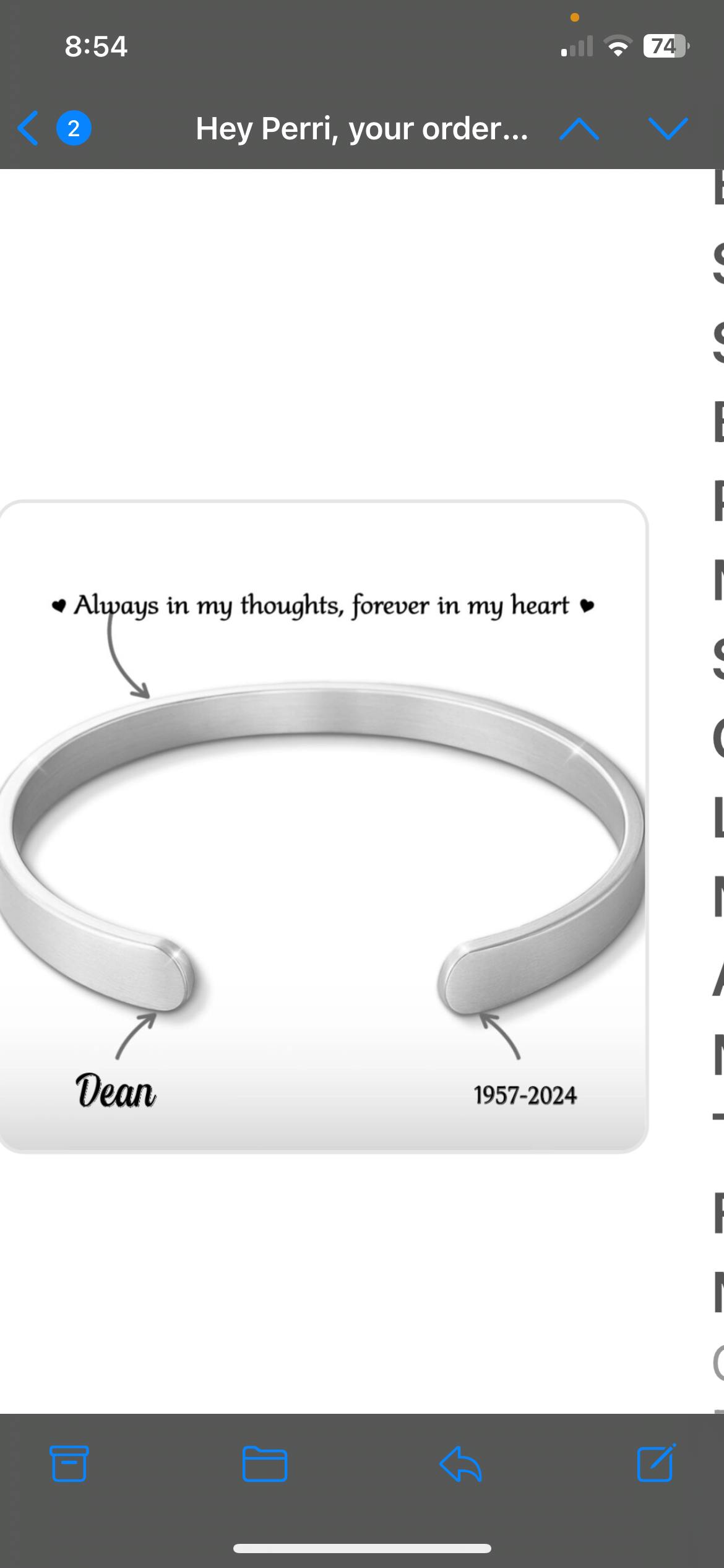 I ordered this bracelet for my girlfriend who lost her husband in 2024 and had it mailed to her on the first anniversary of his loss. She said it was beautiful and will always cherish it ♥️