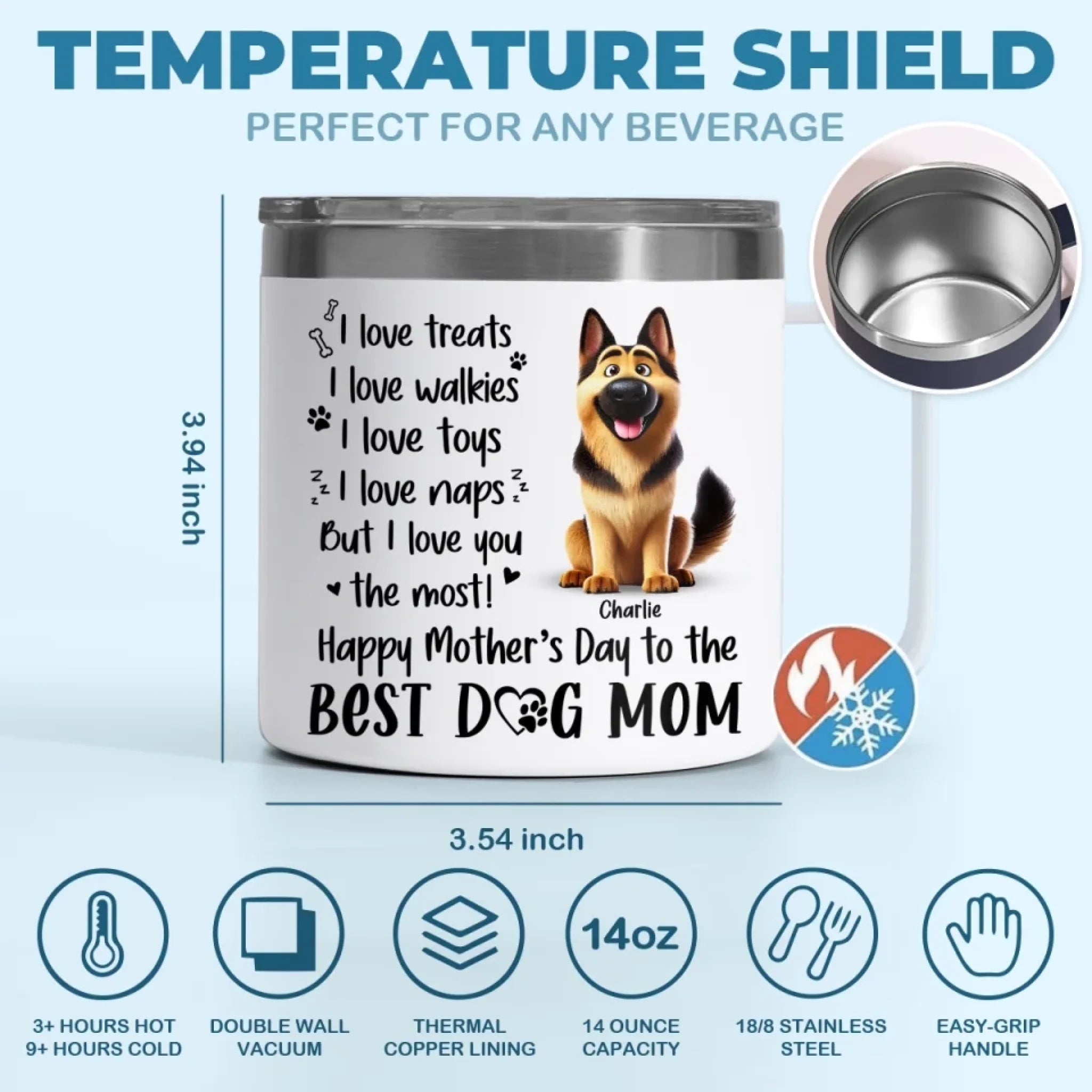 A Dog’s Love Never Ends - Dog Personalized Custom 14oz Stainless Steel Tumbler With Handle - Gift For Pet Owners, Pet Lovers