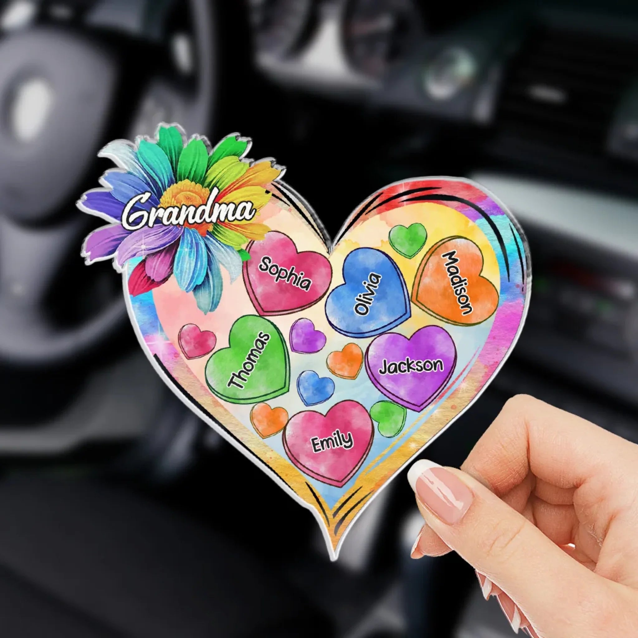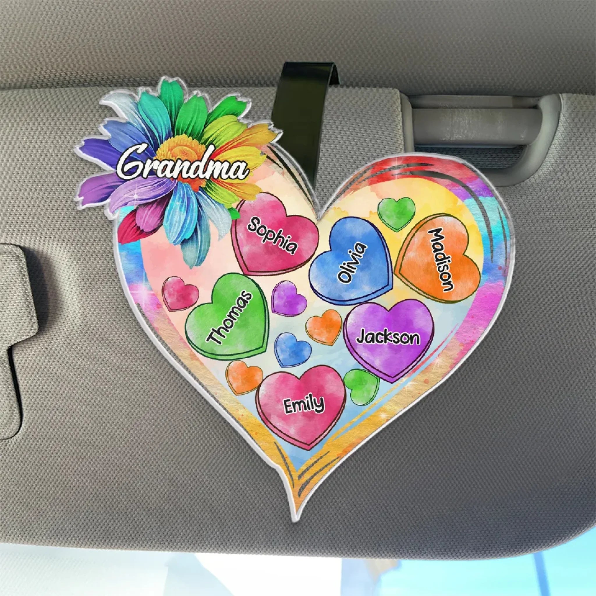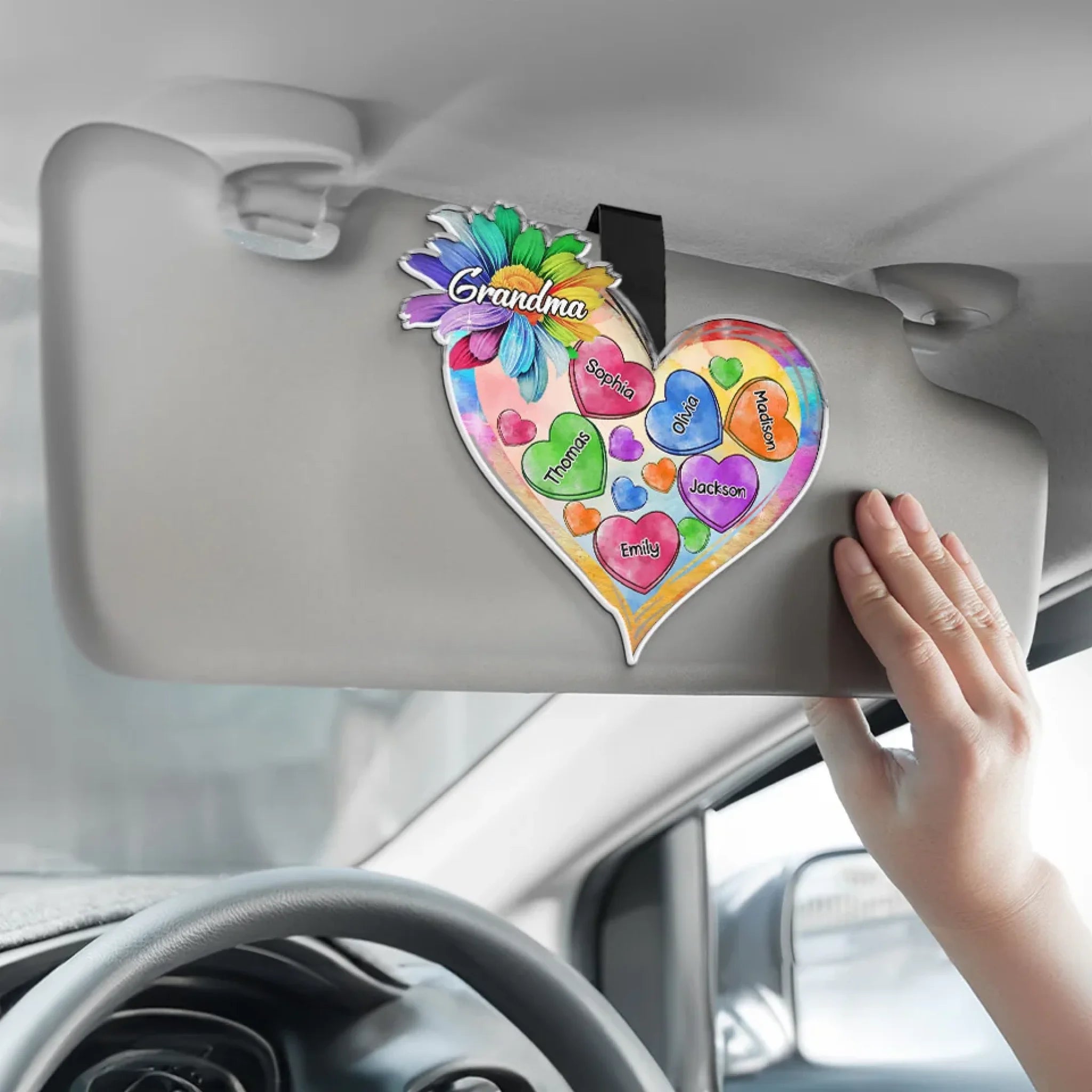 A Grandma Is Warm Hugs And Sweet Memories - Family Personalized Custom Car Visor Clip - Gift For Mom, Grandma