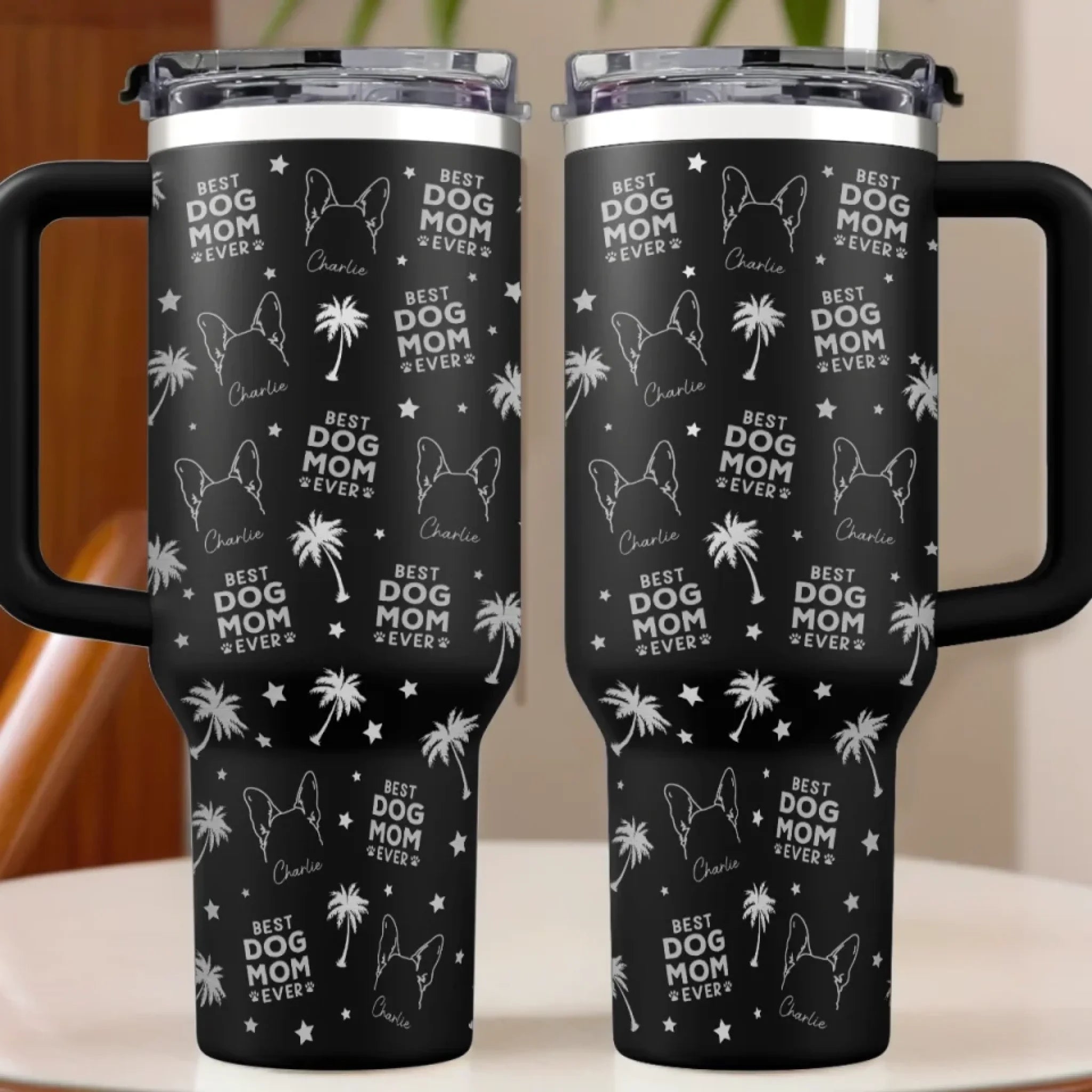 A Happy Pup Makes A Happy Mom - Dog Personalized Custom Engraved 40oz Tumbler With Handle - Gift For Pet Owners, Pet Lovers
