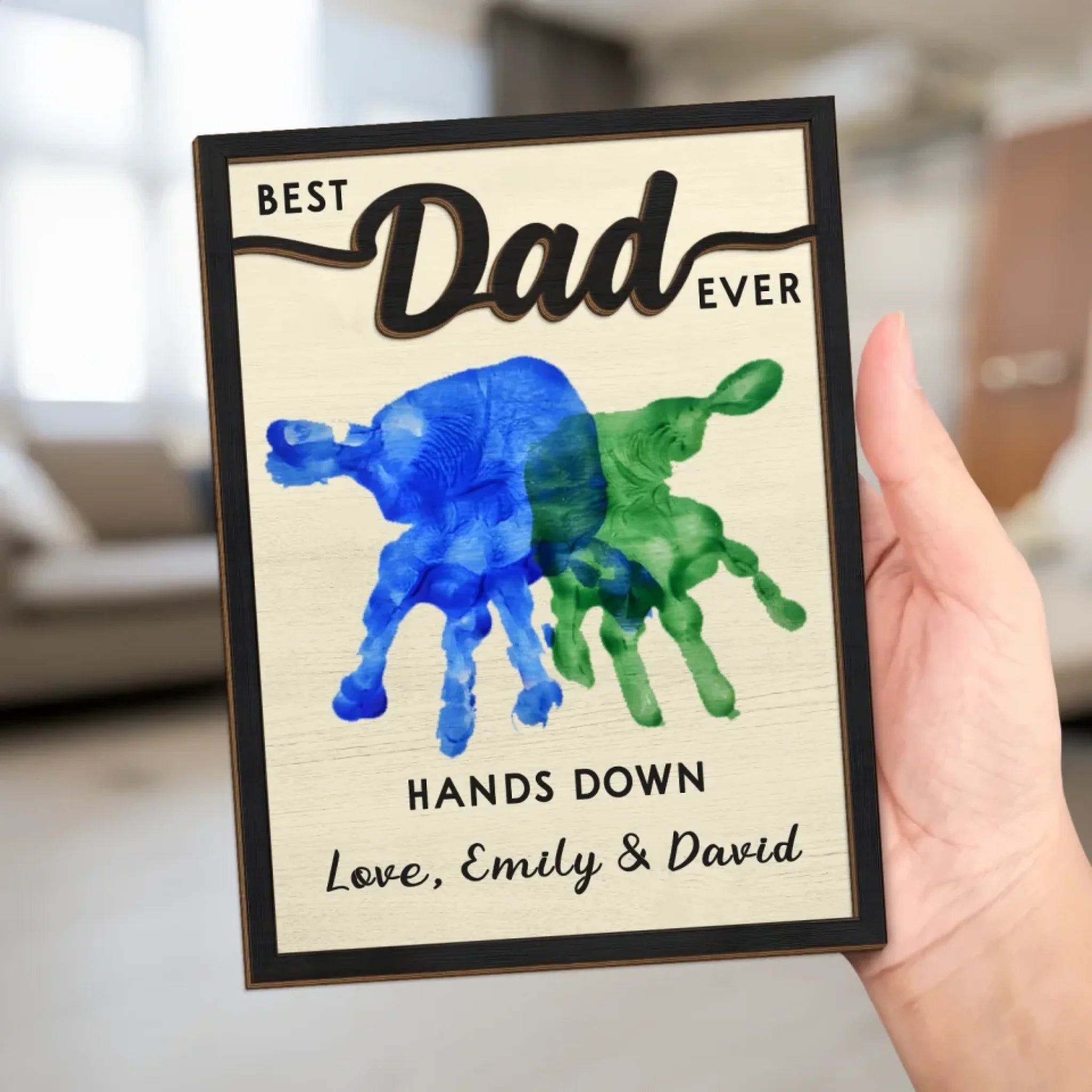 Best Dad Ever, Hands Down - Family Personalized Custom 2-Layered Wooden Plaque With Stand - Father's Day, Gift For Dad, Grandpa