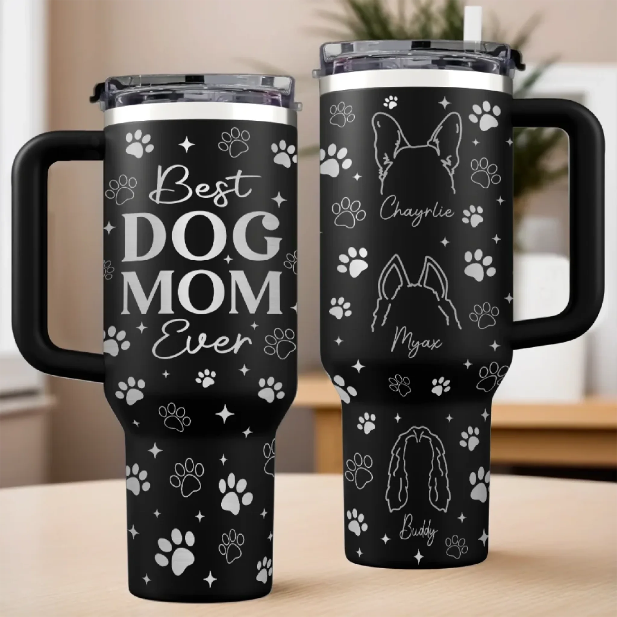 Best Dog Mom Ever - Dog Personalized Custom Engraved 40oz Tumbler With Handle - Gift For Pet Owners, Pet Lovers