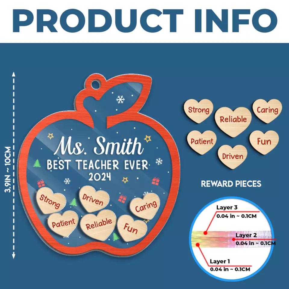 Best Teacher Ever - Teacher Personalized Custom 3 Layers Shaker Ornament - Christmas Gift For Teacher