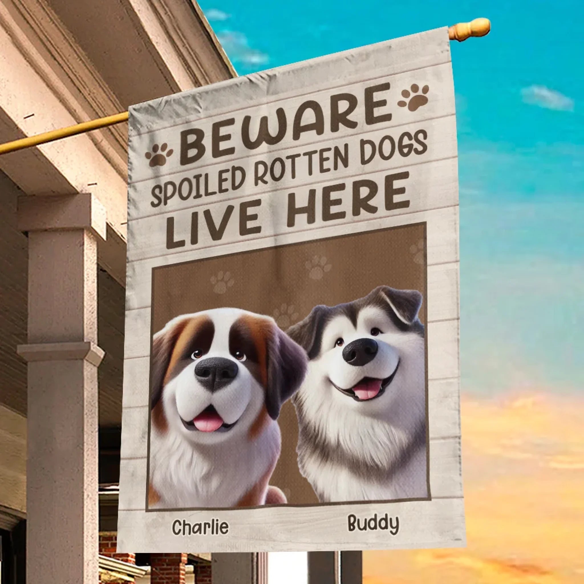 Beware Spoiled Rotten Dog Lives Here - Dog Personalized Custom Flag - Gift For Pet Owners, Pet Lovers