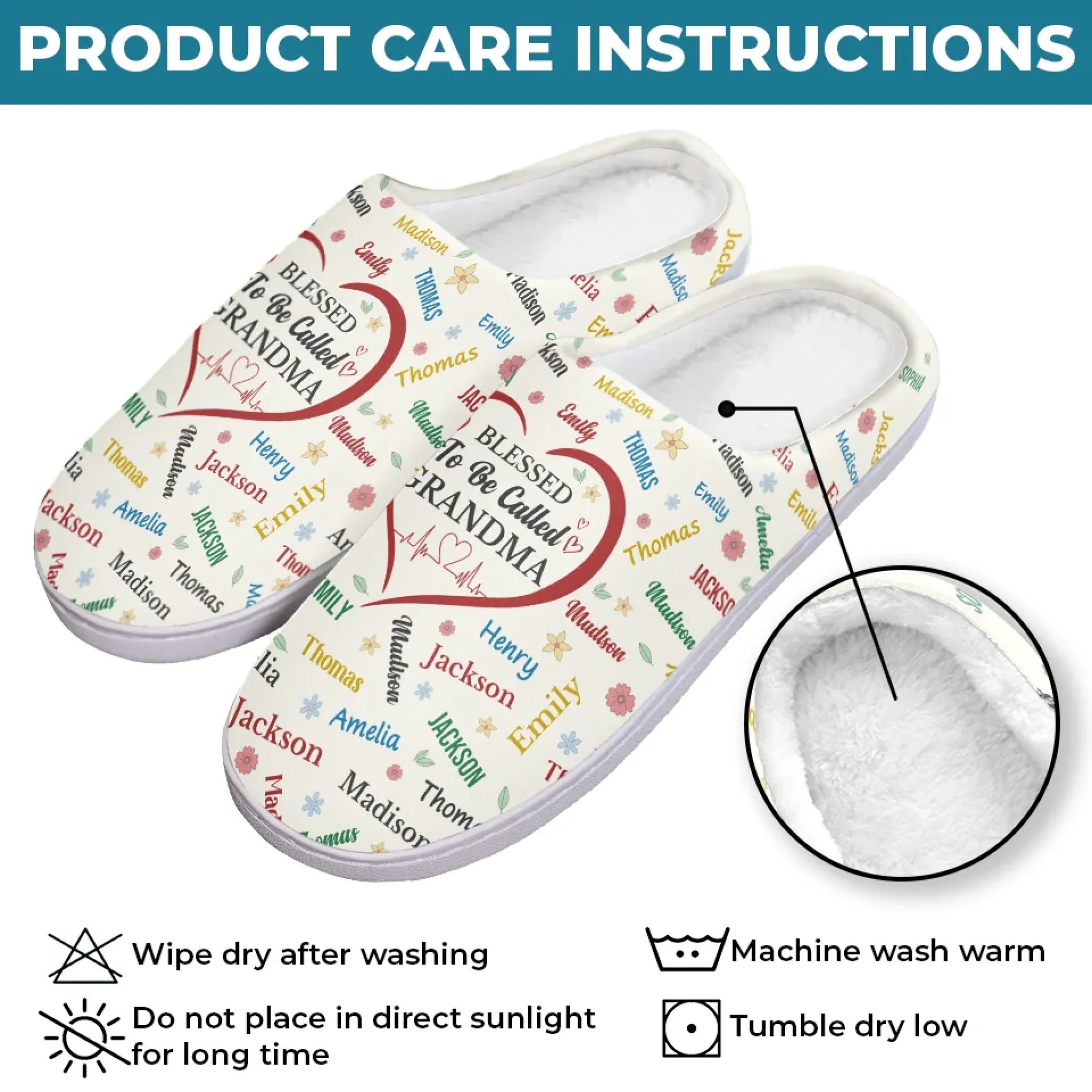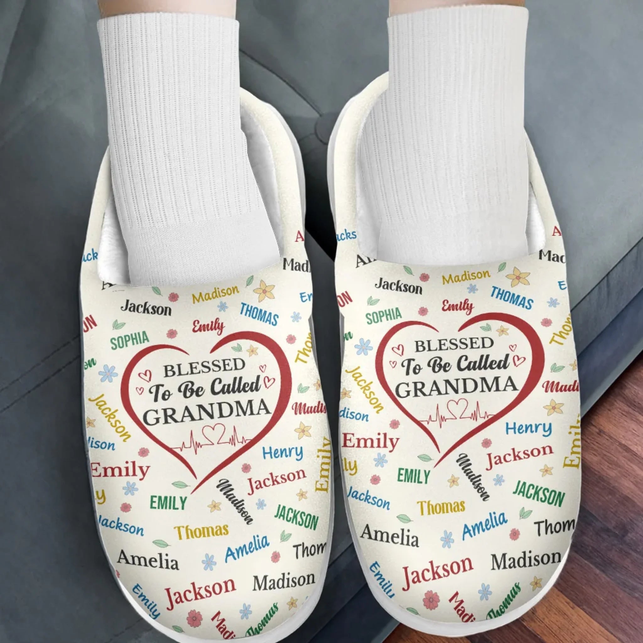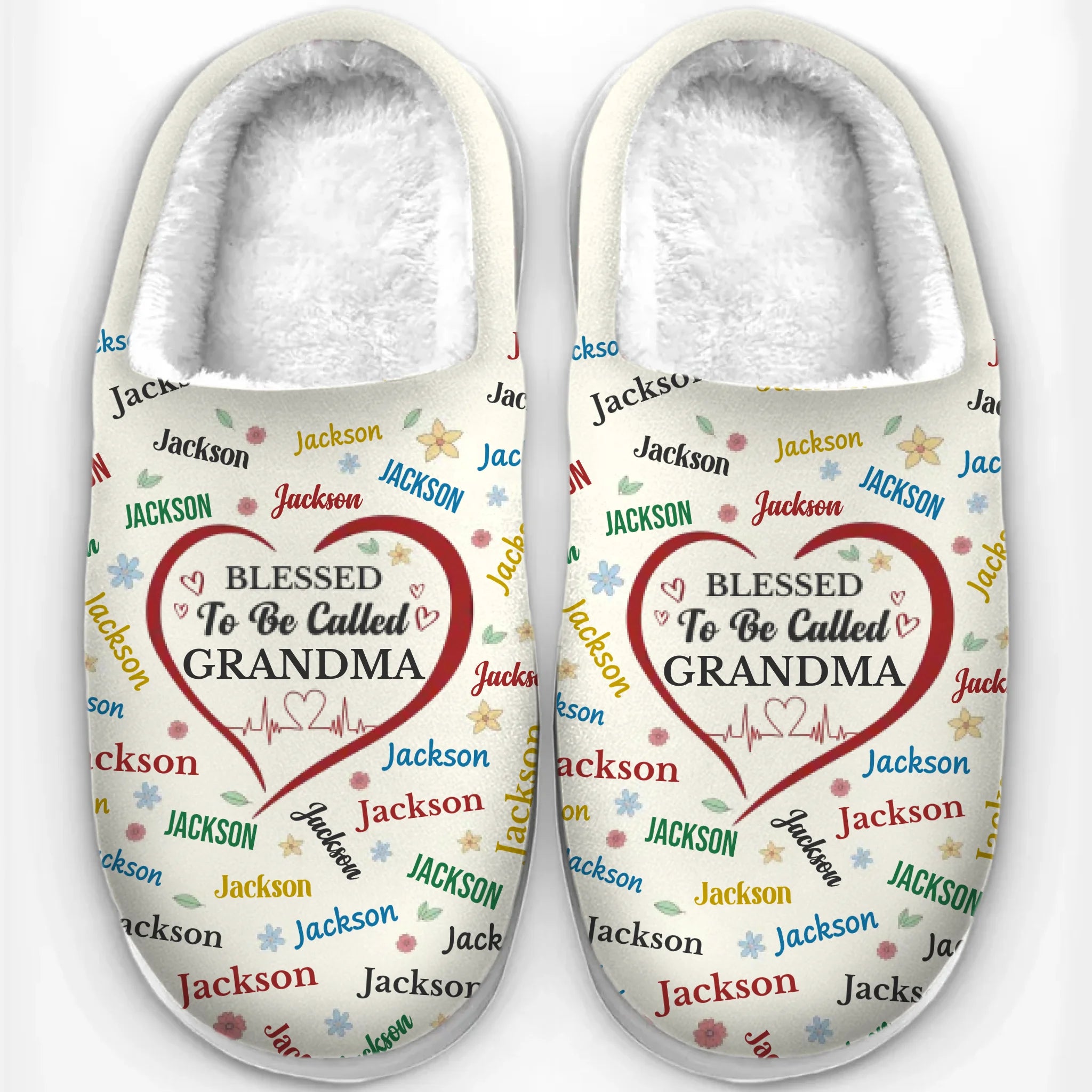 Blessed To Be Called Grandma - Family Personalized Custom Fluffy Slippers - Mother's Day, Gift For Mom, Grandma