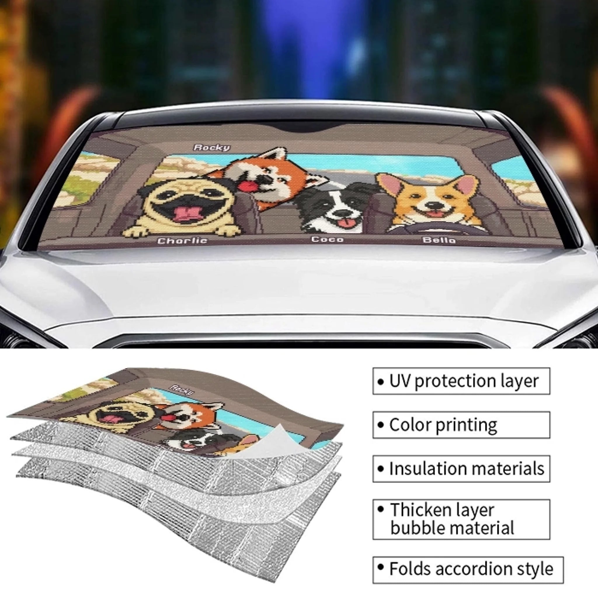 Personalized auto sunshade is an excellent way to protect your vehicle from harmful ultraviolet radiation while maintaining the original interior and extending the life of dashboards, radios, LCD screens, GPS systems, and other electronic equipment without fading or cracking! It's also a great gift for your loved ones who want to make their cars more appealing.