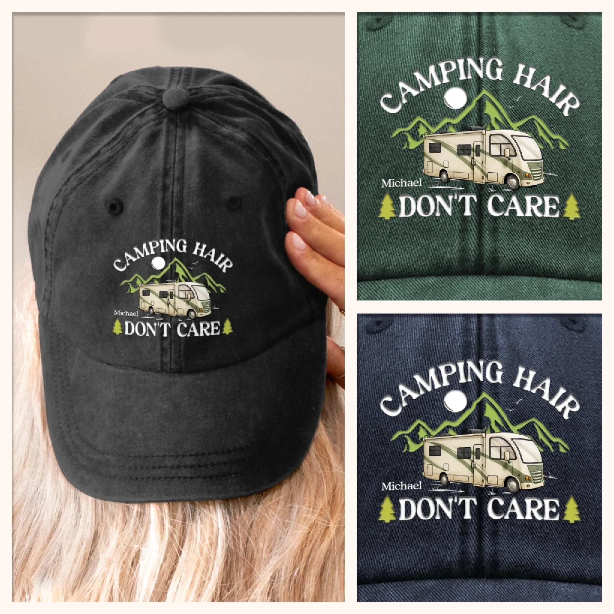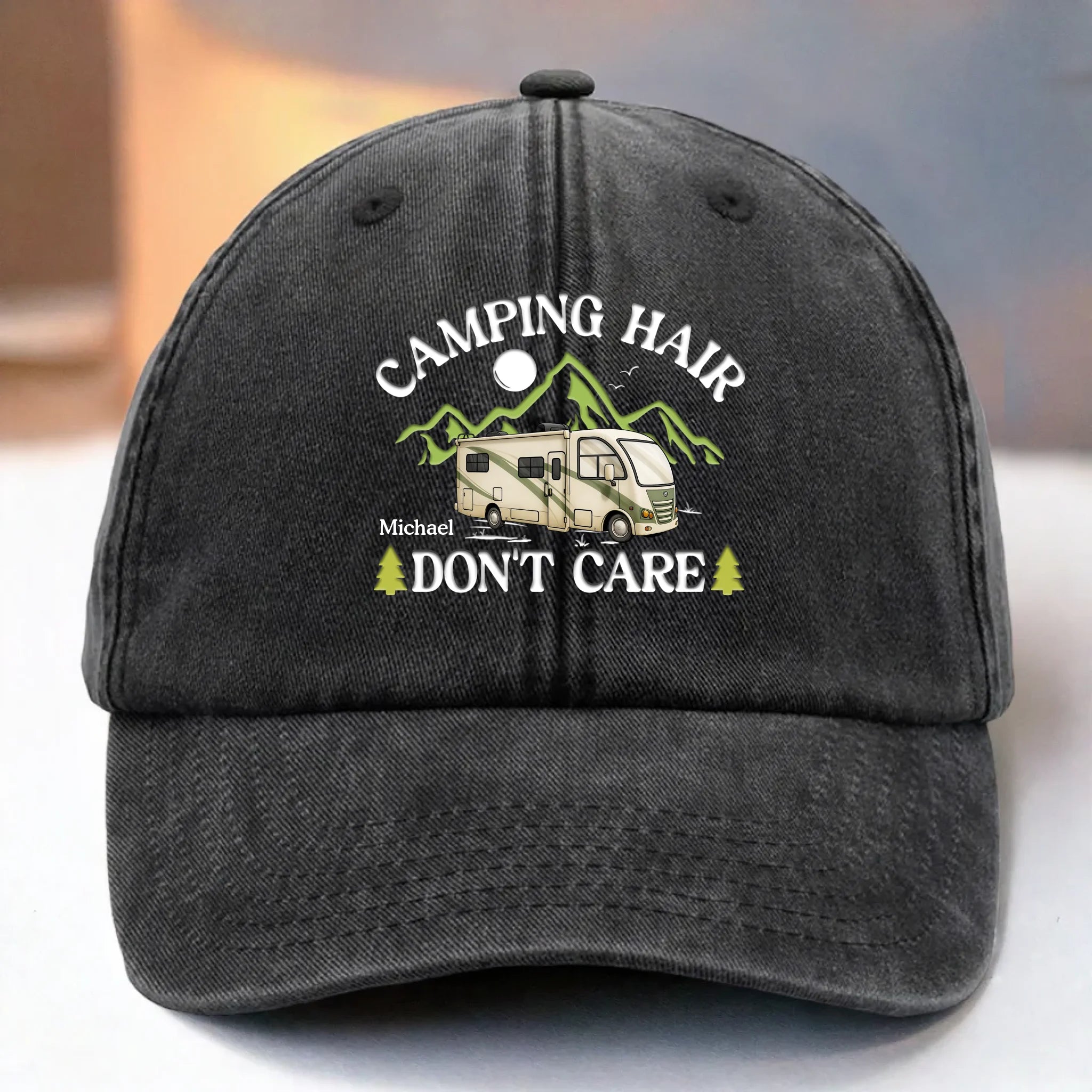 Camping Is My Therapy - Camping Personalized Custom Vintage Washed Denim Baseball Cap - Gift For Camping Lovers