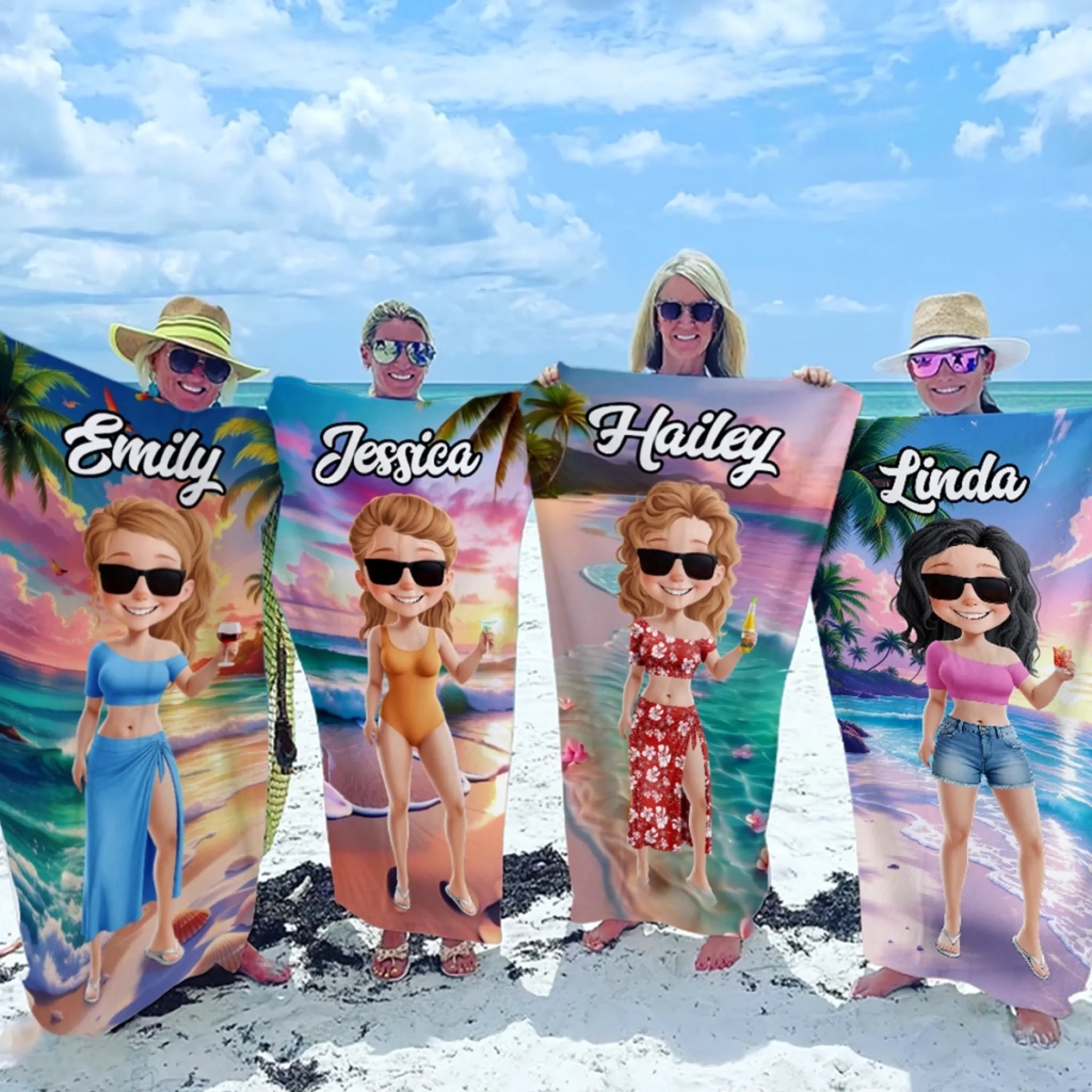 Catch Me Where The Waves Are - Bestie Personalized Custom Beach Towel - Summer Vacation Gift, Birthday Pool Party Gift For Best Friends, BFF, Sisters