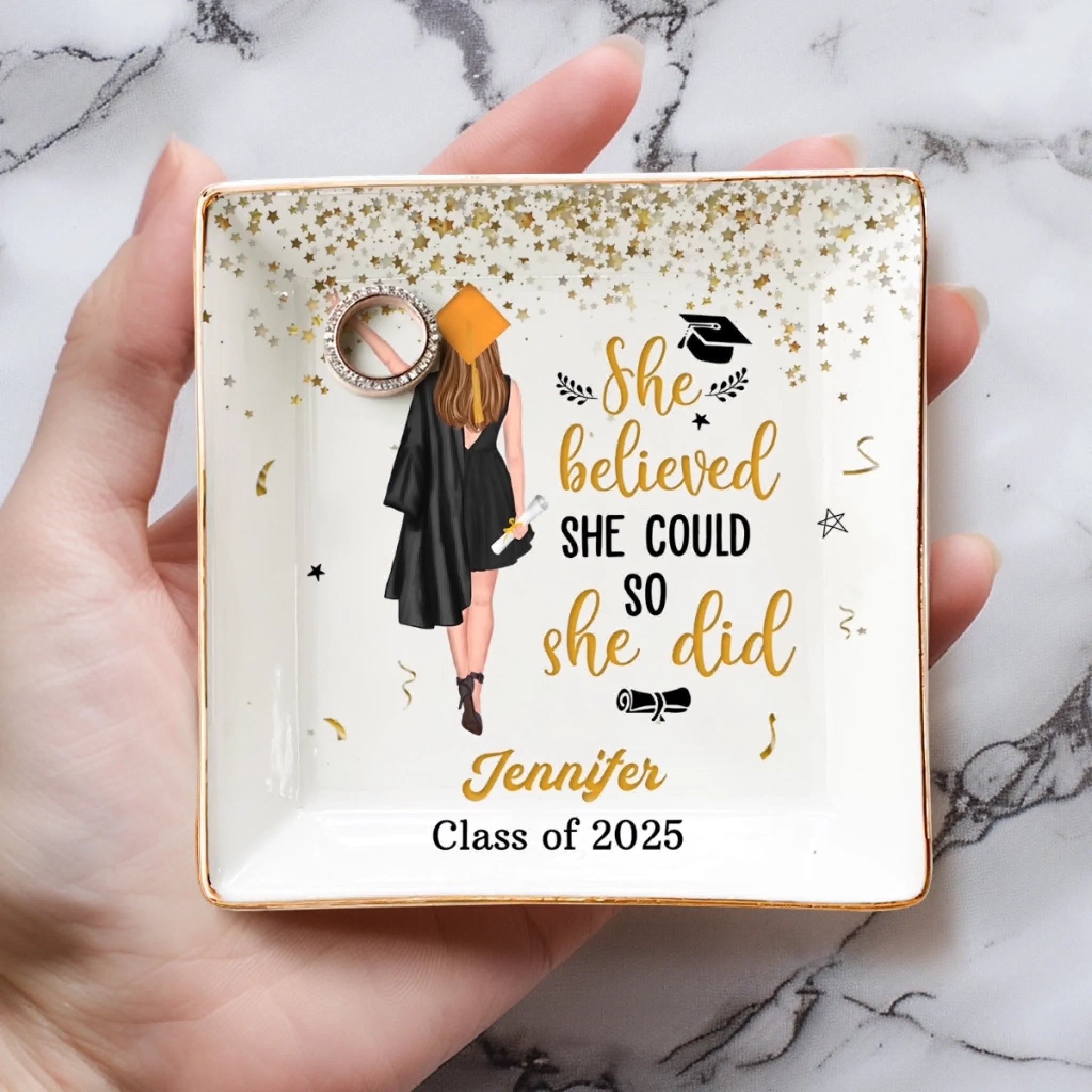 Elevate your space with this elegant full-print jewelry dish—where style meets functionality. Designed to beautifully organize and showcase your cherished jewelry, this exquisite piece adds a touch of sophistication to any setting. This is the perfect gift for anyone, suitable for all occasions: birthdays, holidays, anniversaries, graduations, Valentine's Day, Mother's Day, Father's Day, and just because! Whether for friends, family, or that special someone, this versatile gift is guaranteed to bring joy and make lasting memories.