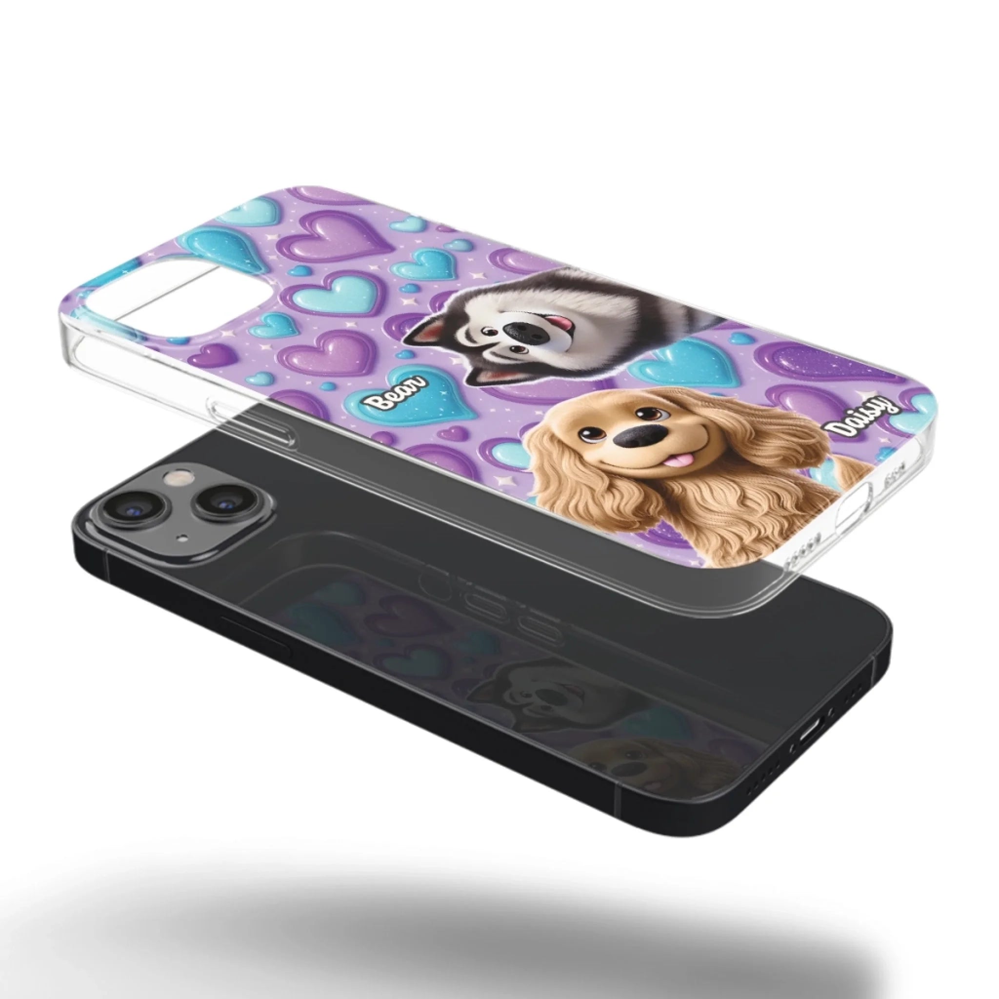 Custom 3D Inflated Effect Printed Clear Phone Case - Personalized Birthday Gifts For Dog Lovers, Dog Dad And Mom - Surrounded By Your Love