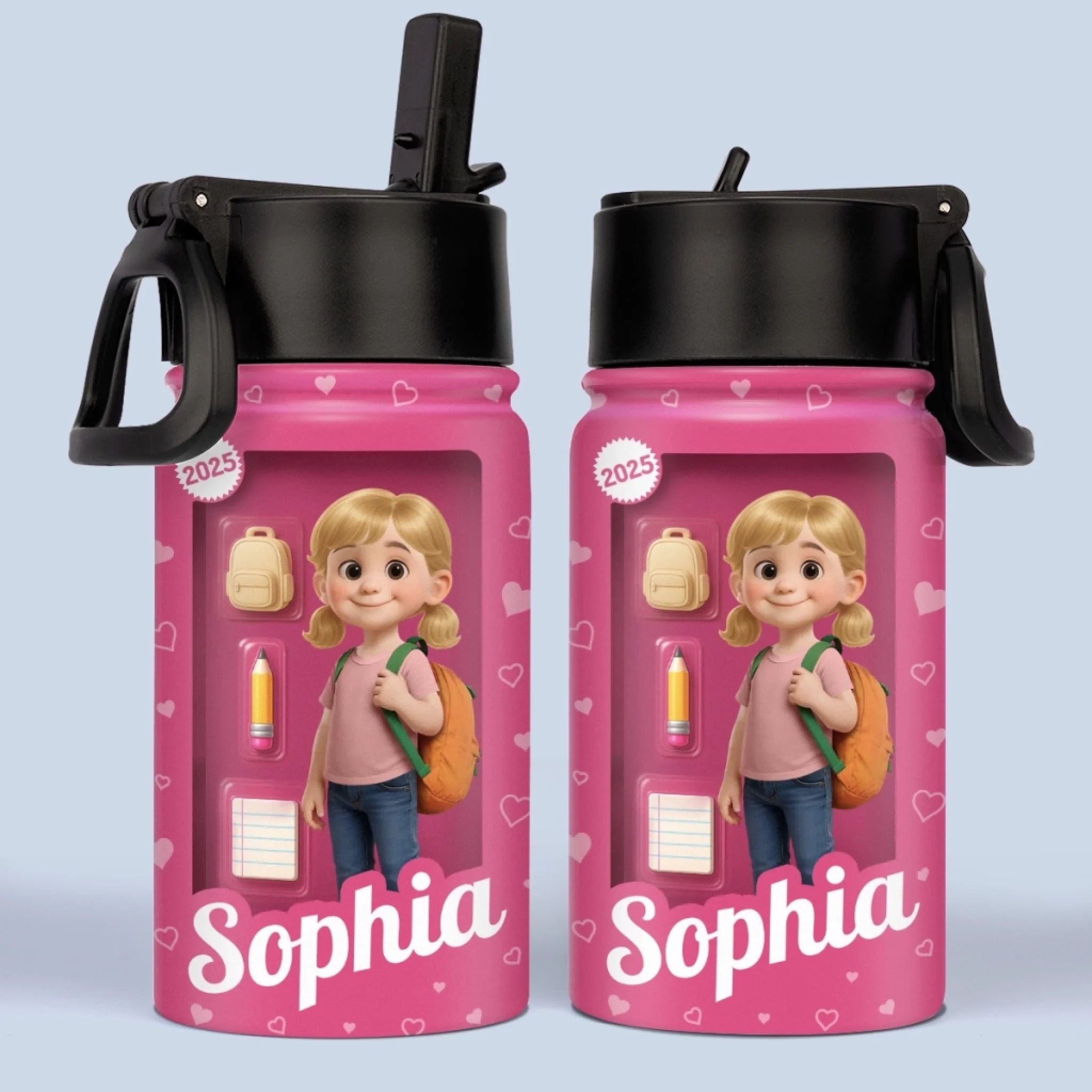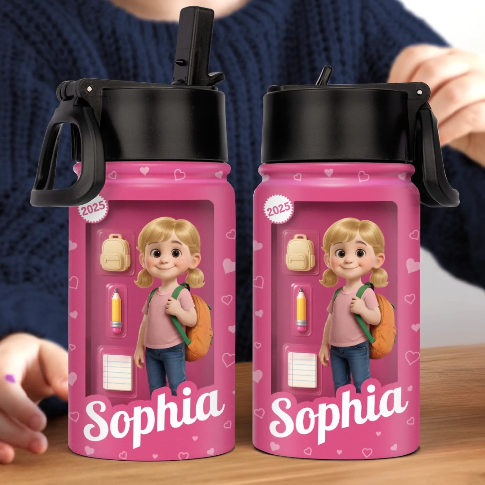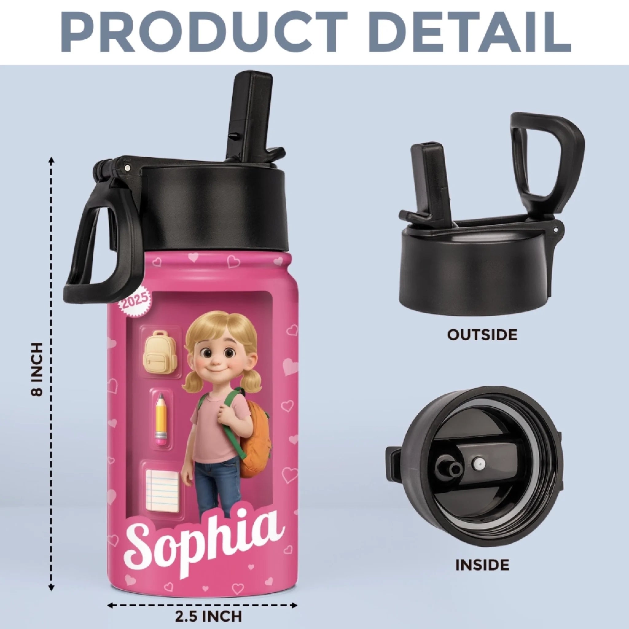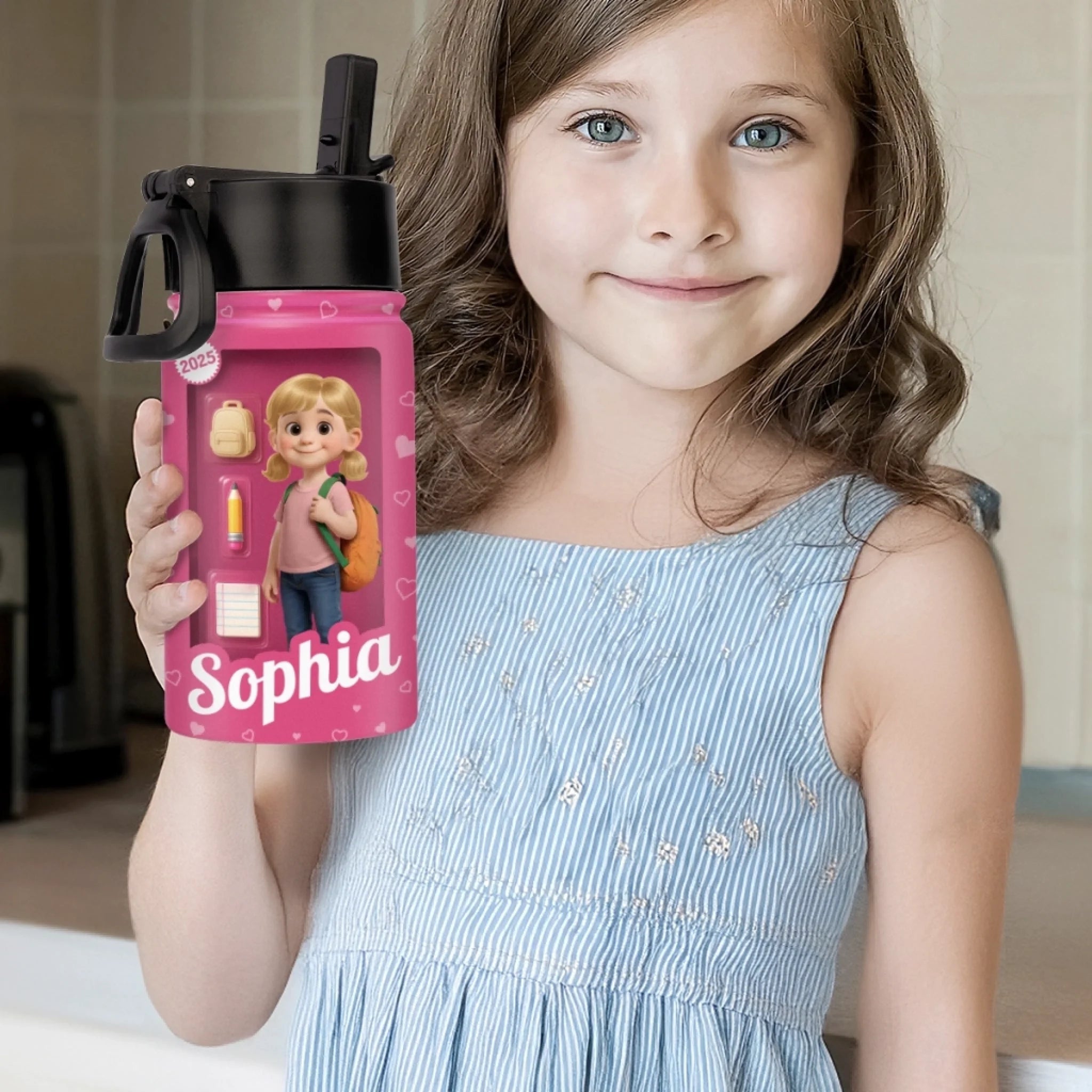 Custom 3D Inflated Effect Printed Kids Water Bottle - Personalized Back To School Gifts For Kids - Every Day Is A New Page In Your Story