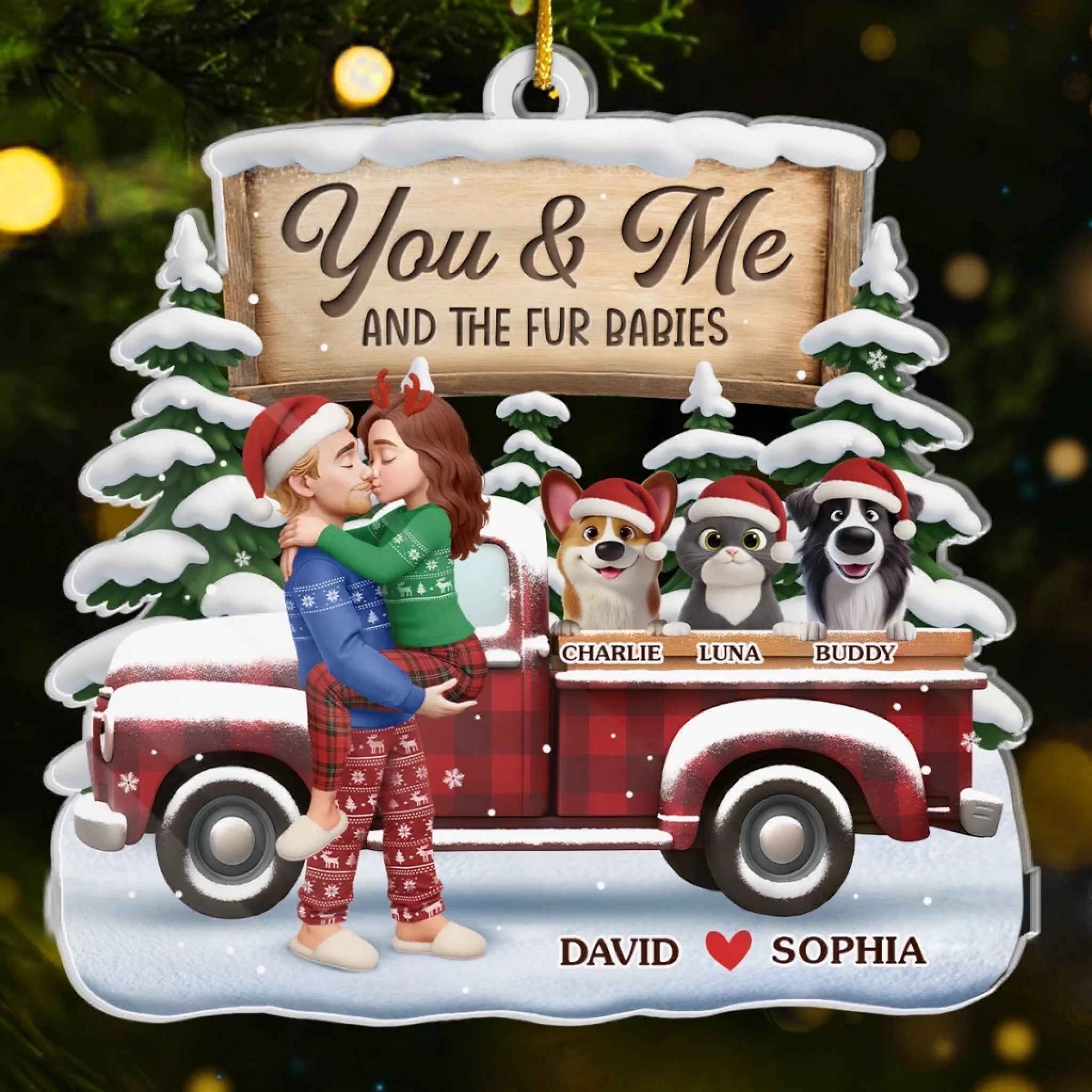 Custom Acrylic Ornament - Personalized Anniversary Christmas Wedding Gifts For Husband And Wife, Dog Cat Lovers - Just Two Humans And A Fur Army