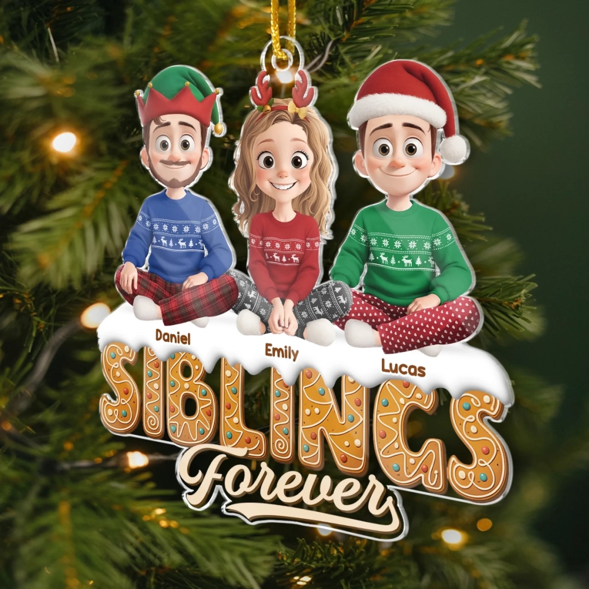 Custom Acrylic Ornament - Personalized Christmas Birthday Gifts For Mom, Dad, Brother, Sister, Kids - Forever Stuck With Each Other