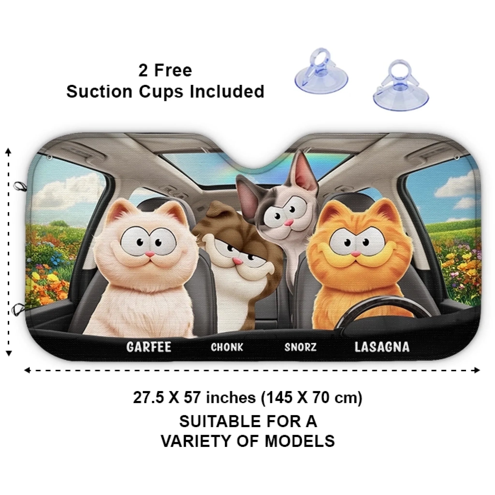 Custom Auto Windshield Sunshade, Car Window Protector - Personalized Summer Vacation And Travel Gifts For Cat Lovers, Cat Mom And Dad - Road Trips With My Furry Crew