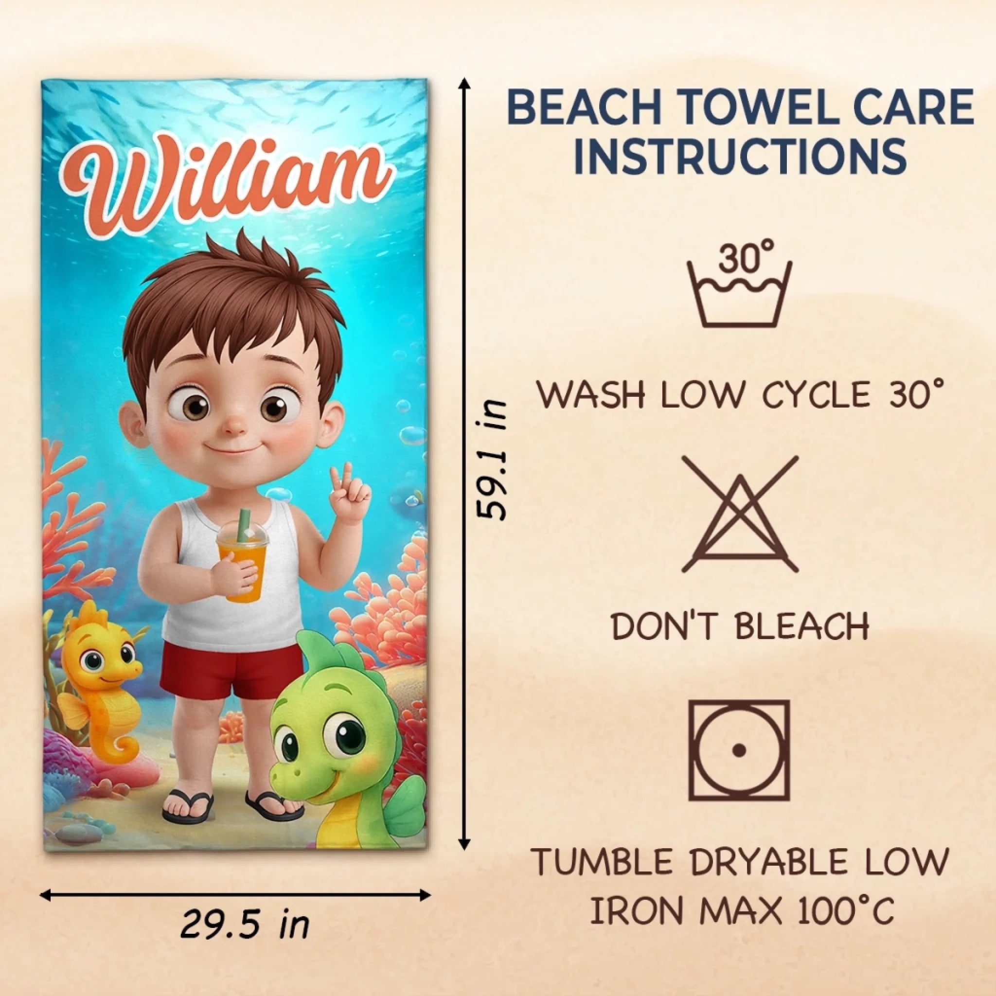 Custom Beach Towel - Personalized Summer Vacation And Travel Gifts For Family, Kids - Stay Cool, Pool Rules