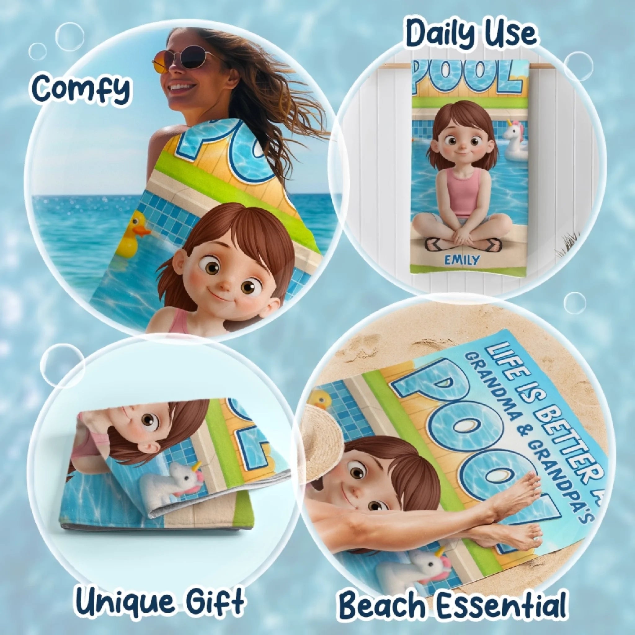Custom Beach Towel - Personalized Summer Vacation And Travel Gifts For Family, Kids - Sunny Days, Happy Waves
