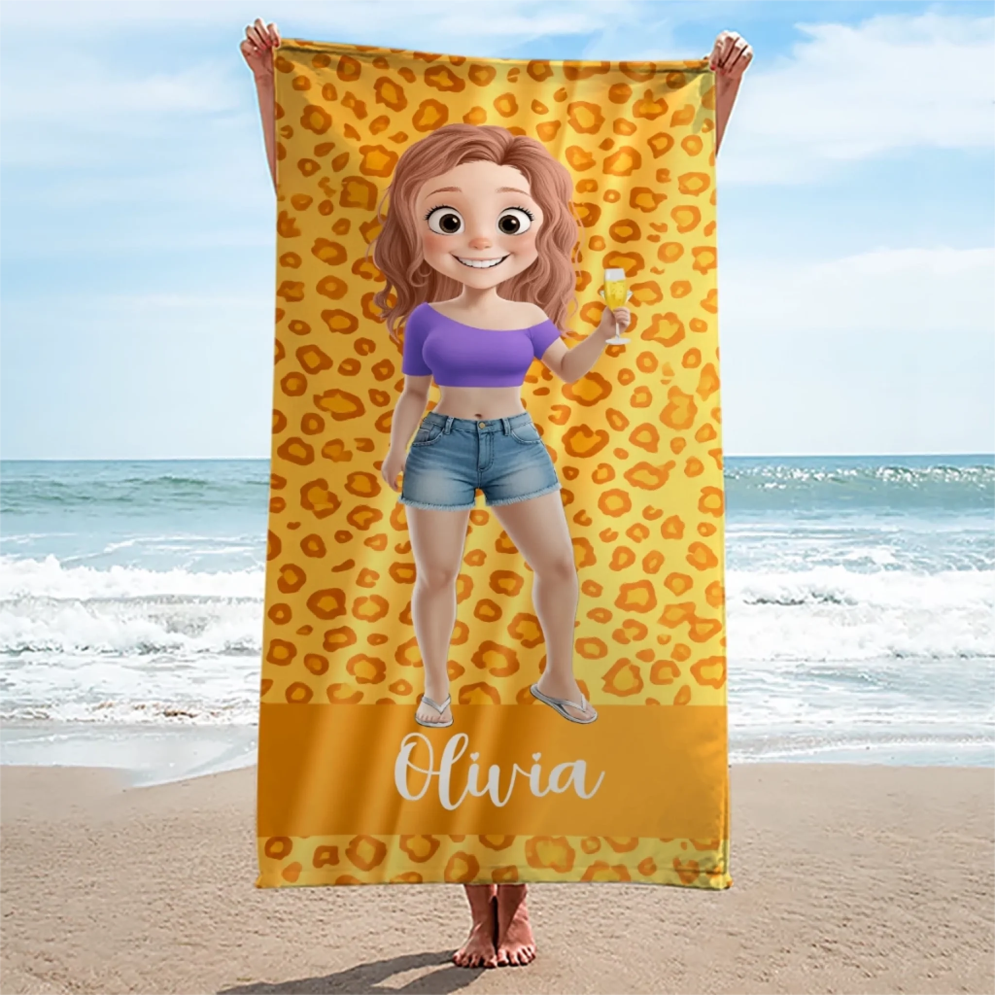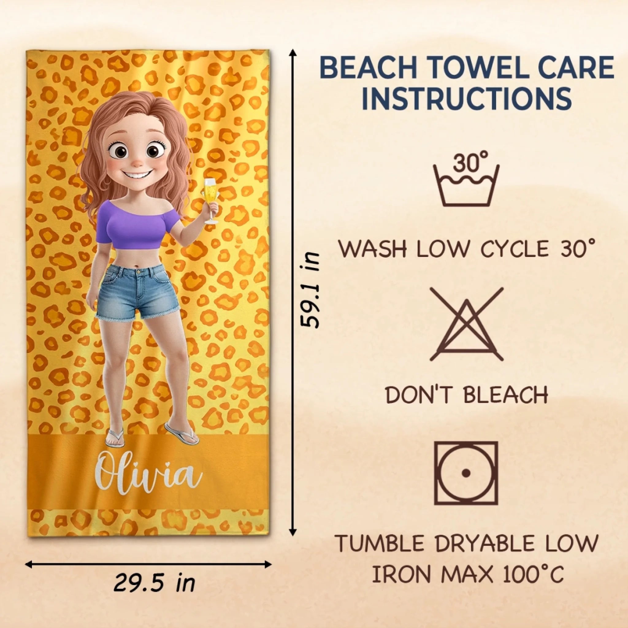 Custom Beach Towel - Personalized Summer Vacation And Travel Gifts For Women - Sun, Sand, And Sips