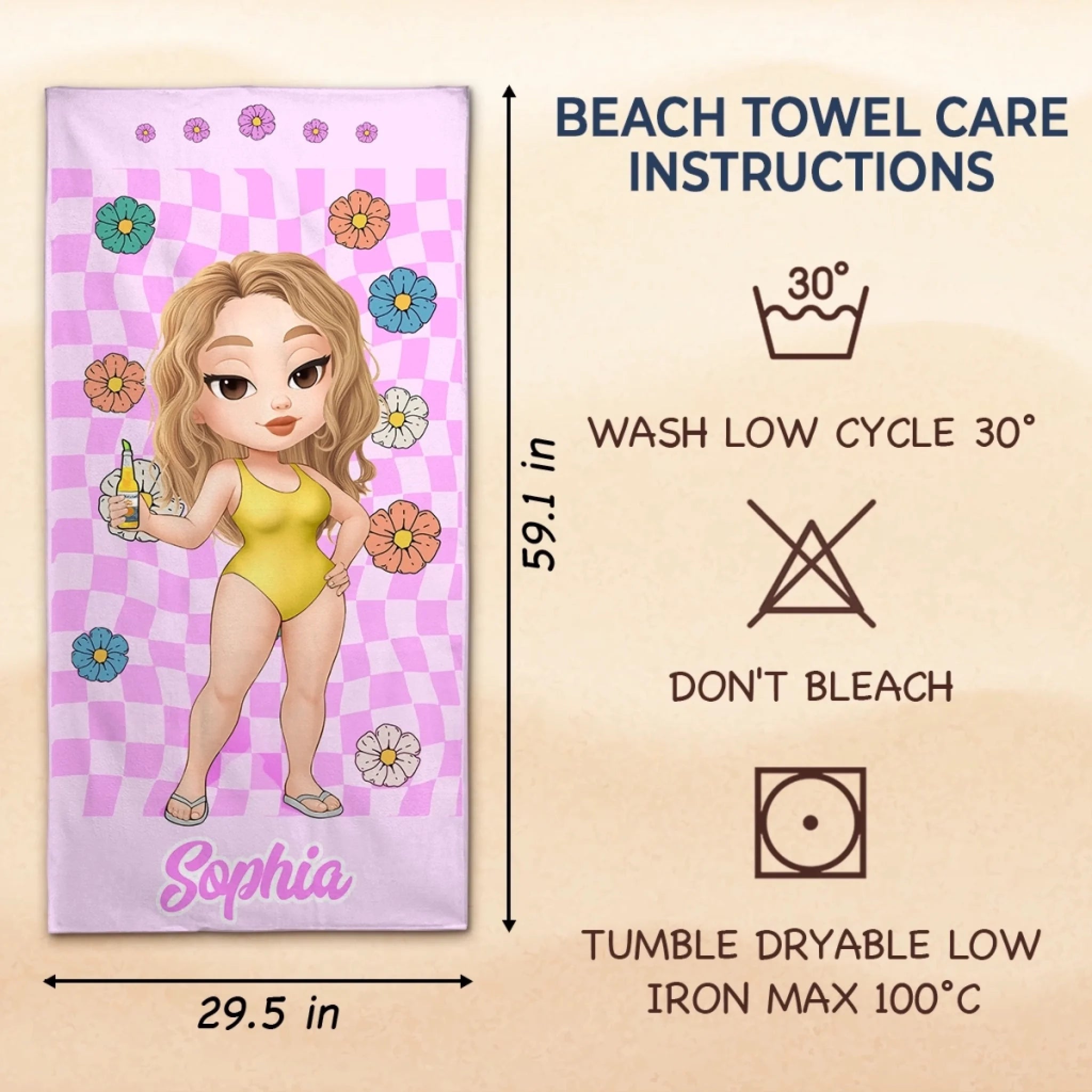 Custom Beach Towel - Personalized Summer Vacation And Travel Gifts For Women - Tropical Vibes All Day