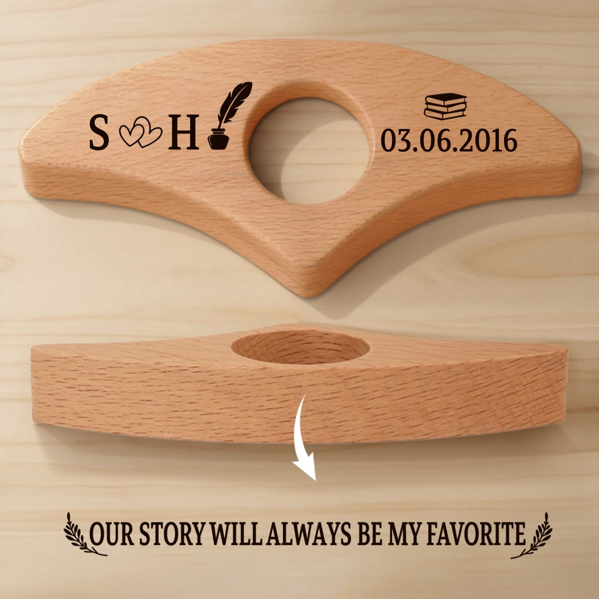 Custom Book Page Holder - Personalized Anniversary Christmas Wedding Gifts For Husband And Wife, Book Lovers, Bookworms - Our Love Reads Like Poetry