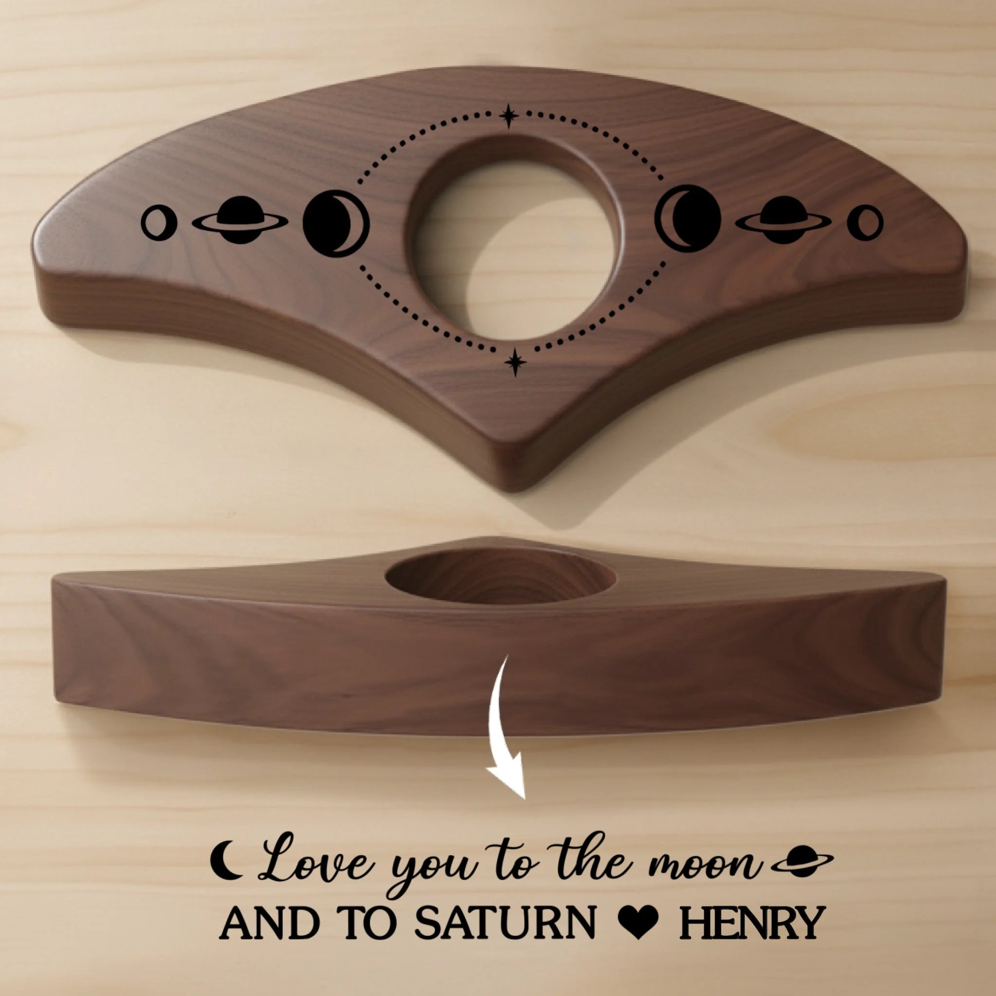 Natural wood finish highlighting unique grain patterns.