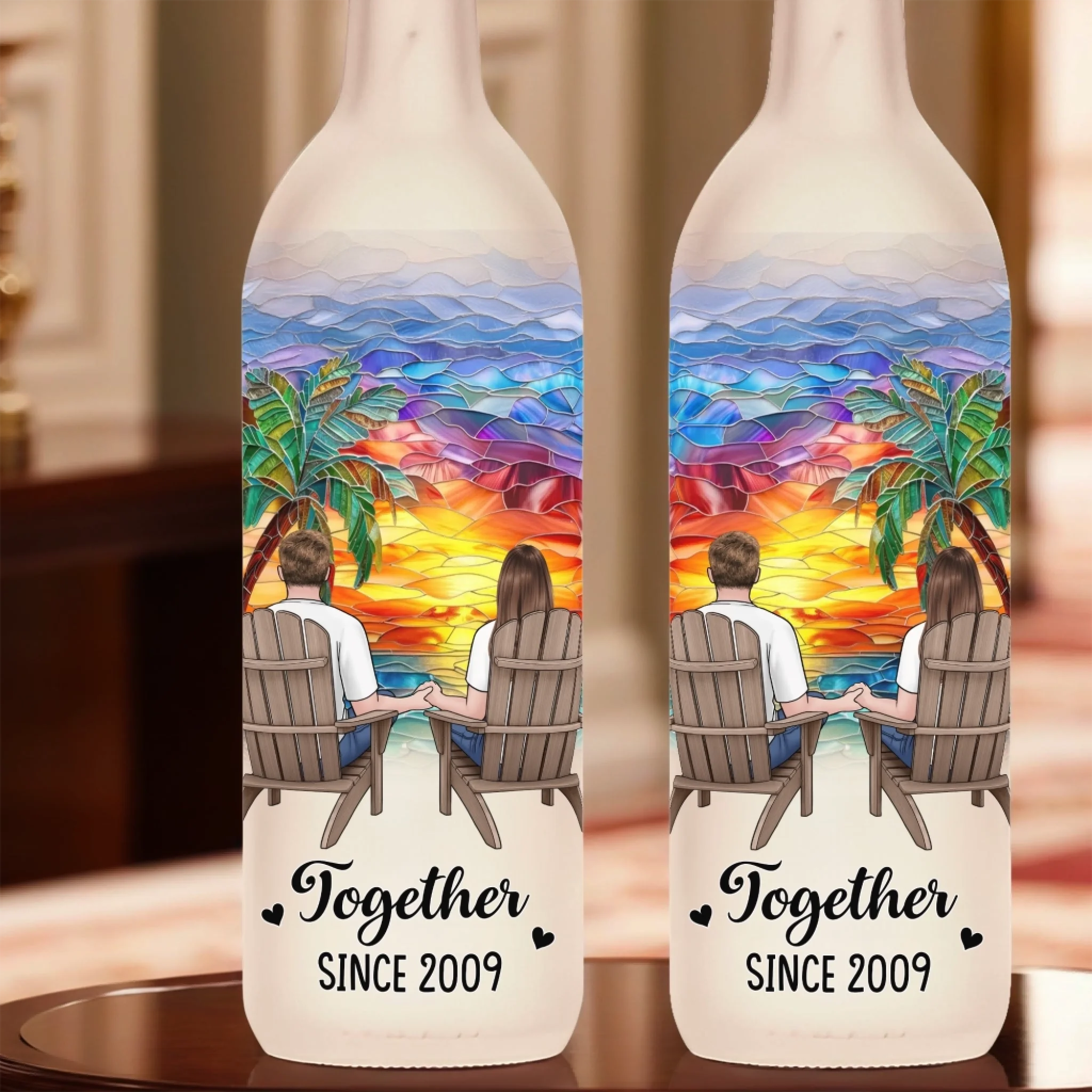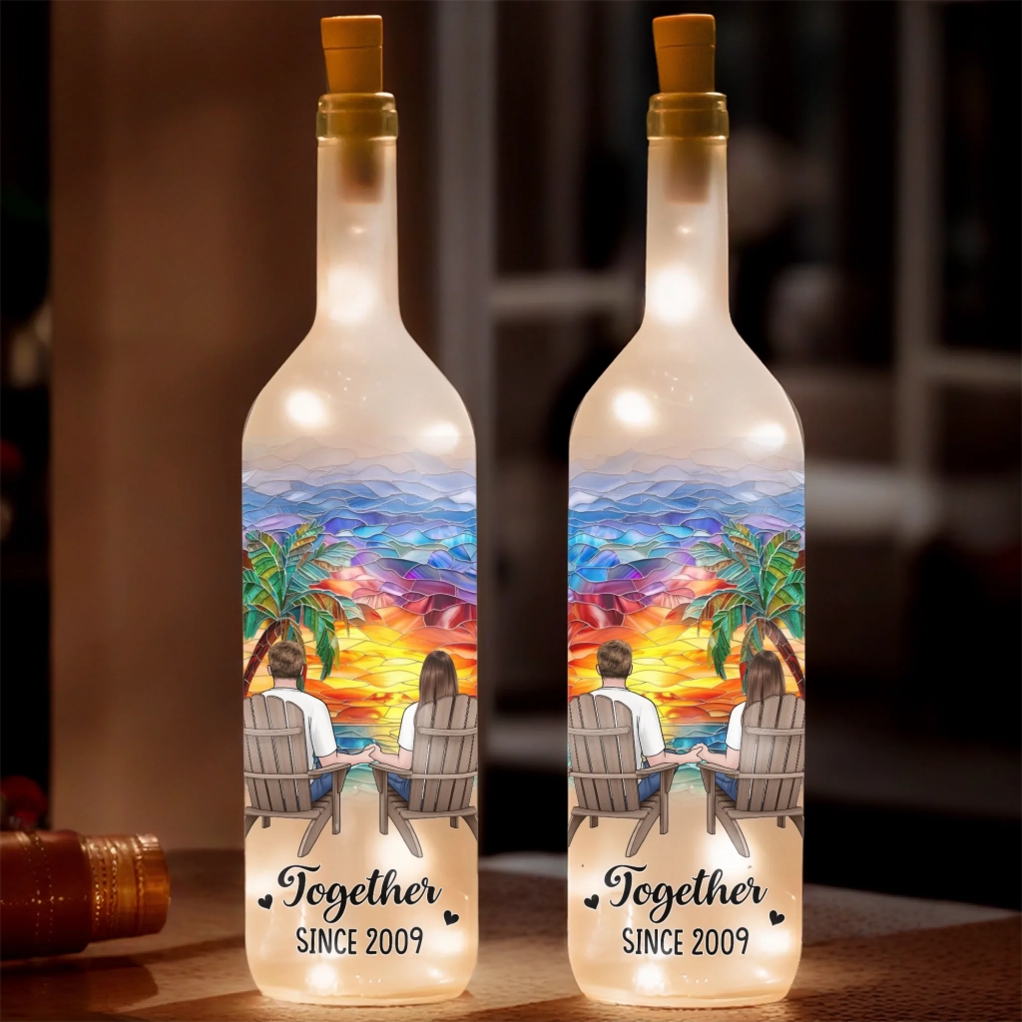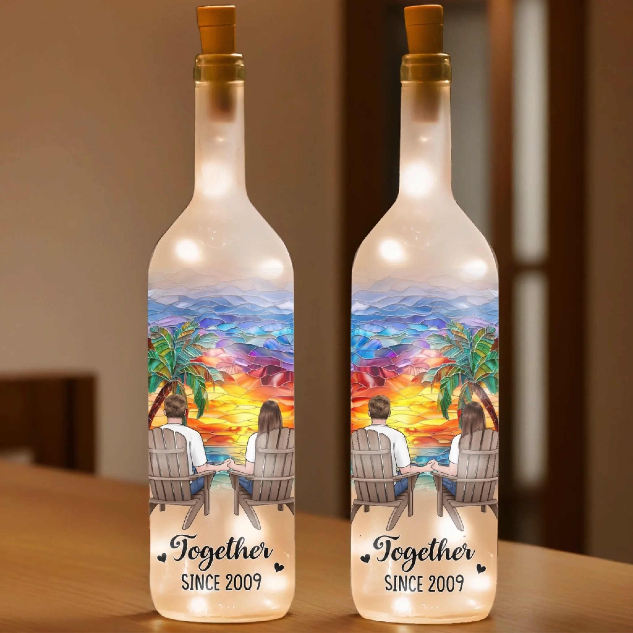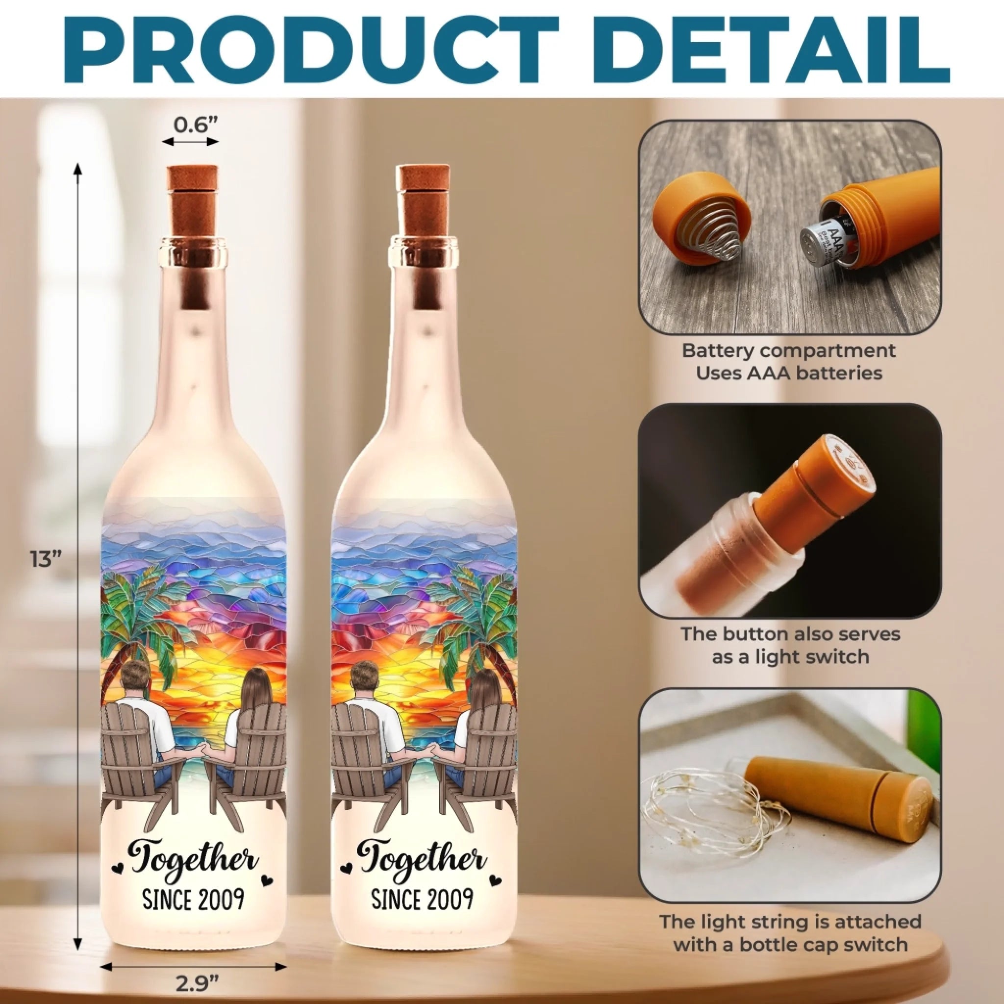 Custom Bottle Lamp - Personalized Anniversary Wedding Gifts For Husband And Wife, Him And Her - Love Shines Bright At Sunset