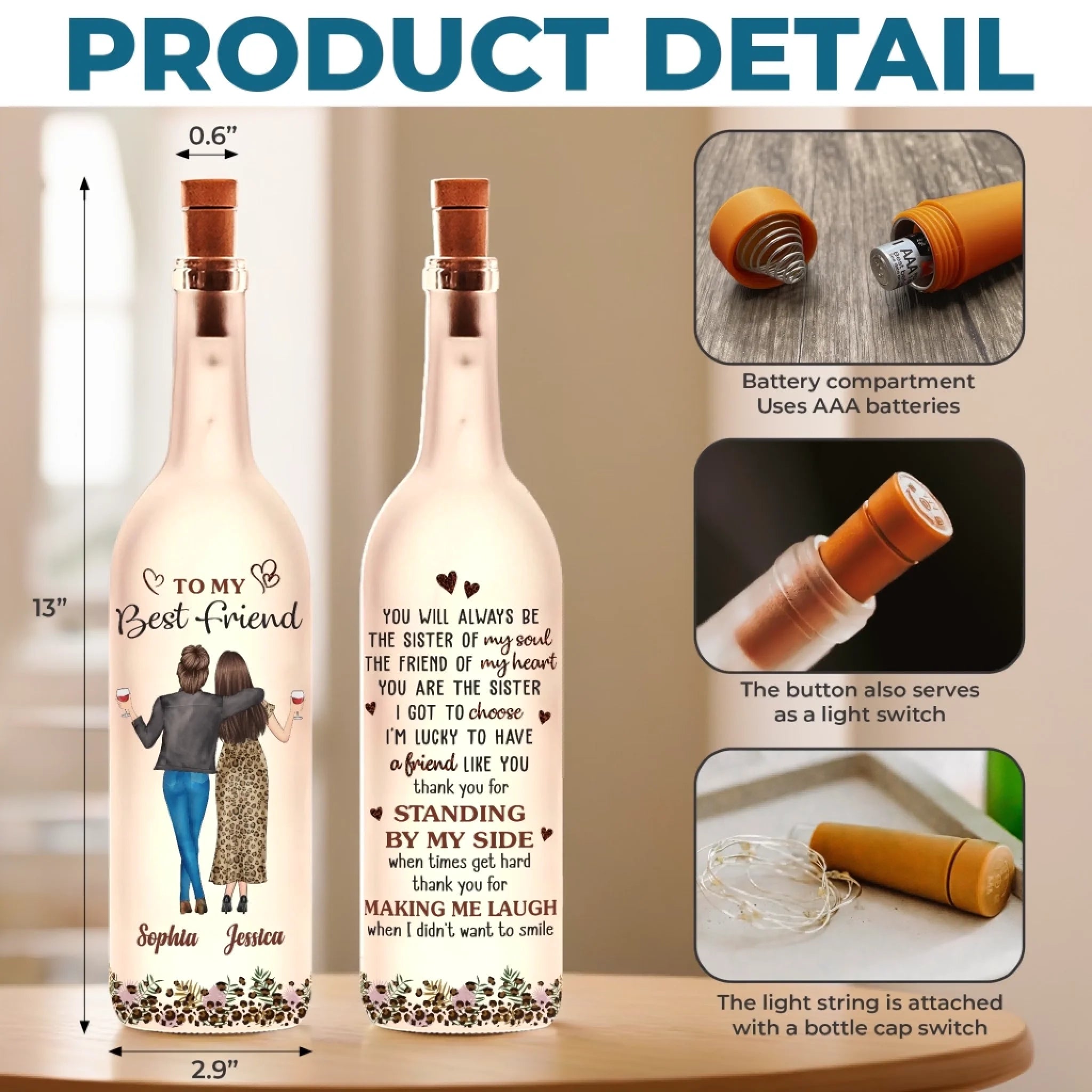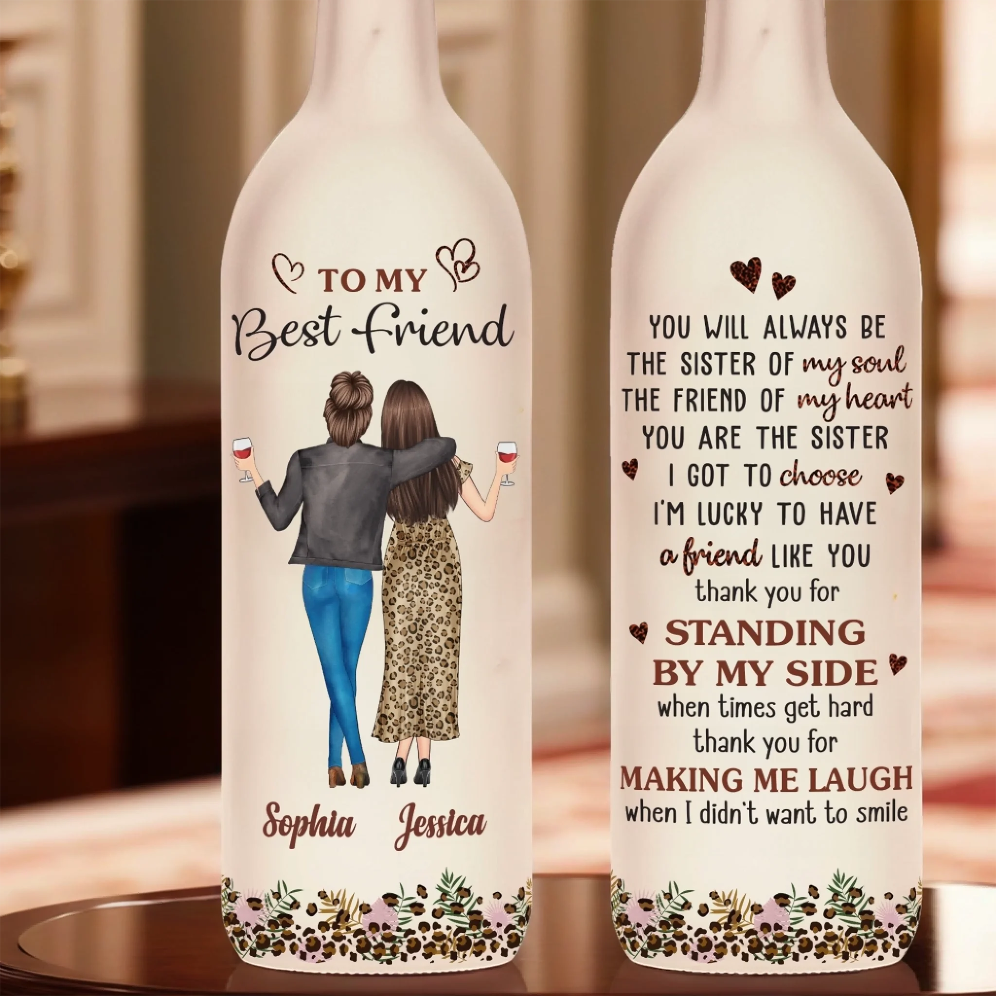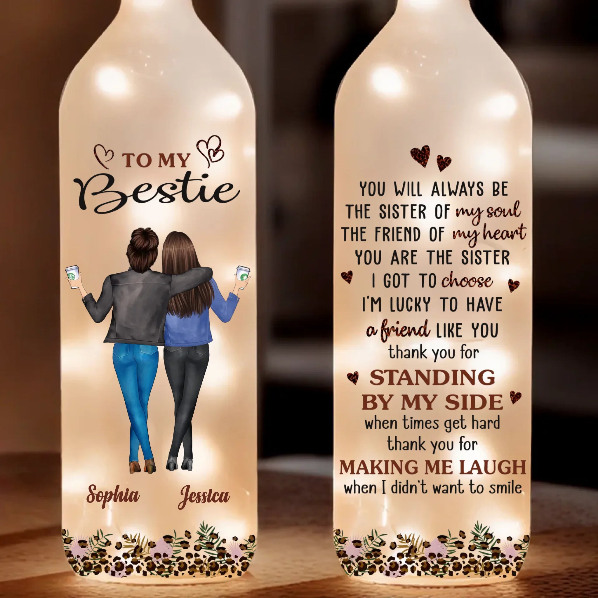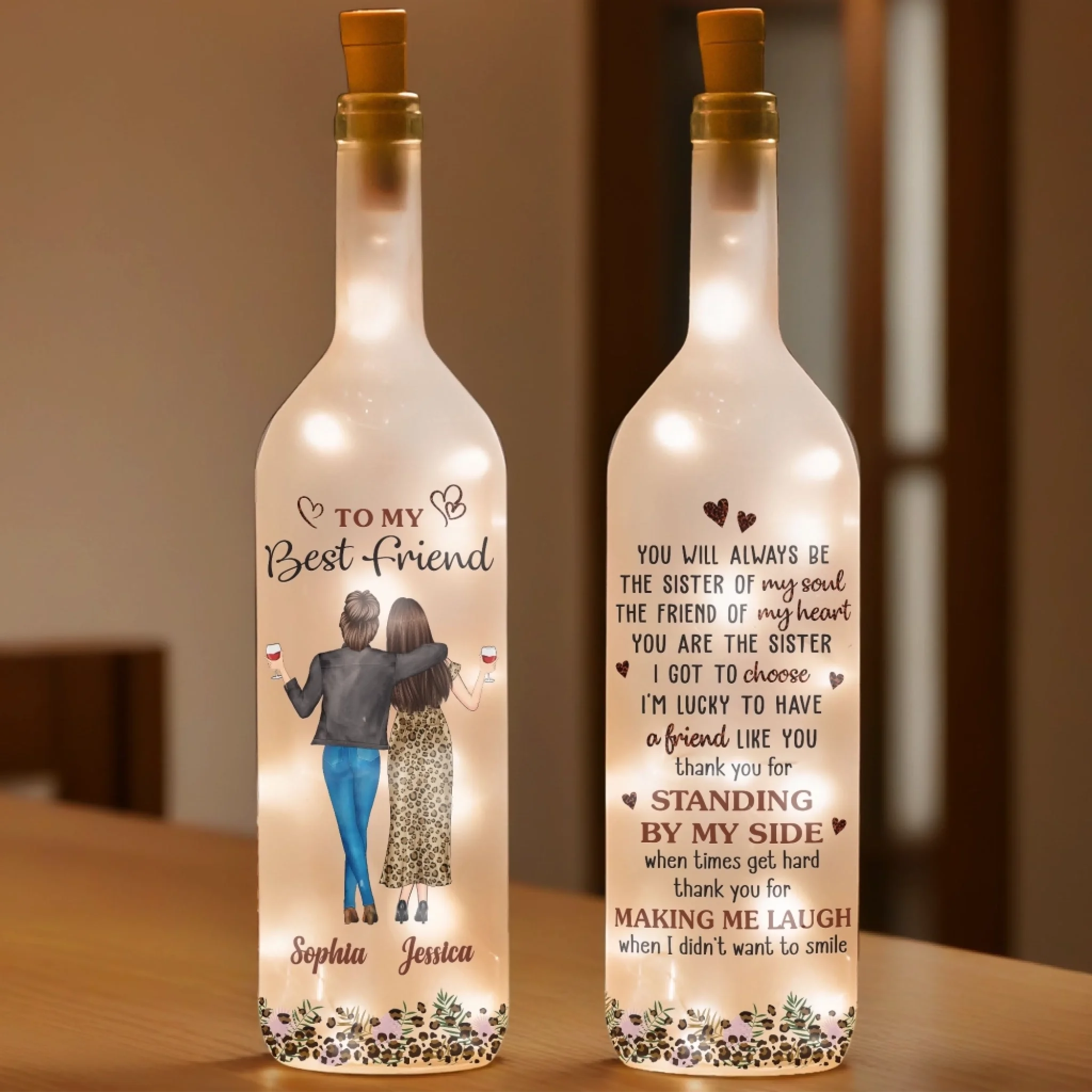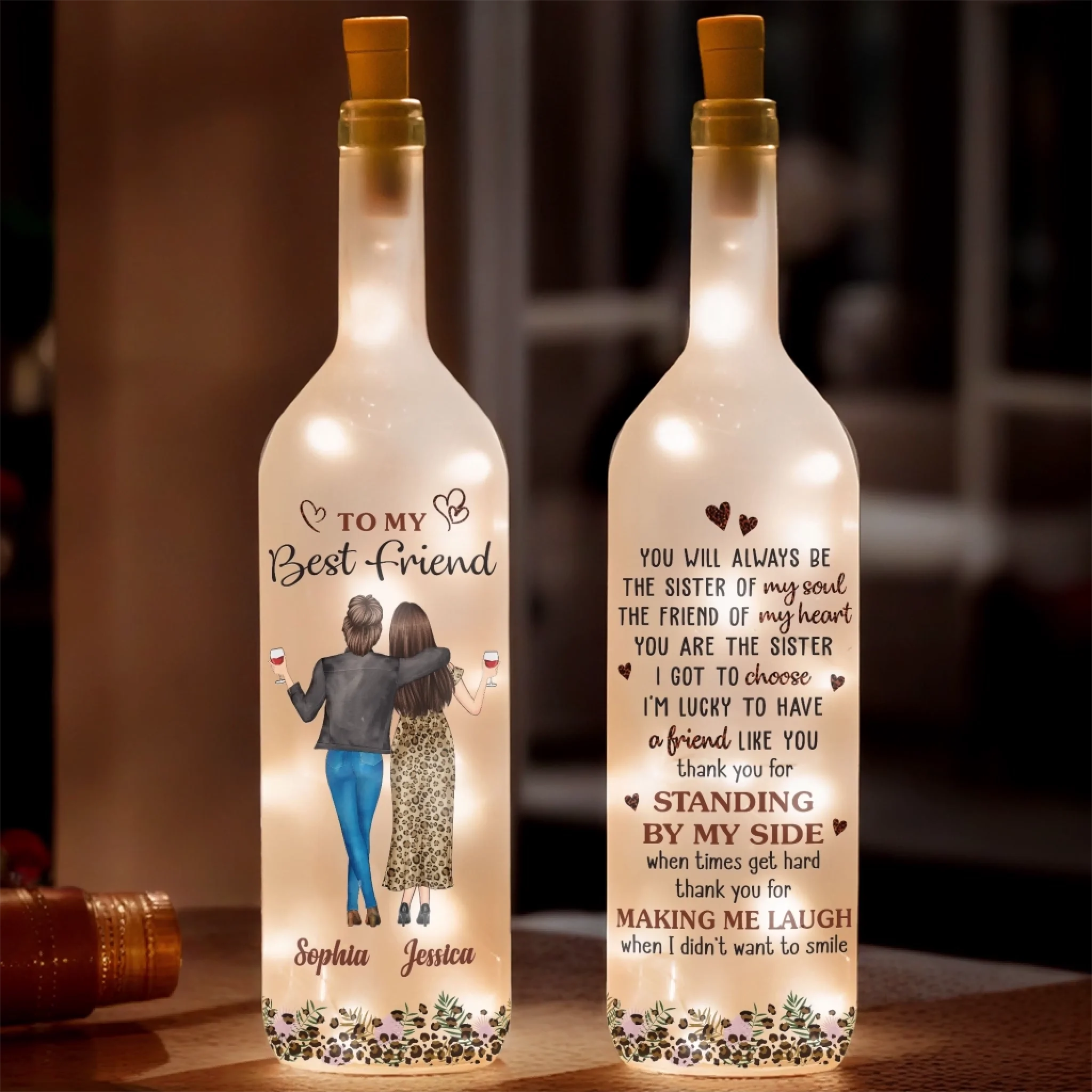 Custom Bottle Lamp - Personalized Best Friend Birthday Gifts For Women, Besties, Sisters, BFF - Lighting The Way Together