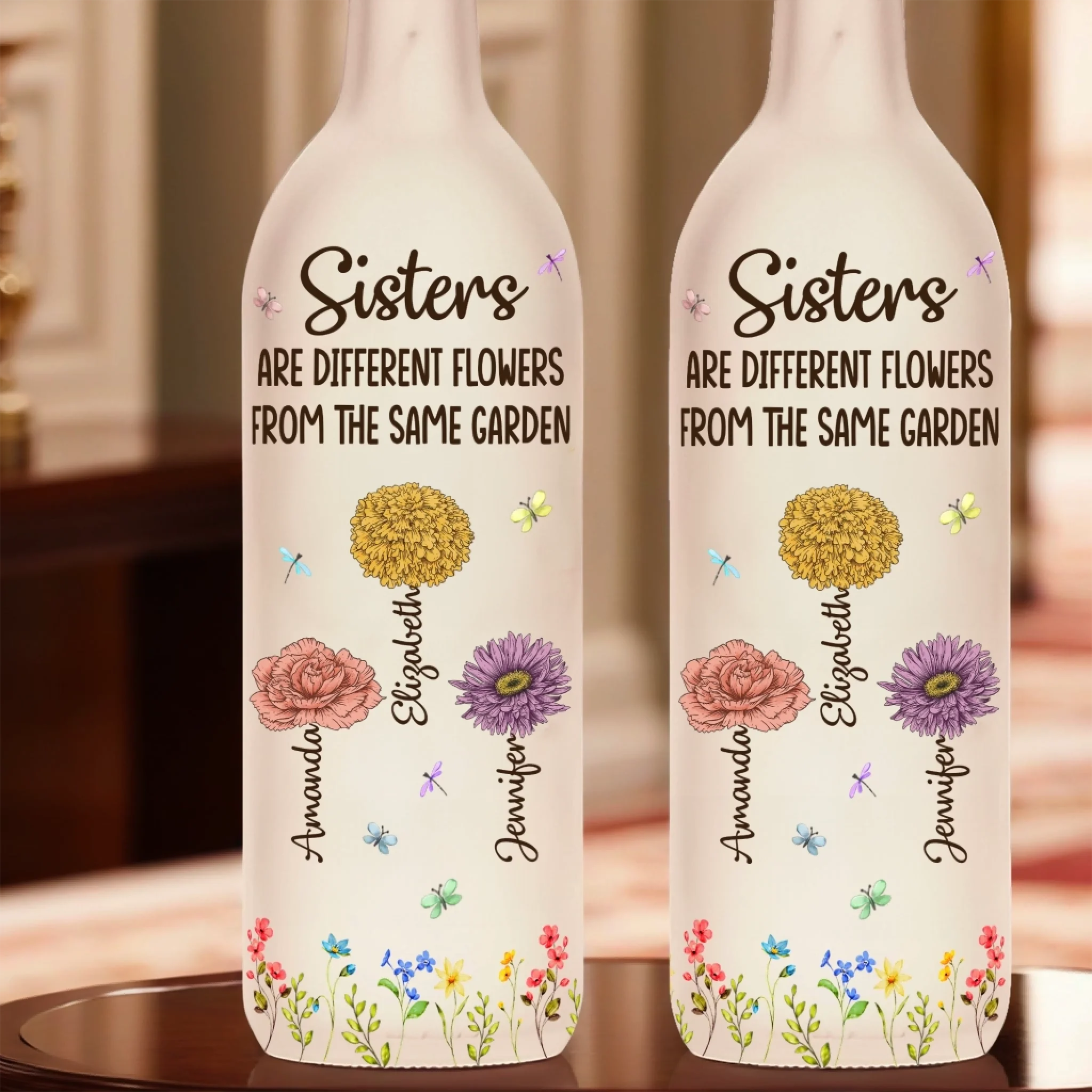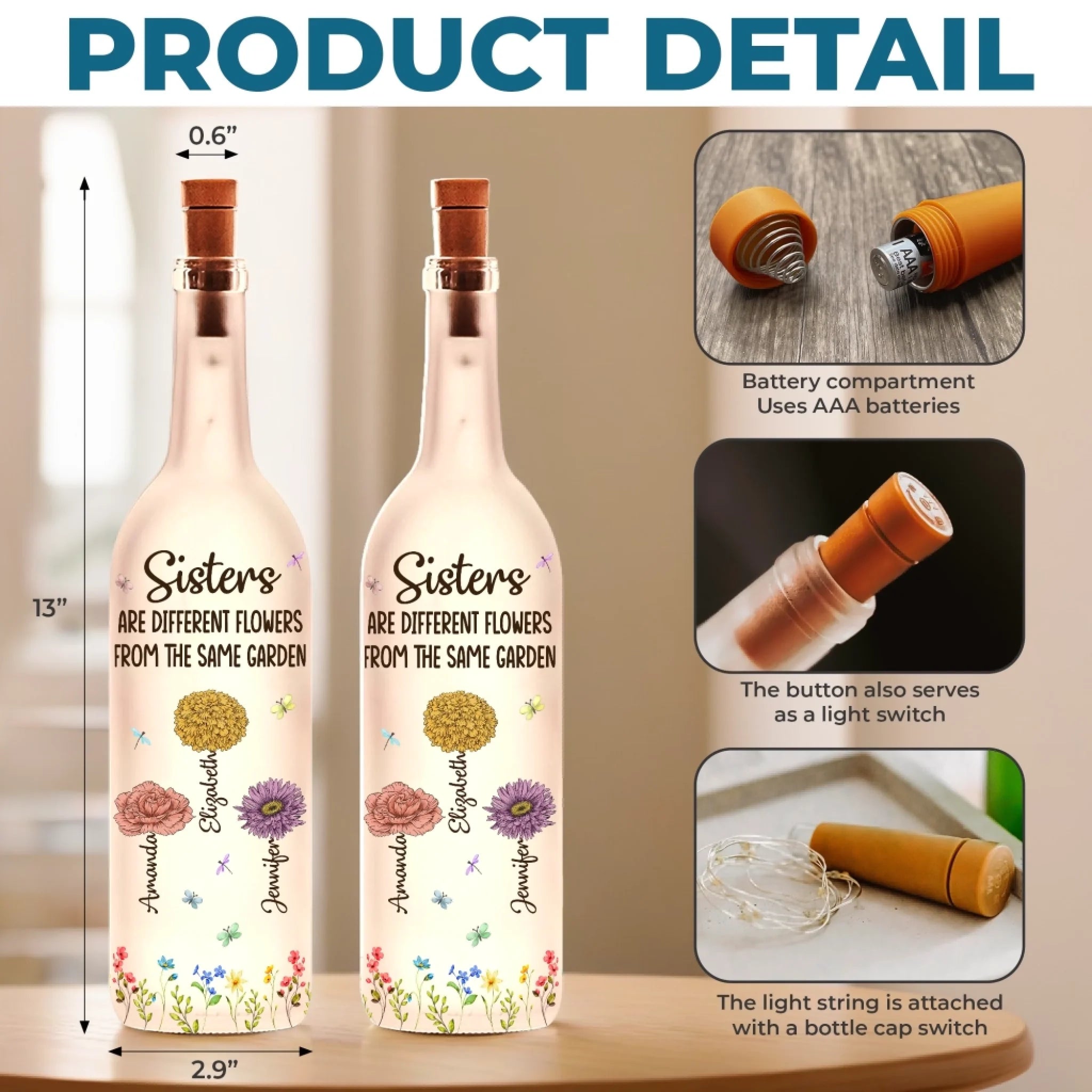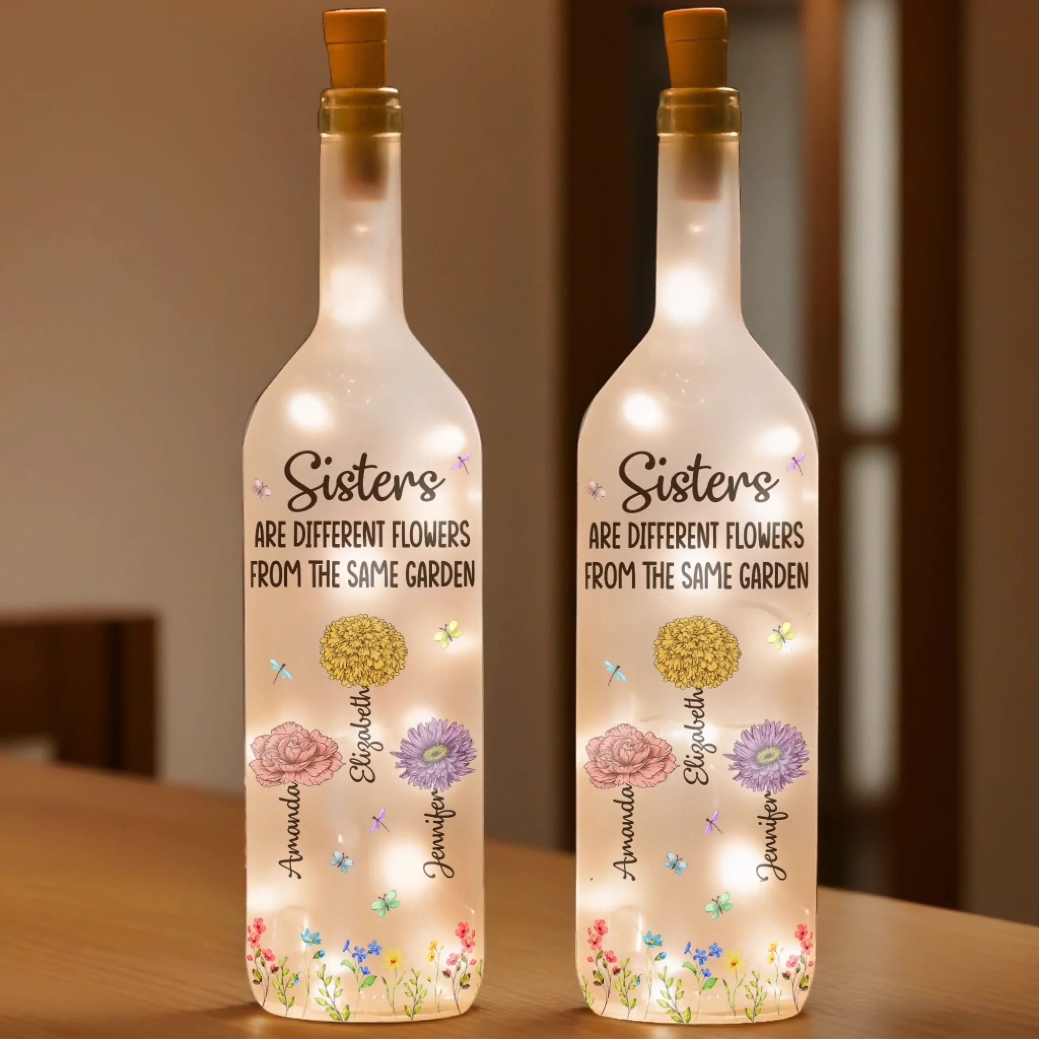 Custom Bottle Lamp - Personalized Best Friend Birthday Gifts For Women - One Garden, Many Colorful Blooms