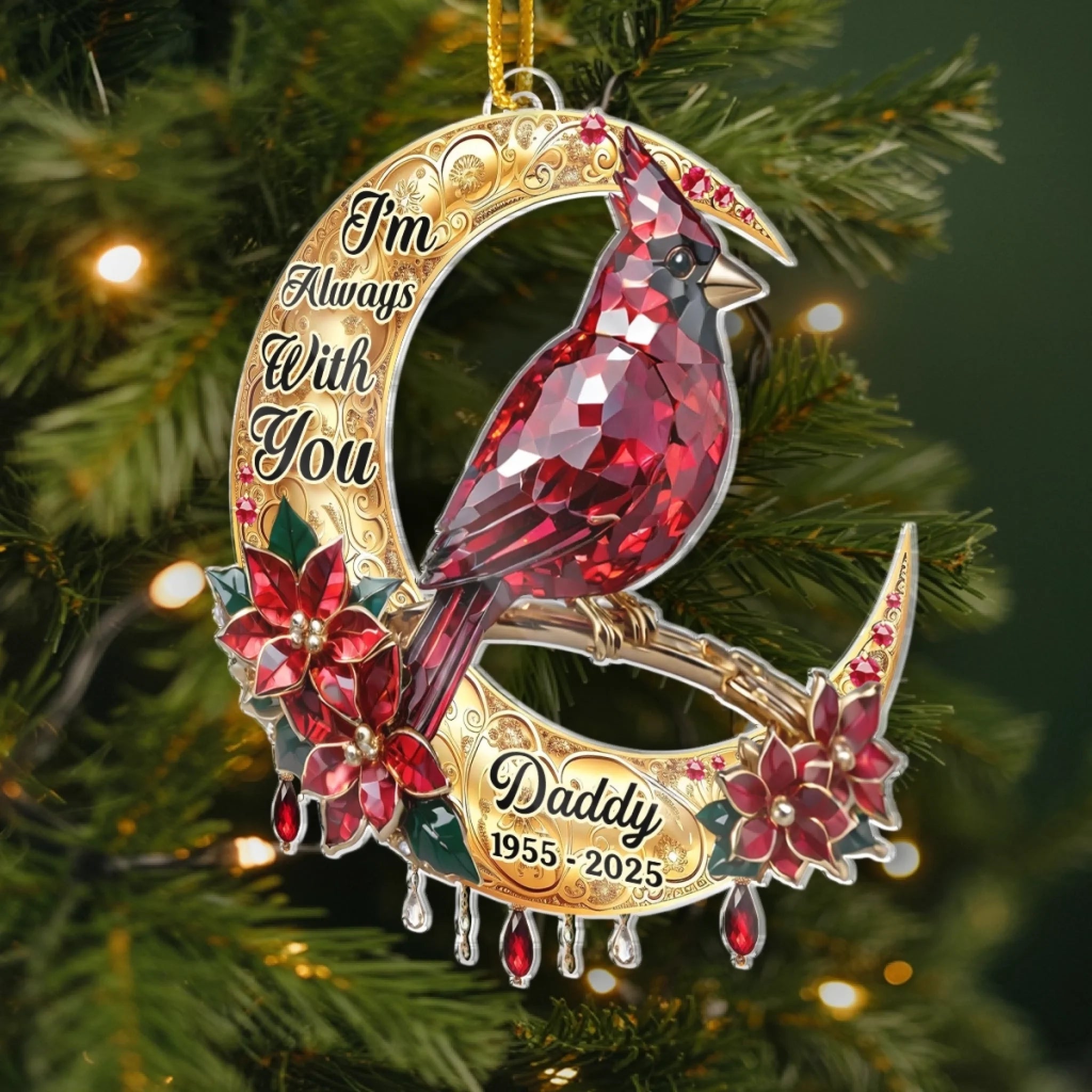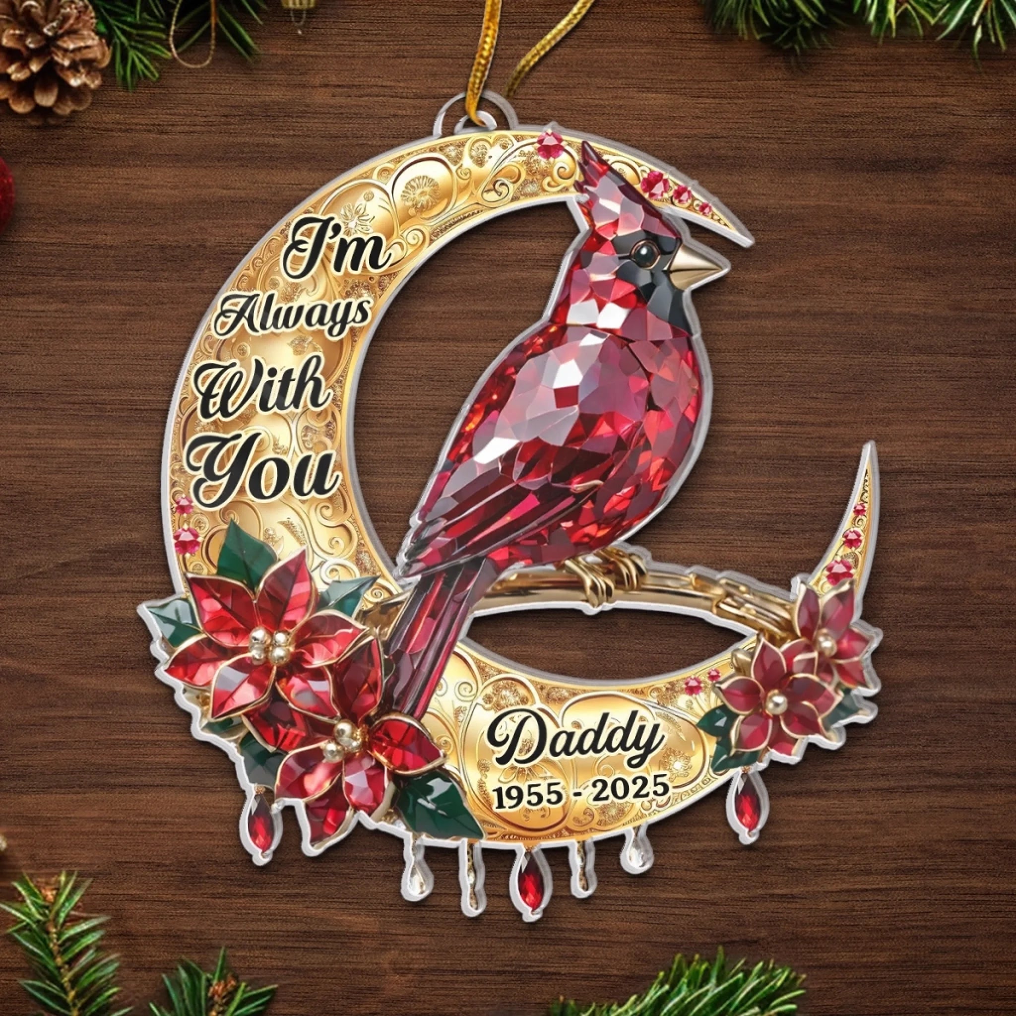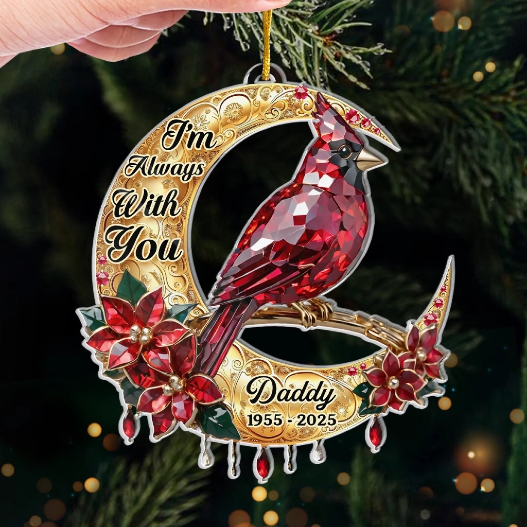 Custom Cardinal Acrylic Ornament - Personalized Christmas Memorial Sympathy Gifts For Loss Of Mom, Dad - Always In My Heart Forever Near