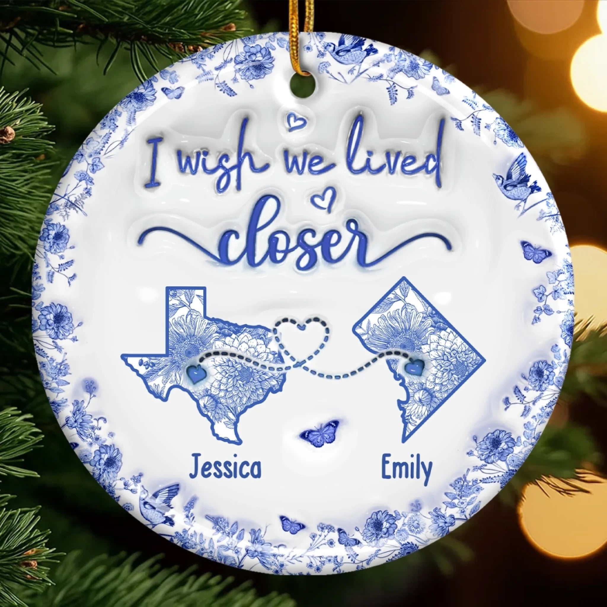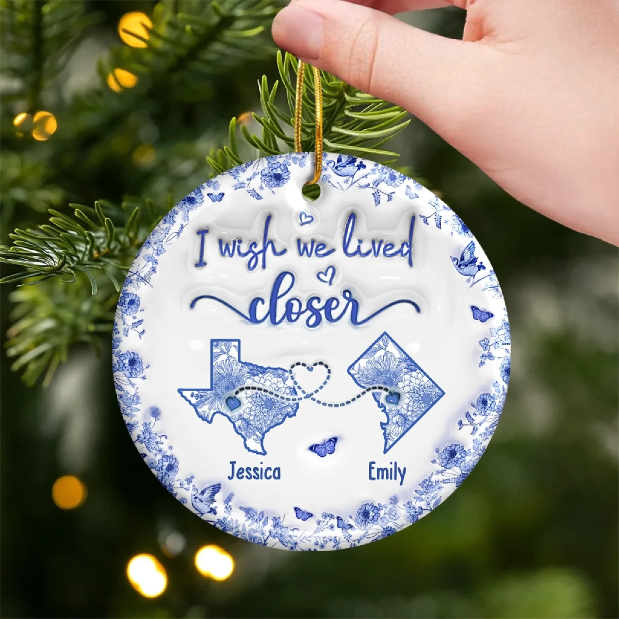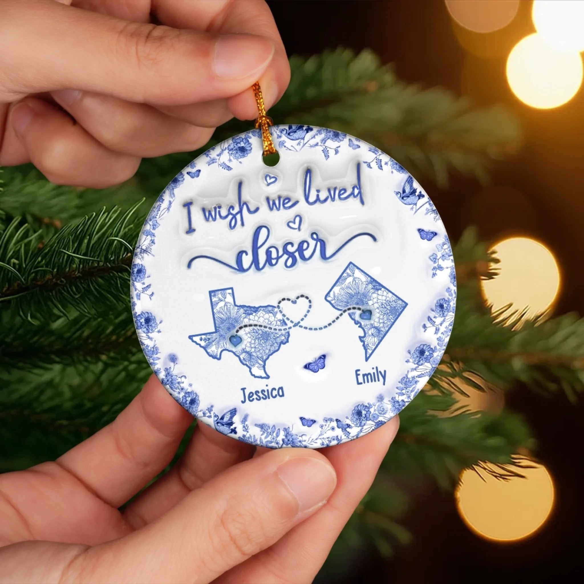Custom Long Distance Ceramic Ornament - Personalized Best Friend Christmas Birthday Gifts For Women, Besties, Sisters, BFF - Connected By Heart No Matter The Miles