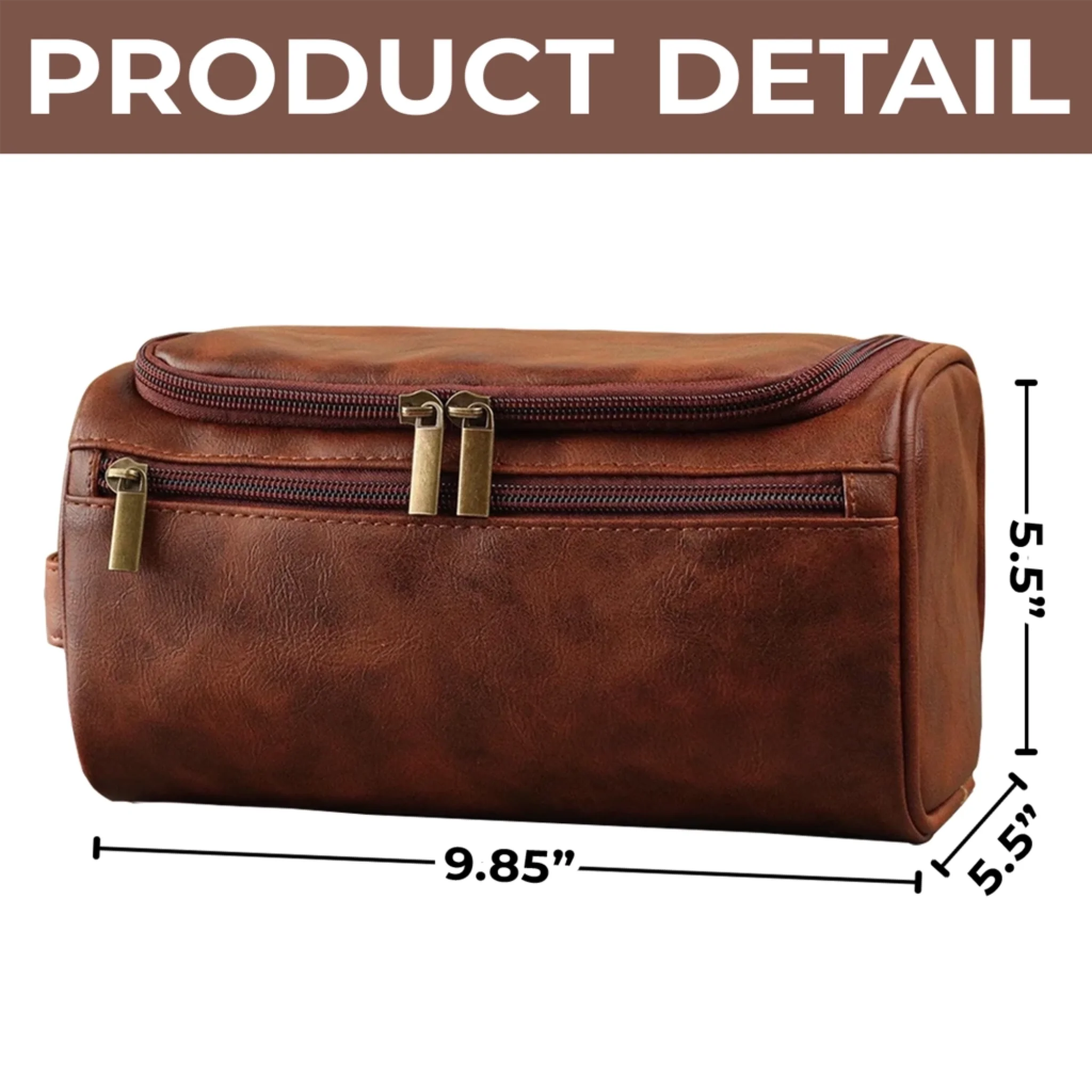 Custom Engraved Leather Toiletry Bag - Personalized Birthday Gifts For Dad, Brother, Grandpa, Husband - For The Man Who’s Always On The Move