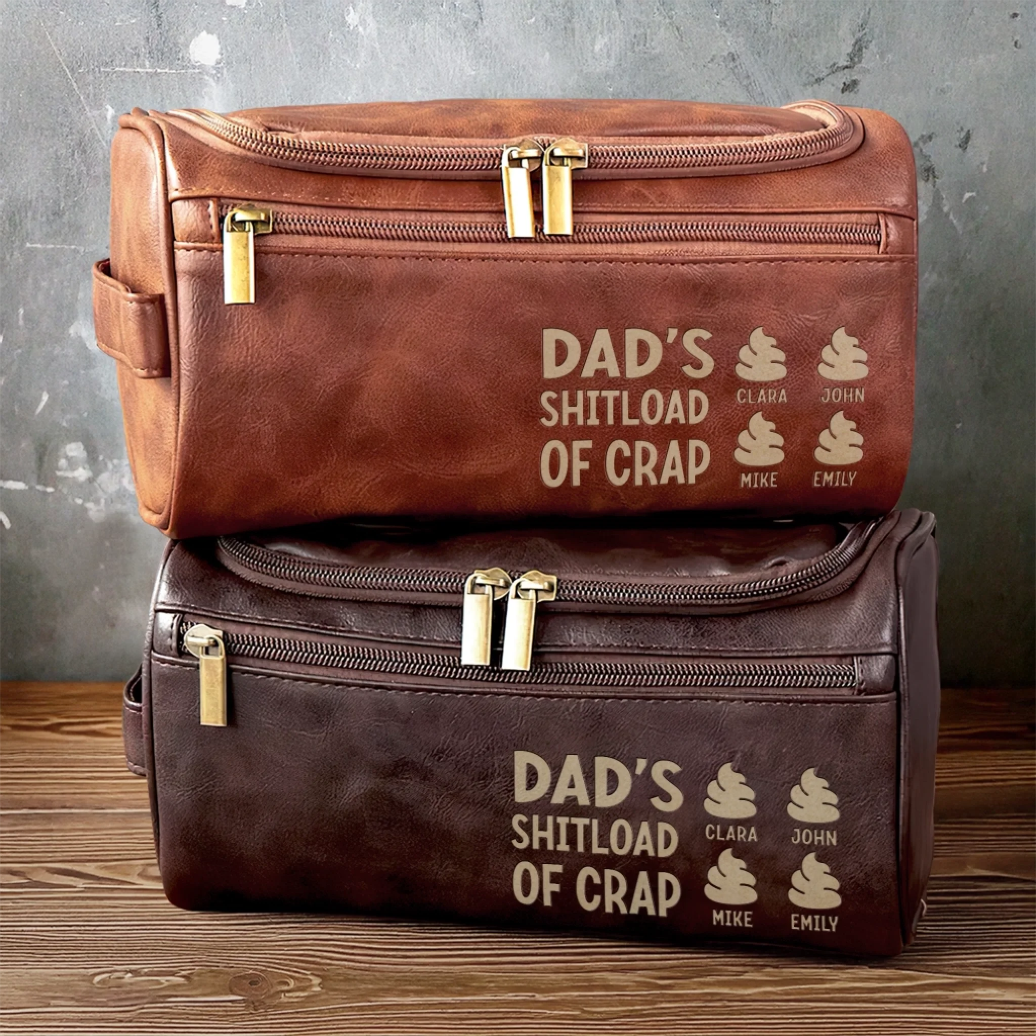 Custom Engraved Leather Toiletry Bag - Personalized Birthday Gifts For Dad, Grandpa - Love Passed From Heart To Heart
