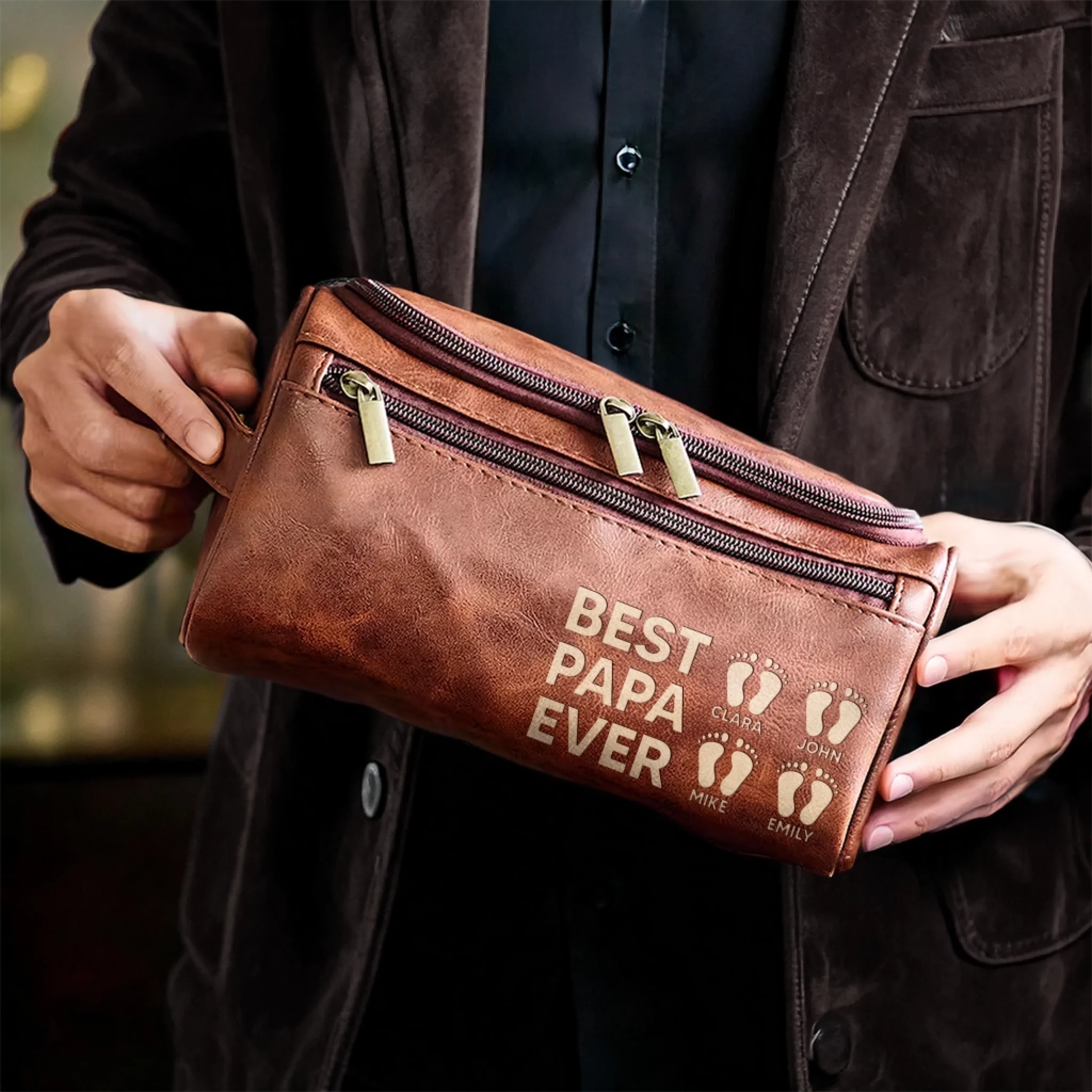This leather toiletry bag combines style and practicality, keeping grooming essentials neatly organized. Perfect for business trips, vacations, or daily use, this bag offers a stylish and practical solution for storing personal care items. This is the perfect gift for anyone, suitable for all occasions: birthdays, holidays, anniversaries, graduations, Valentine's Day, Mother's Day, Father's Day, and just because! Whether for friends, family, or that special someone, this versatile gift is guaranteed to bring joy and make lasting memories.