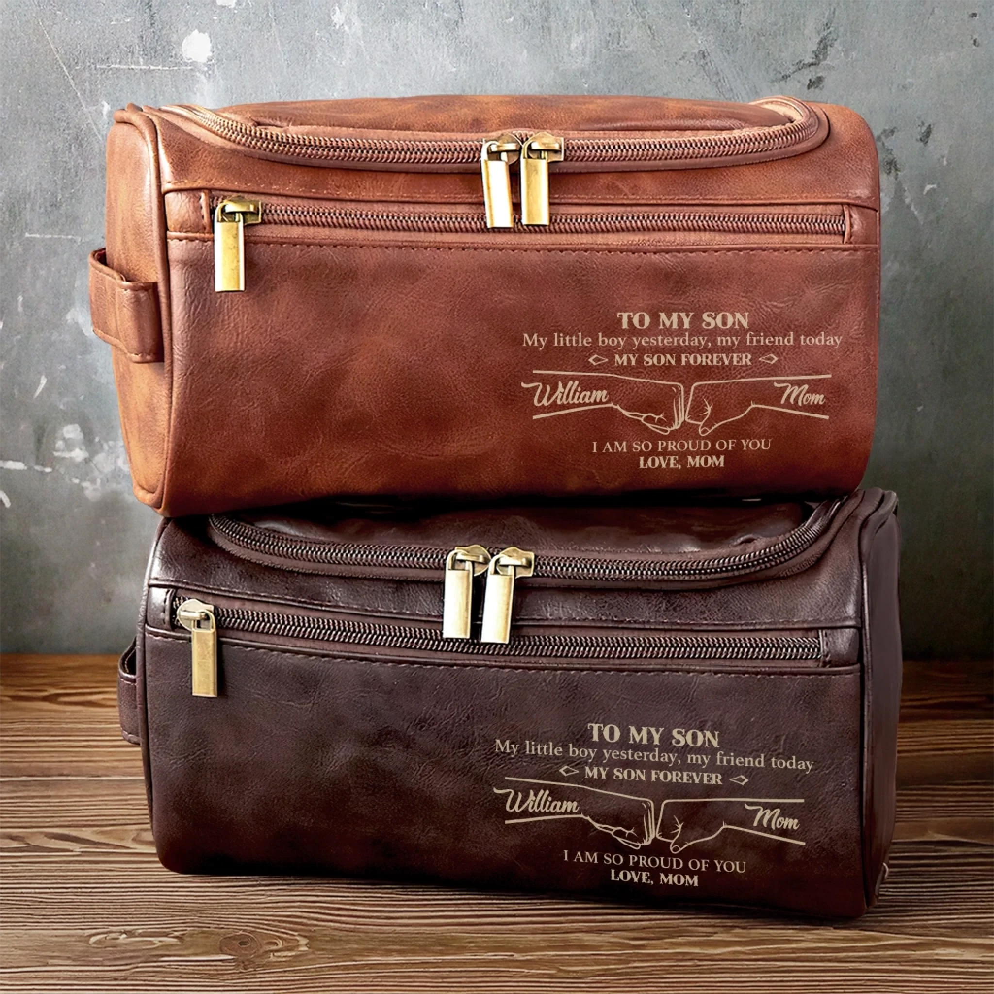 Custom Engraved Leather Toiletry Bag - Personalized Birthday Gifts For Son - Carry Confidence Daily