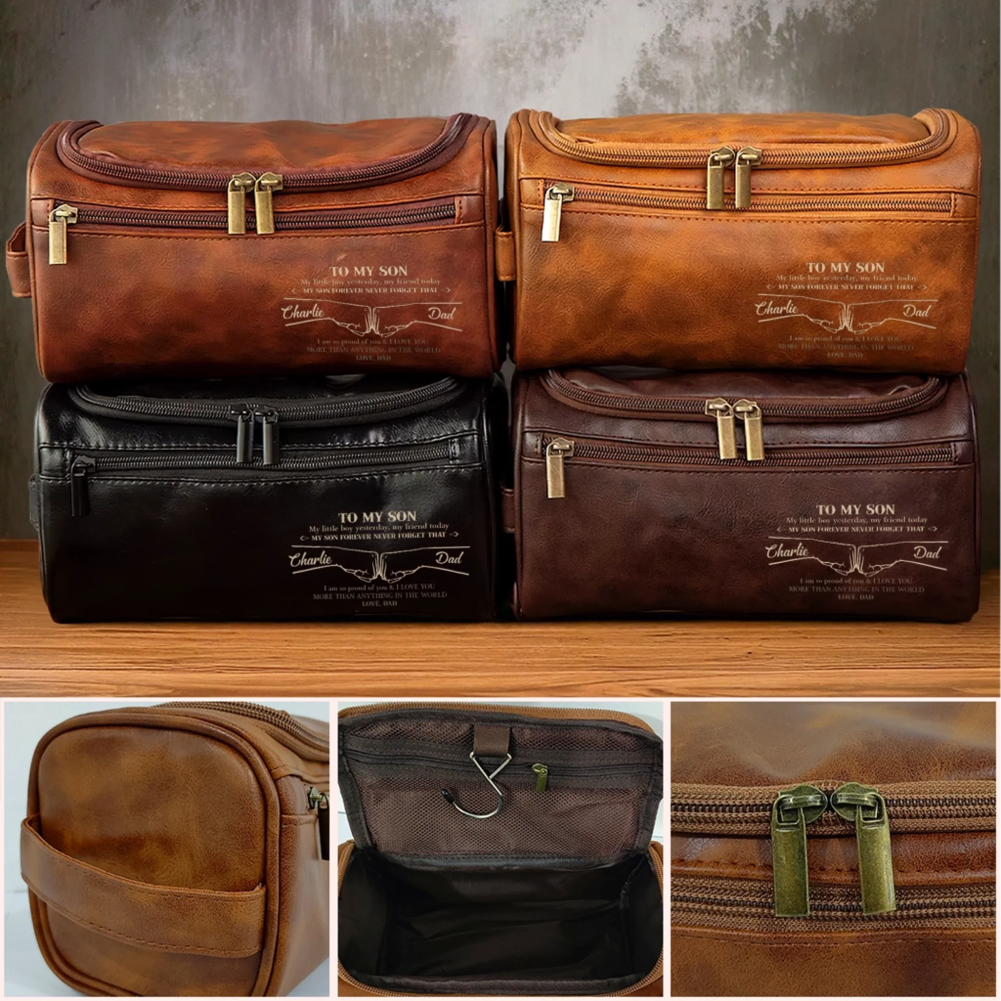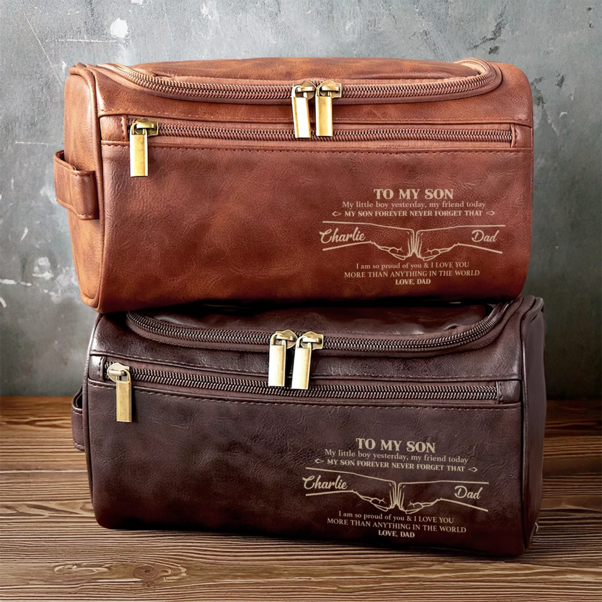 Custom Engraved Leather Toiletry Bag - Personalized Birthday Gifts For Son - Carry Confidence Wherever You Go