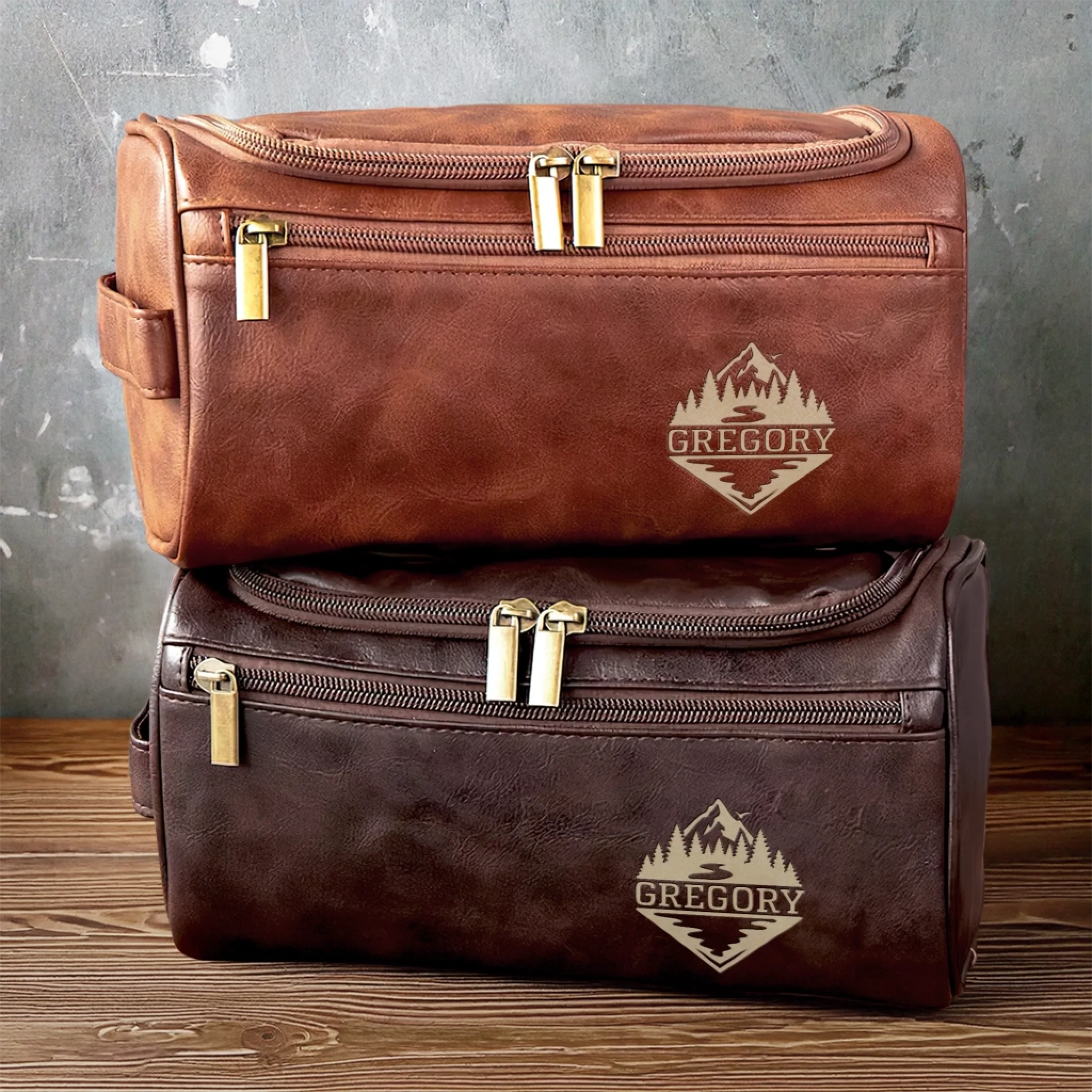 Custom Engraved Leather Toiletry Bag - Personalized Christmas Birthday Camping Gifts For Campers - Built To Last Every Journey