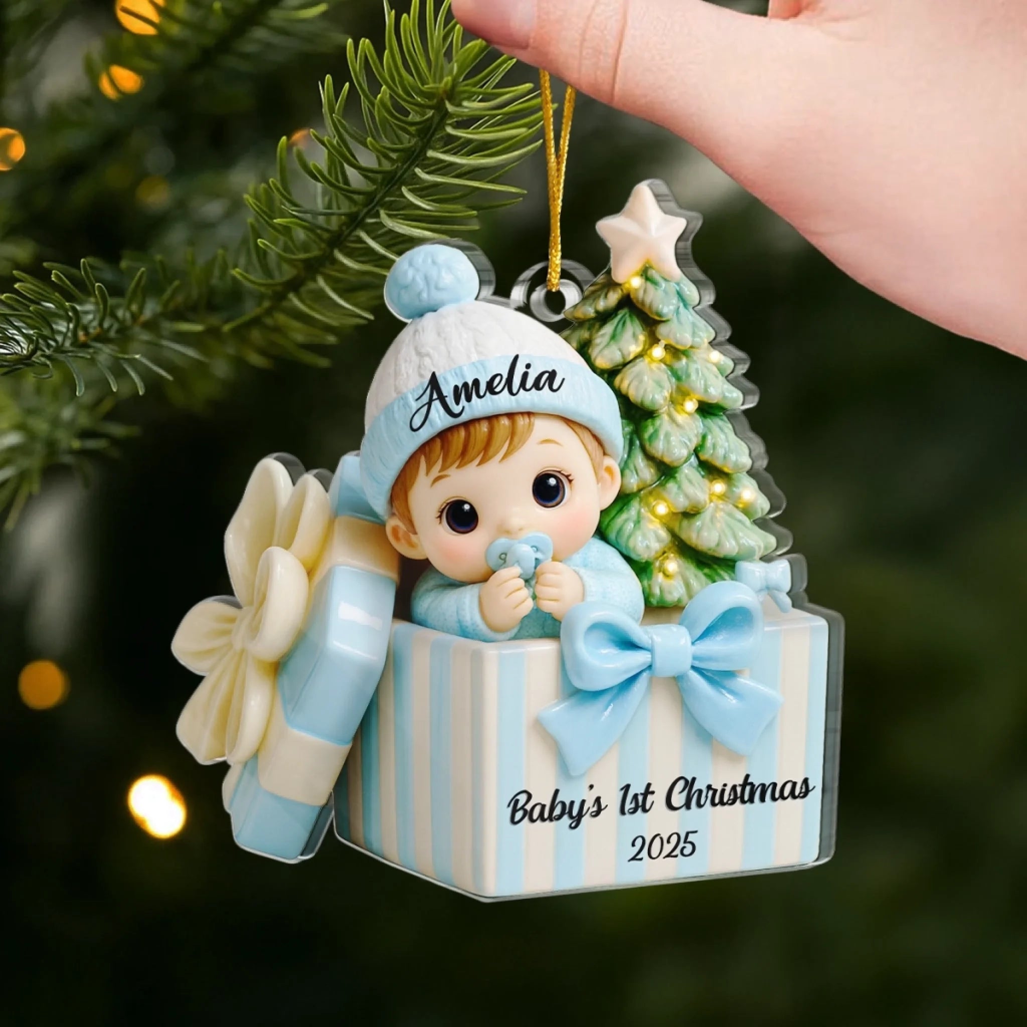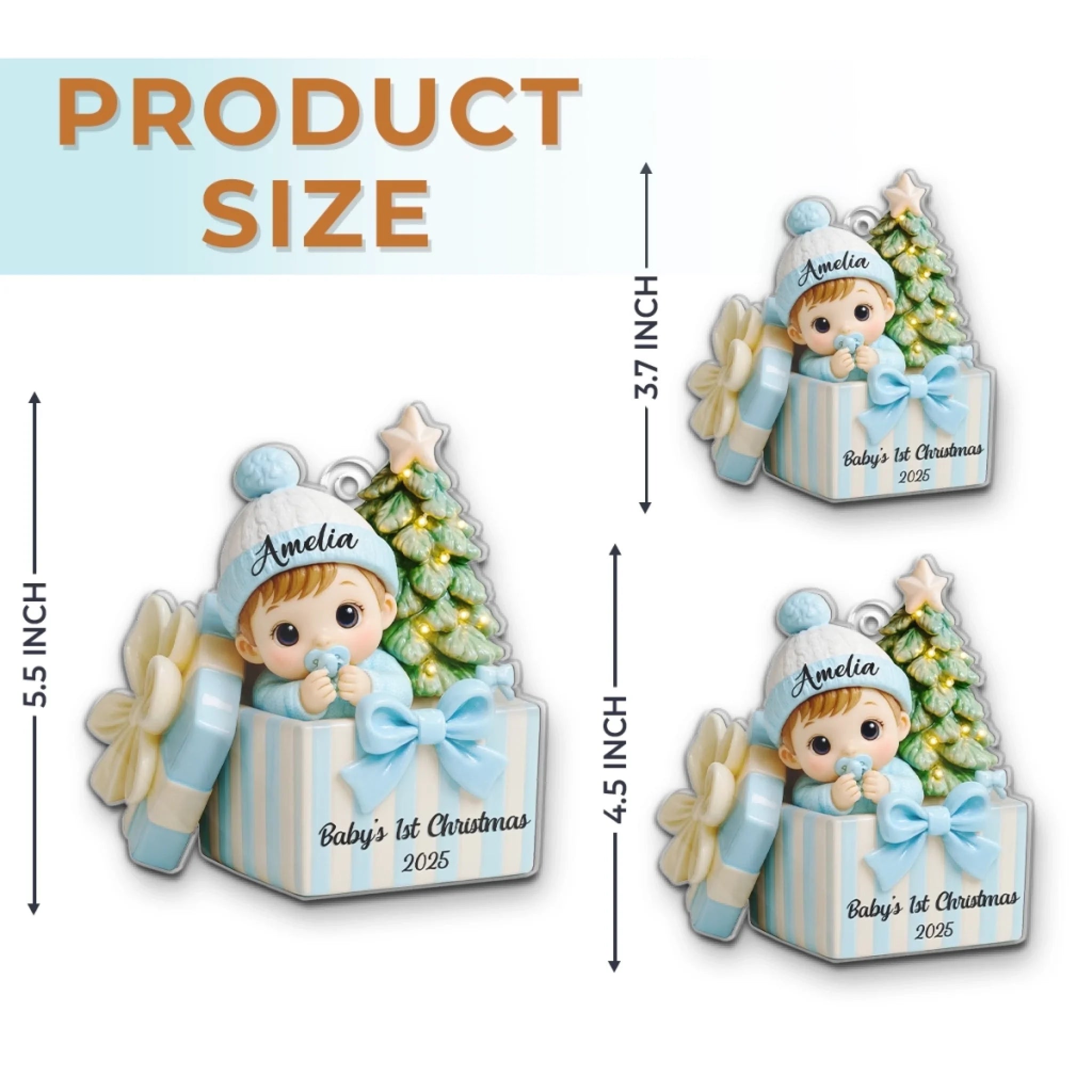 Custom First Christmas Acrylic Ornament - Personalized Christmas Baby Shower, Gender Reveal Gifts For New Moms, New Dads, New Parents - Joy Wrapped In Love