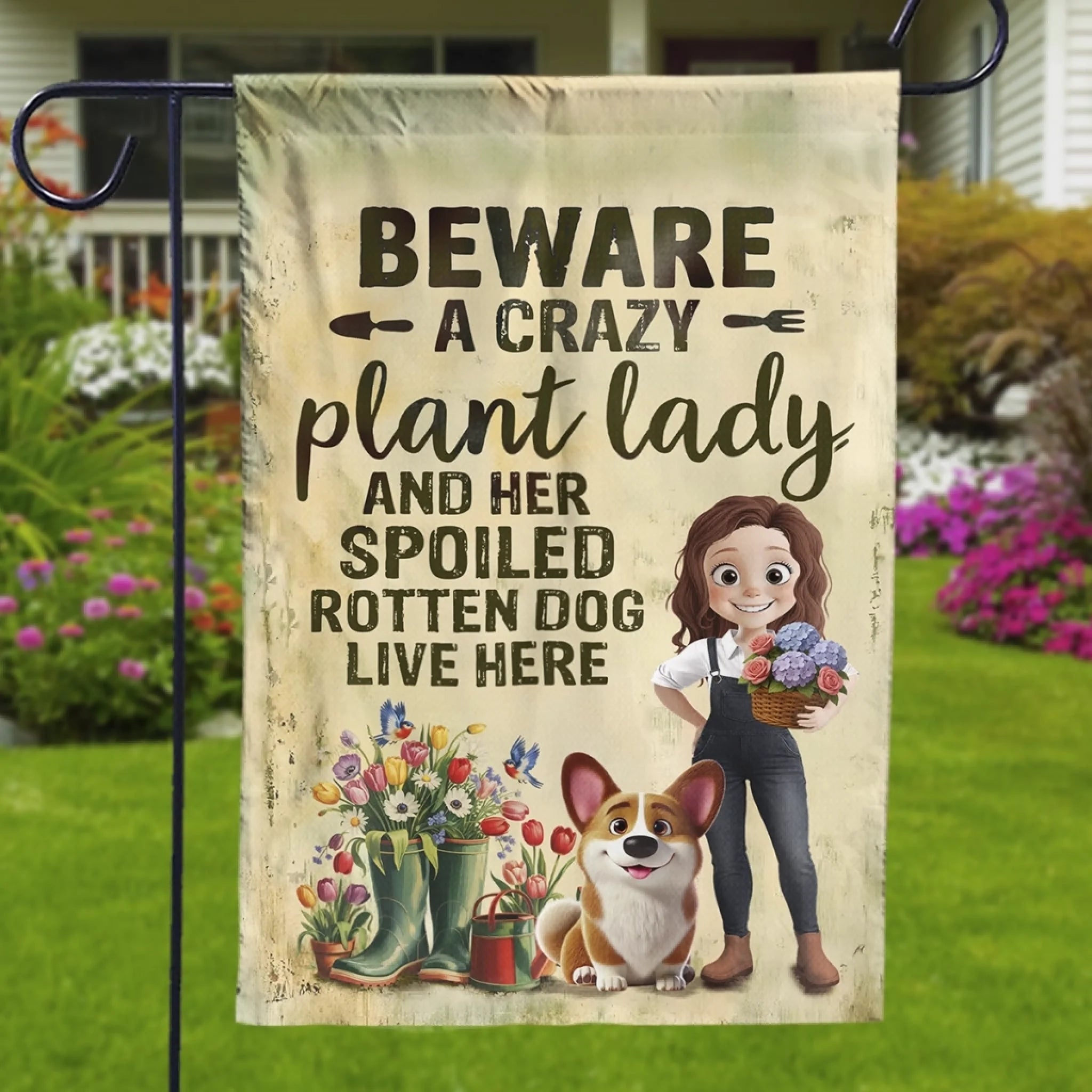 Custom Flag - Personalized Garden Gifts For Gardeners, Dog Lovers, Dog Dad And Mom - Crazy Plant Lady With A Dog Boss
