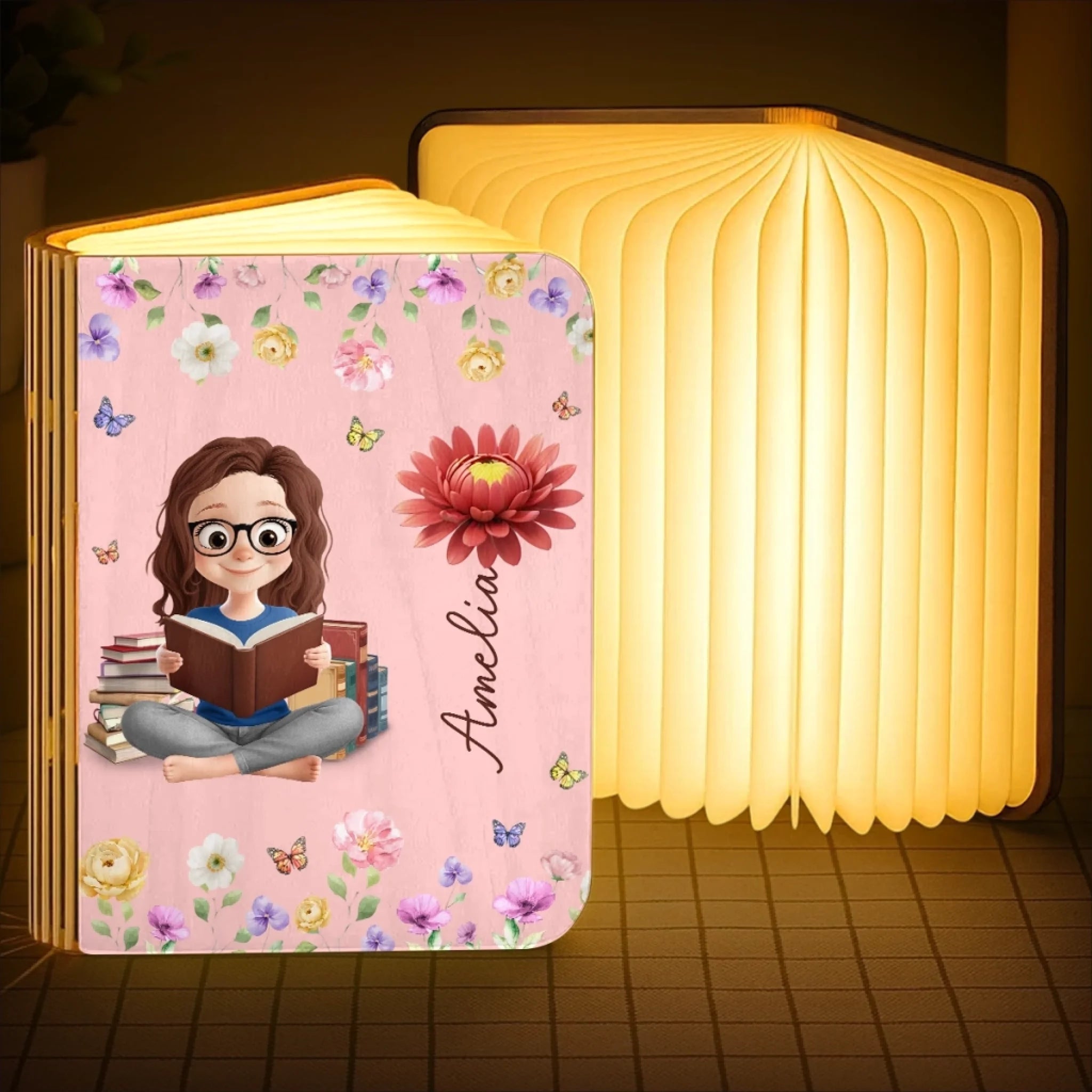 Custom Foldable LED Magic Book Lamp - Personalized Christmas Bookish Gifts For Book Lovers, Bookworms, Readers - Books Light My World