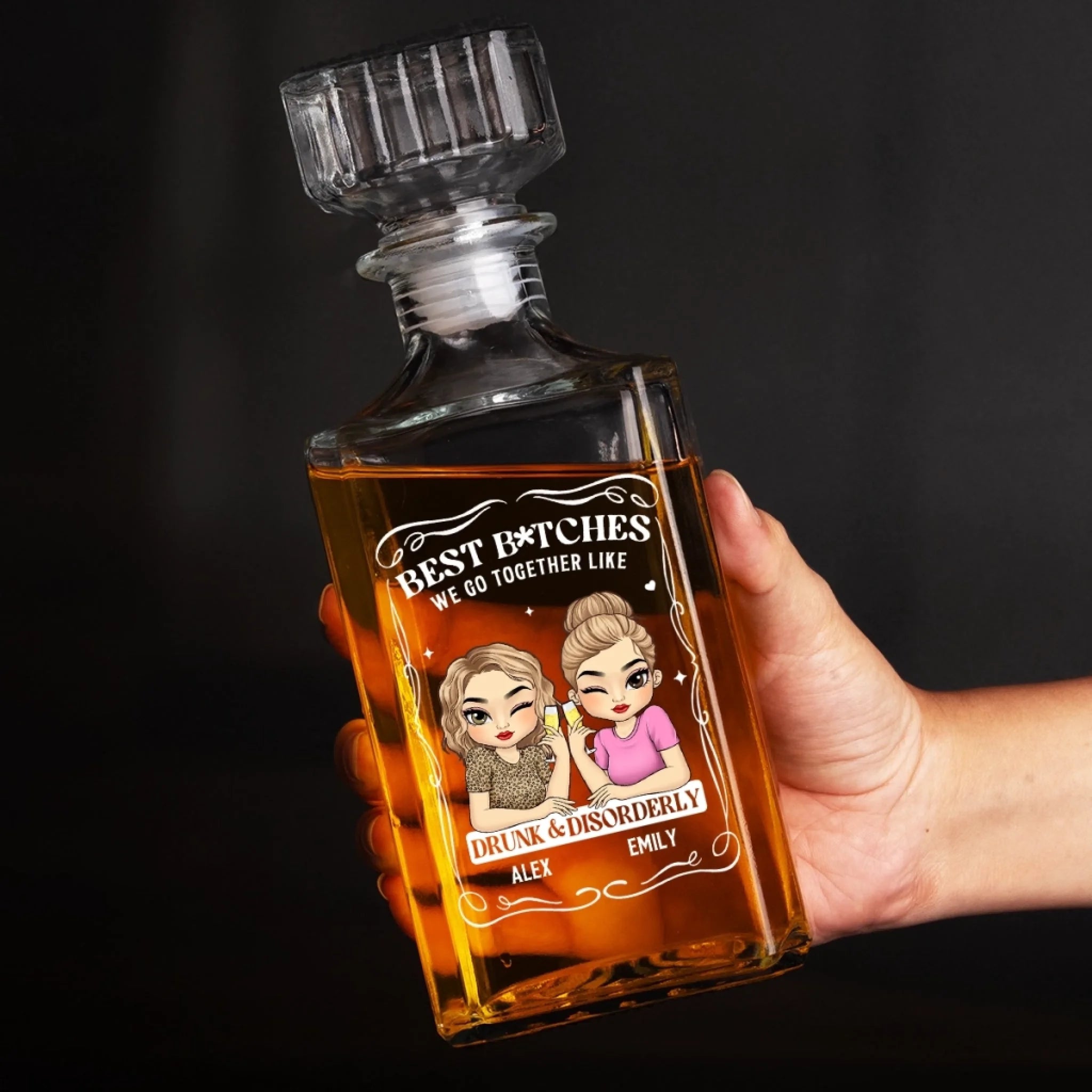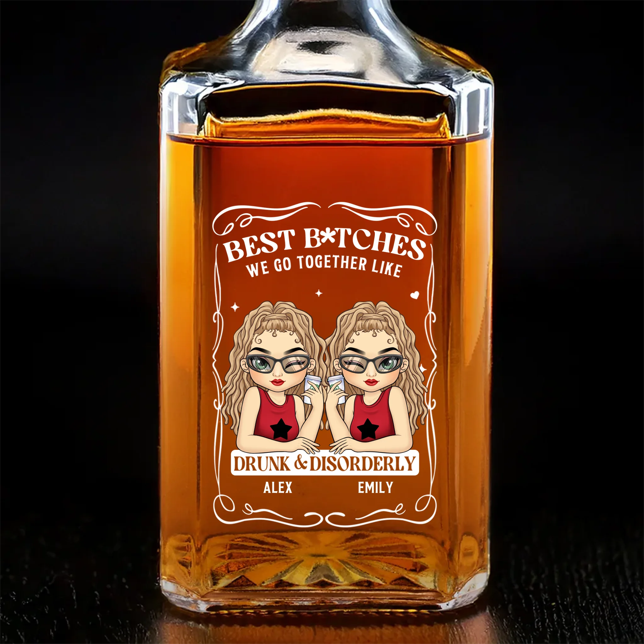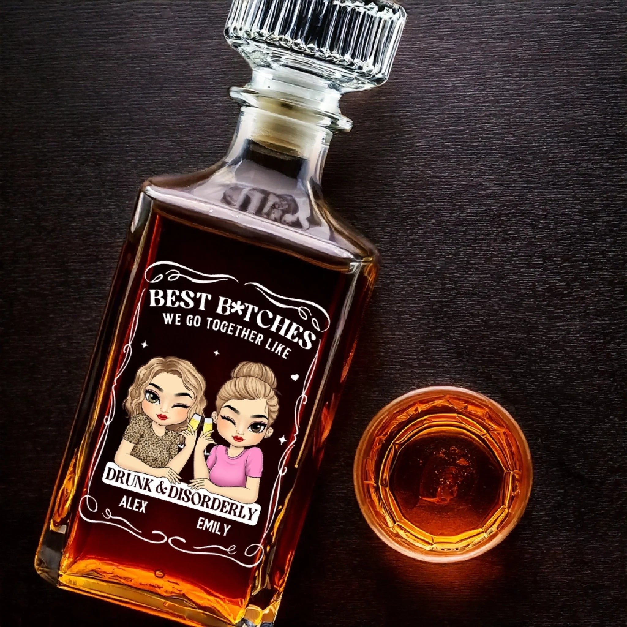 Custom Glass Whiskey Bottle - Personalized Best Friend Birthday Gifts For Women, Besties, Sisters, BFF , Wine, Bourbon, Whiskey Lovers - Forever Drunk On Friendship