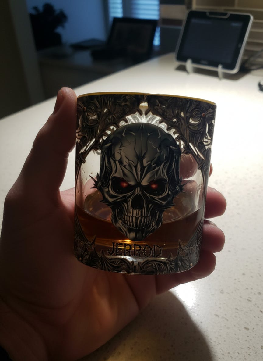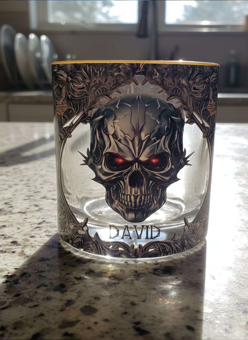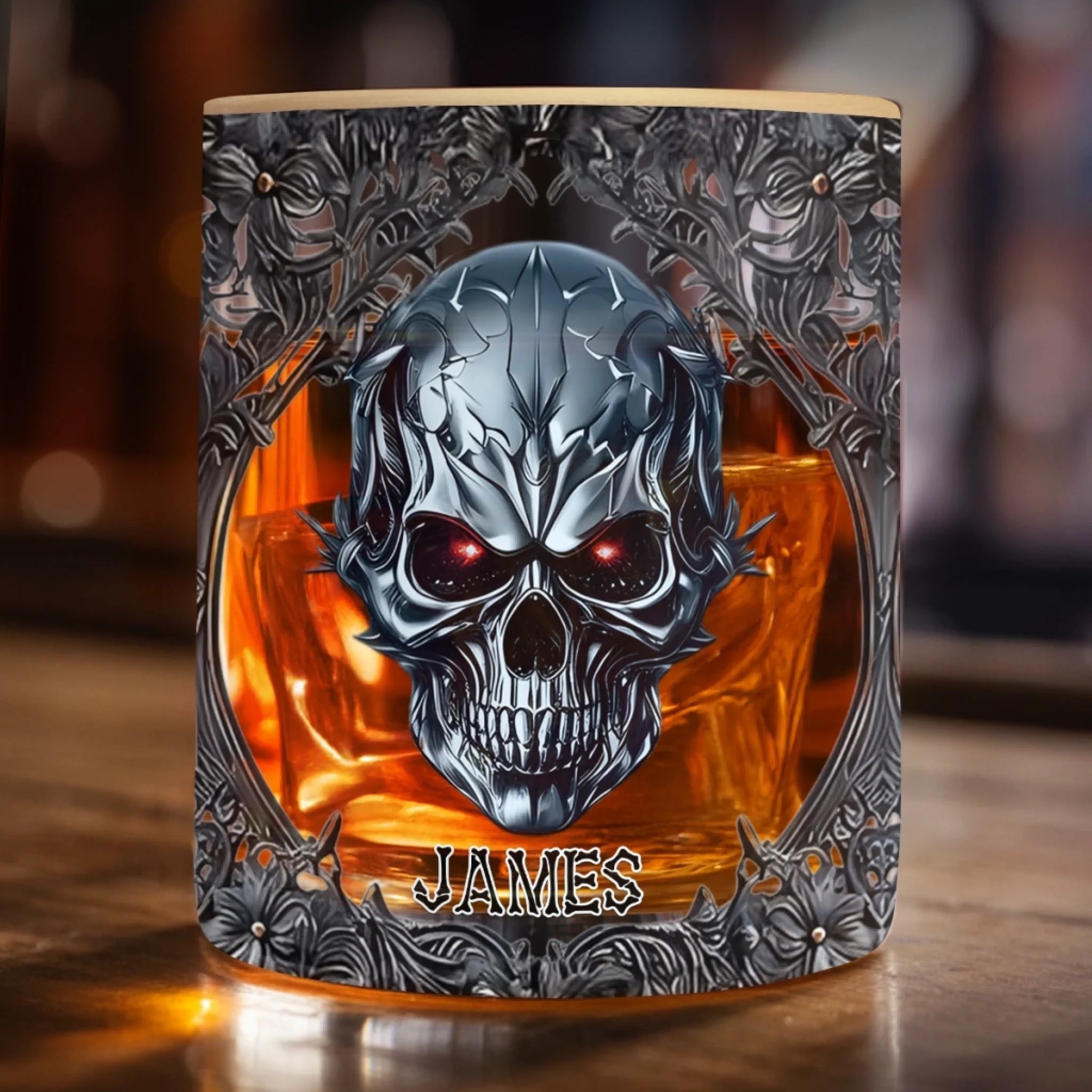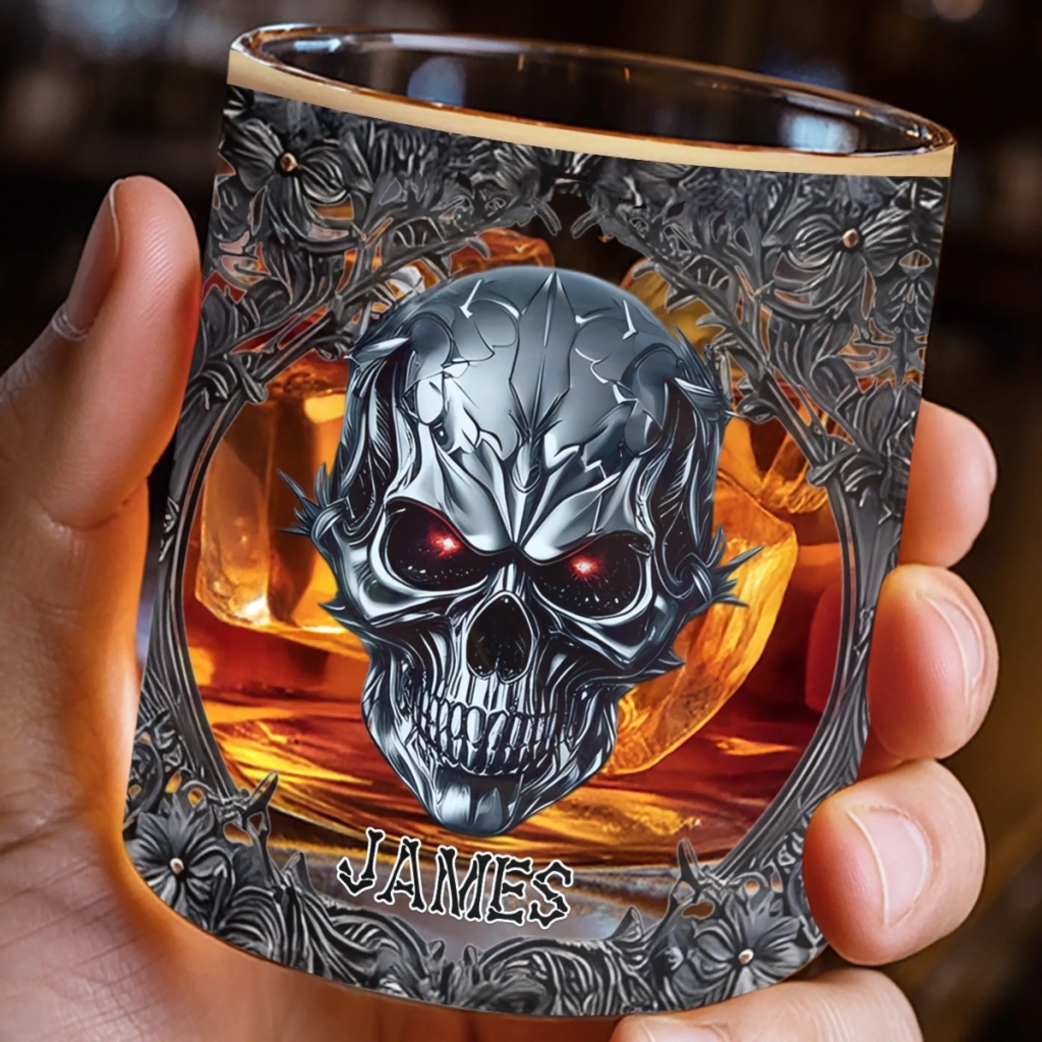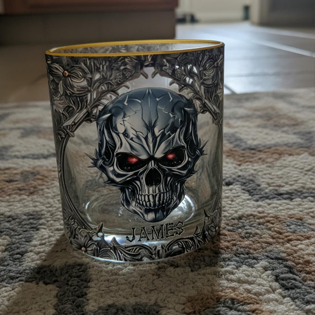 Custom Gothic Skull Whiskey Glass - Personalized Birthday Gifts For Bikers, Rock Music Fans, Best Friends, Family, Whiskey Lovers - Be Cool, Be Wild