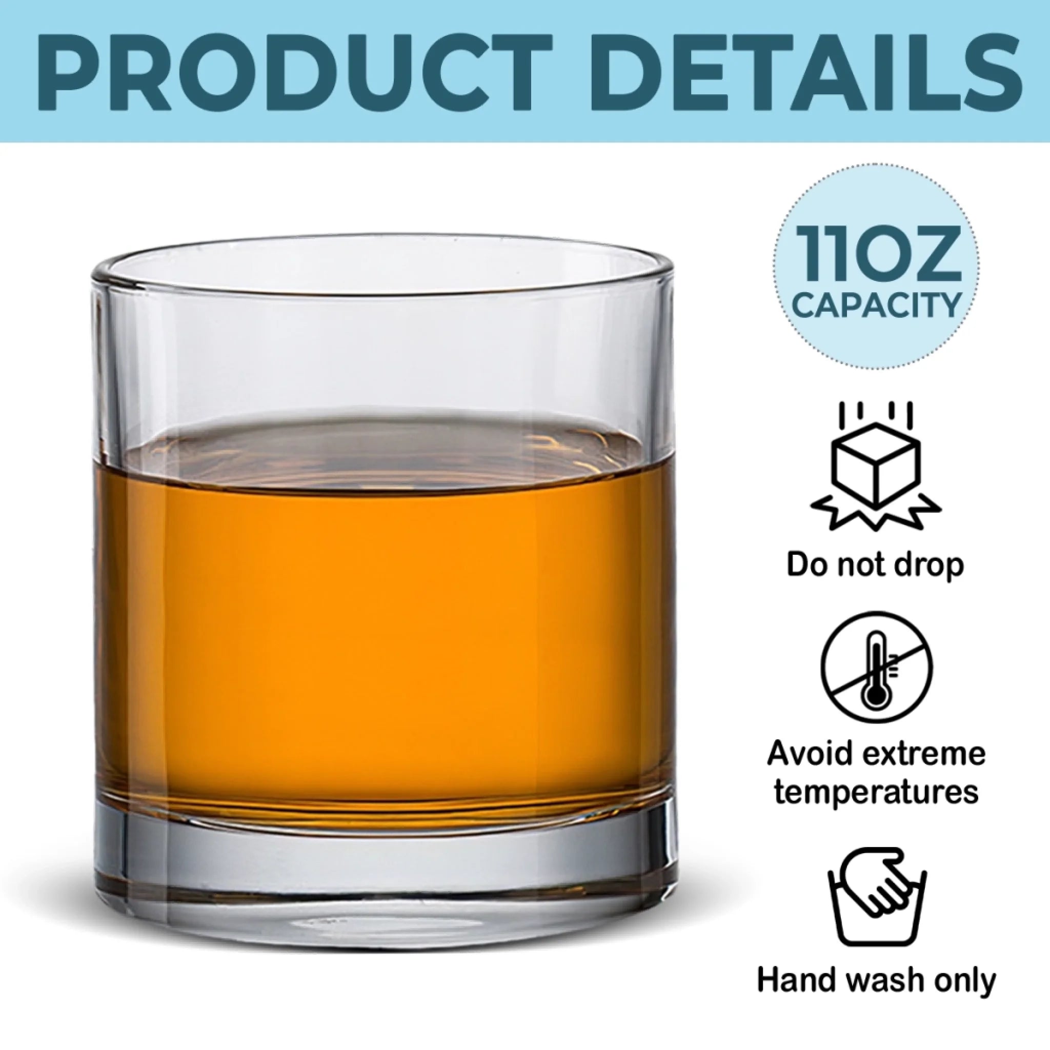 • Durable glass construction is ideal for whiskey, cocktails, or any cold beverage.