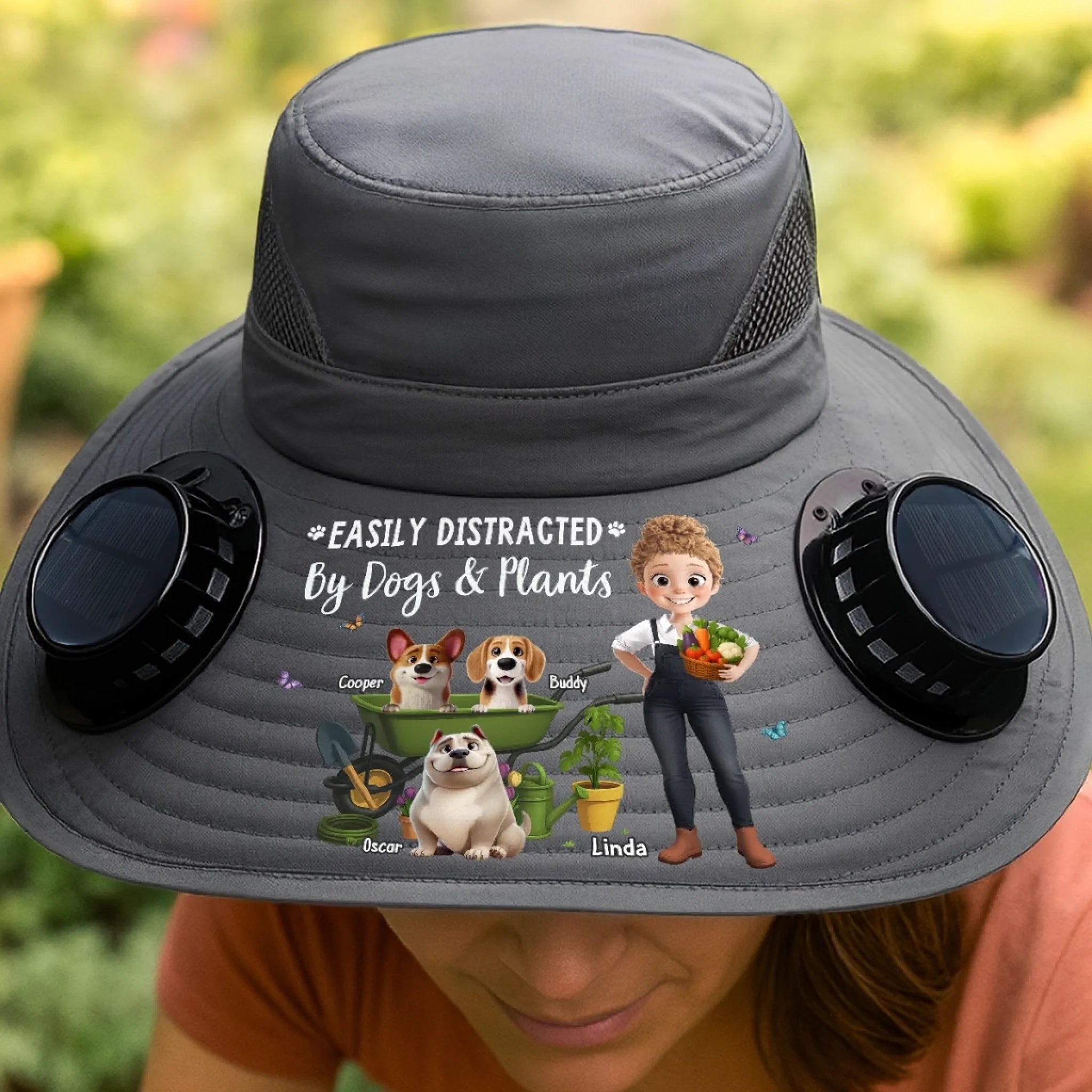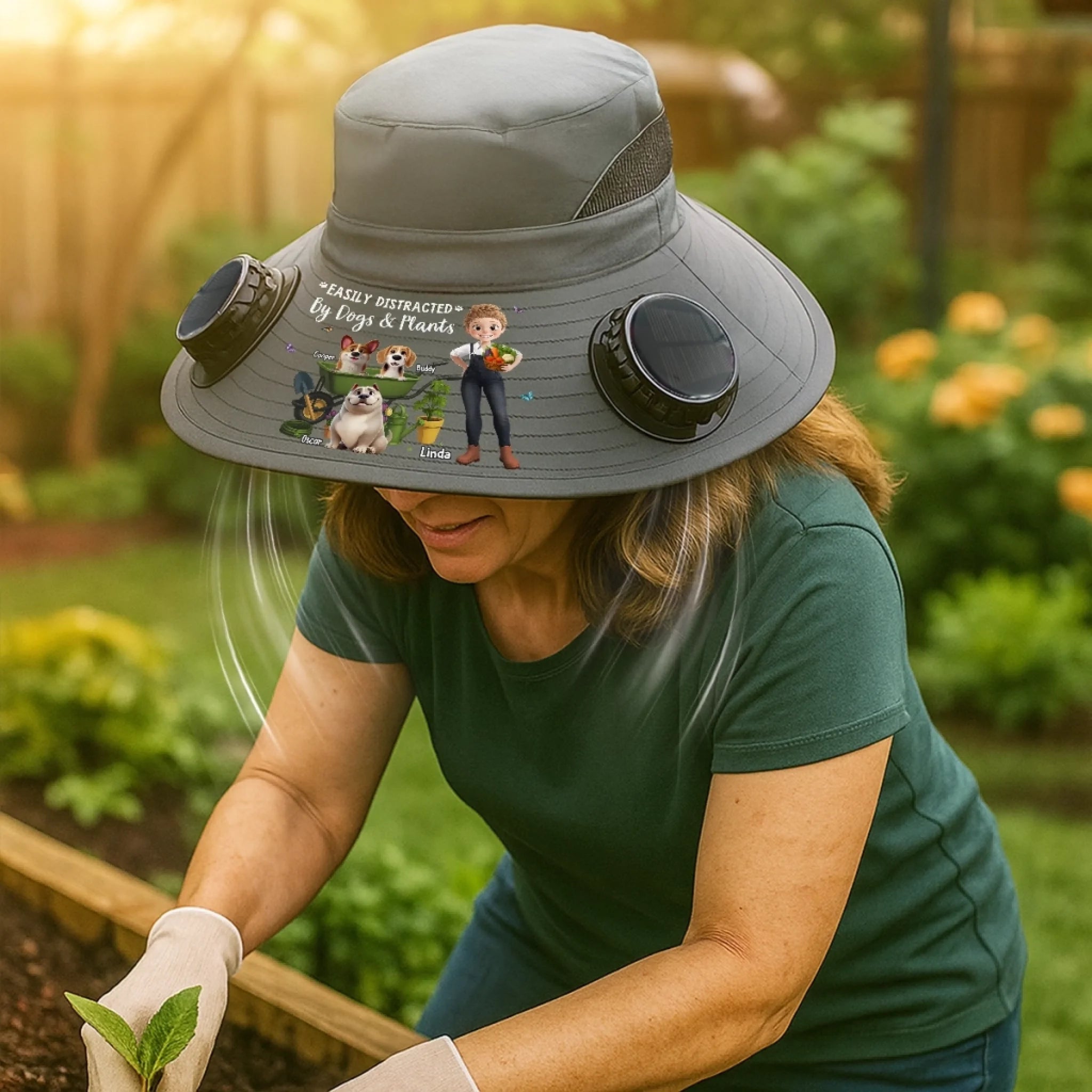 Custom Hat With Fans Solar Power - Personalized Garden Gifts For Gardeners, Dog Lovers, Dog Dad And Mom - Garden Goals and Furry Friends