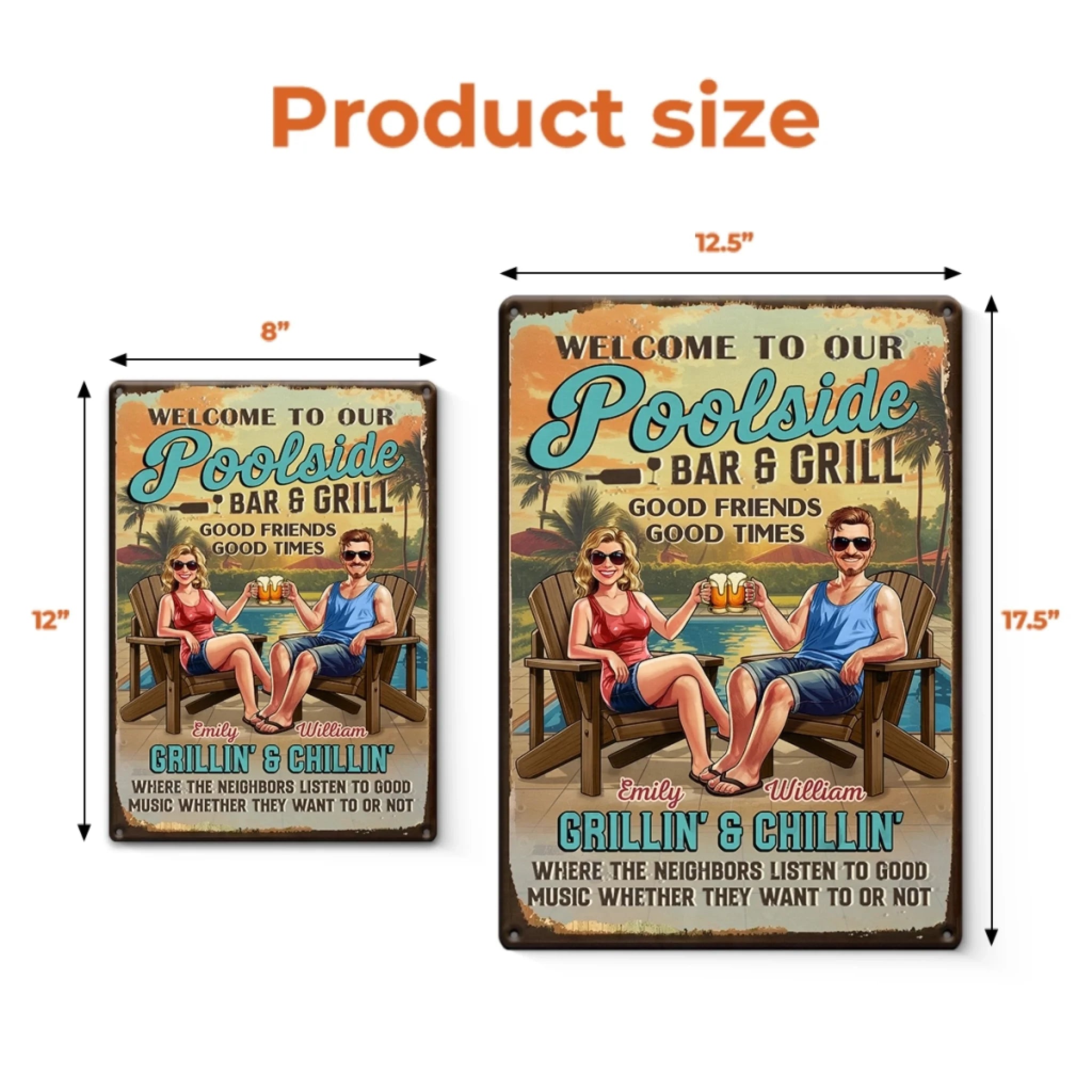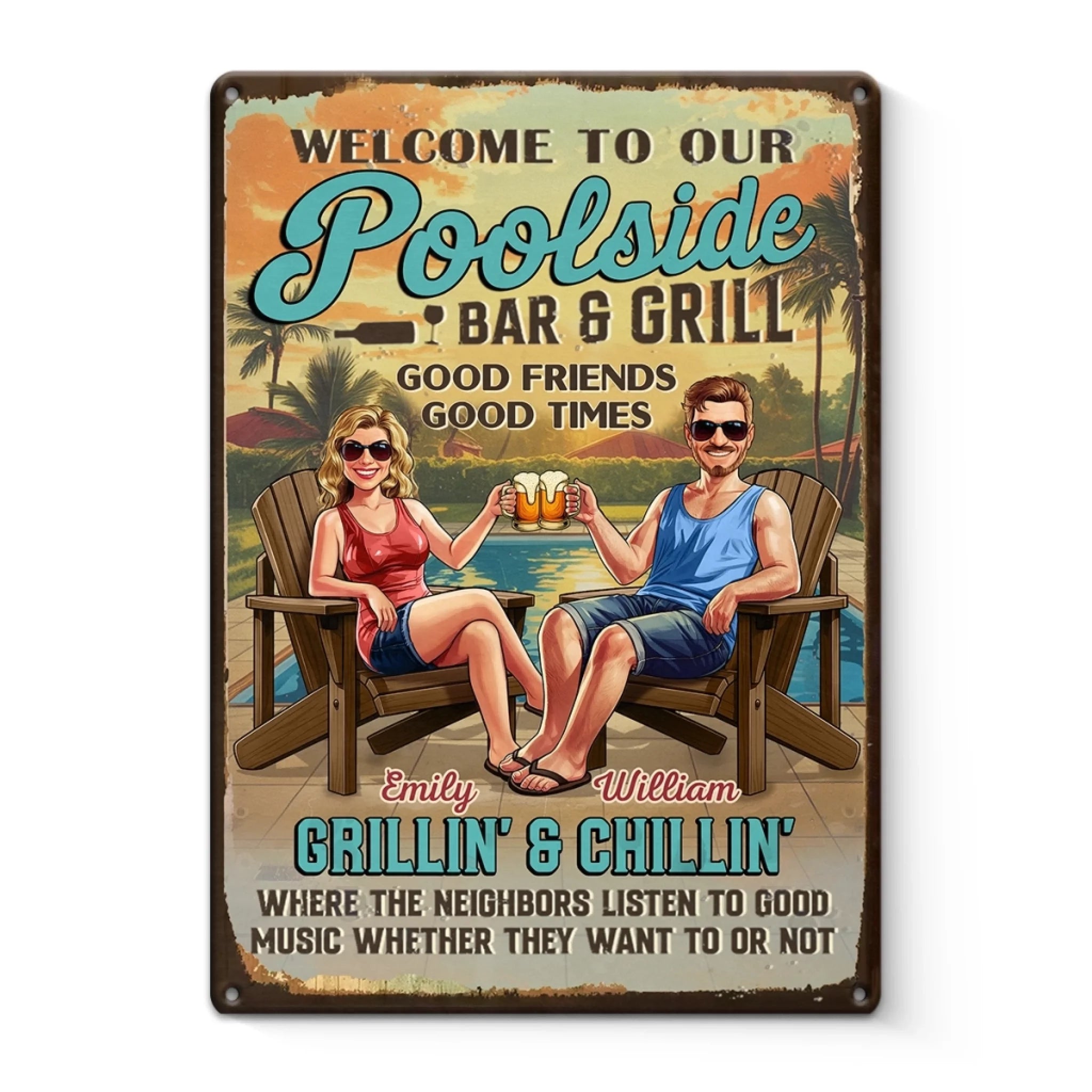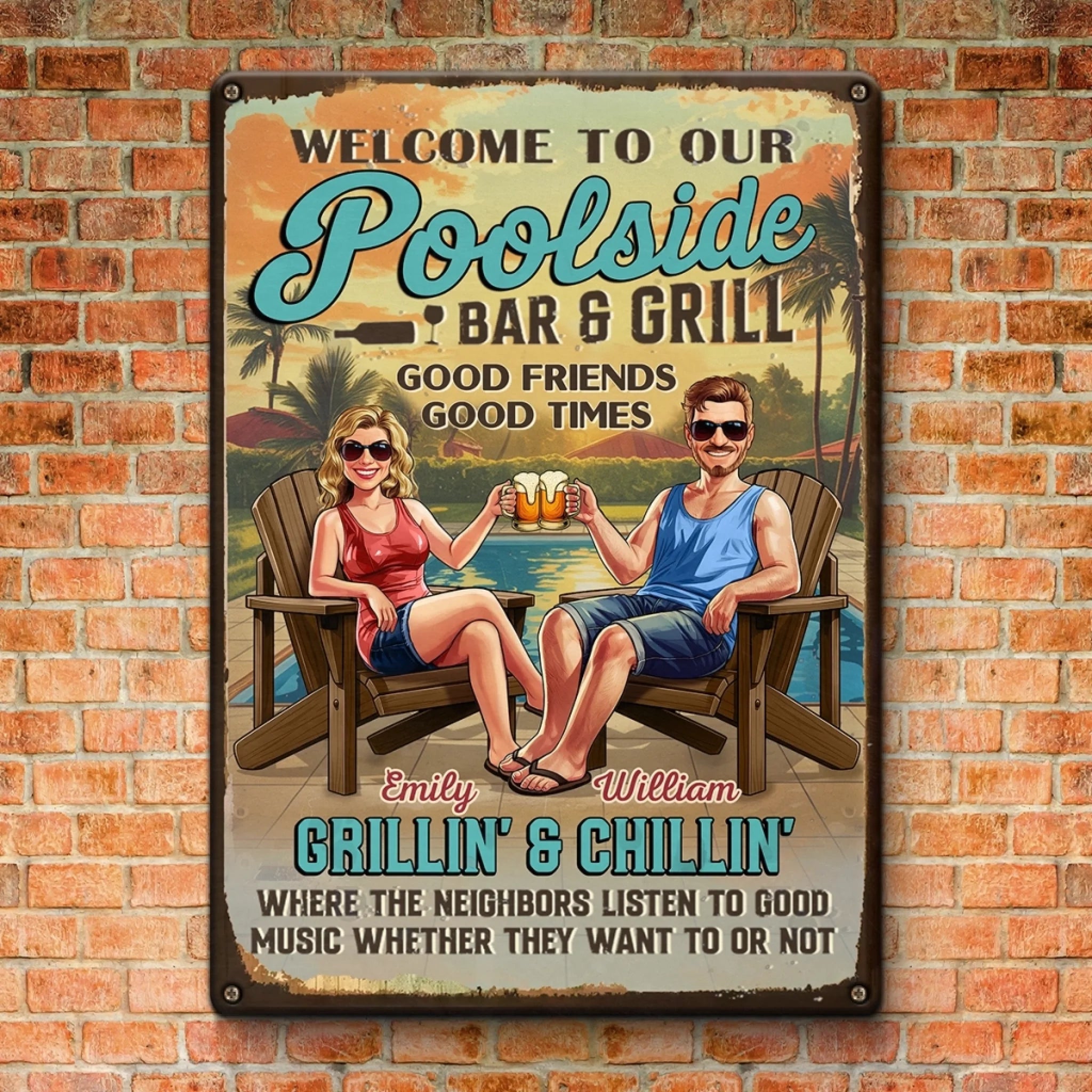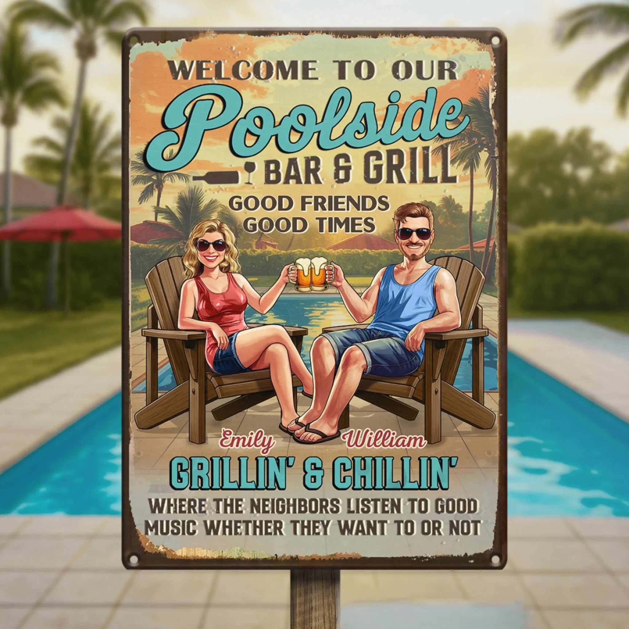 Custom Home Decor Metal Sign - Personalized Anniversary Wedding Gifts For Husband And Wife, Him And Her - Poolside Vibes Only