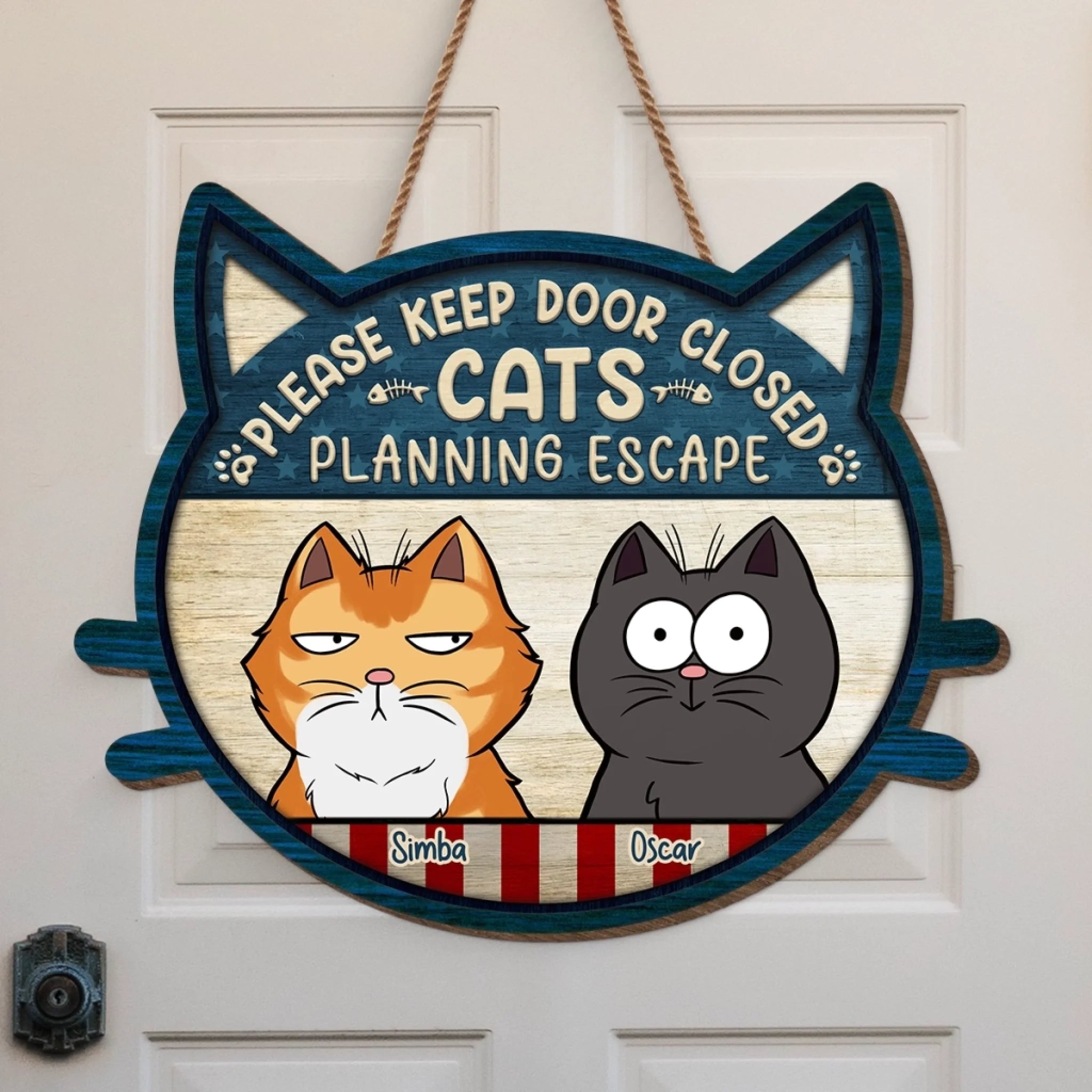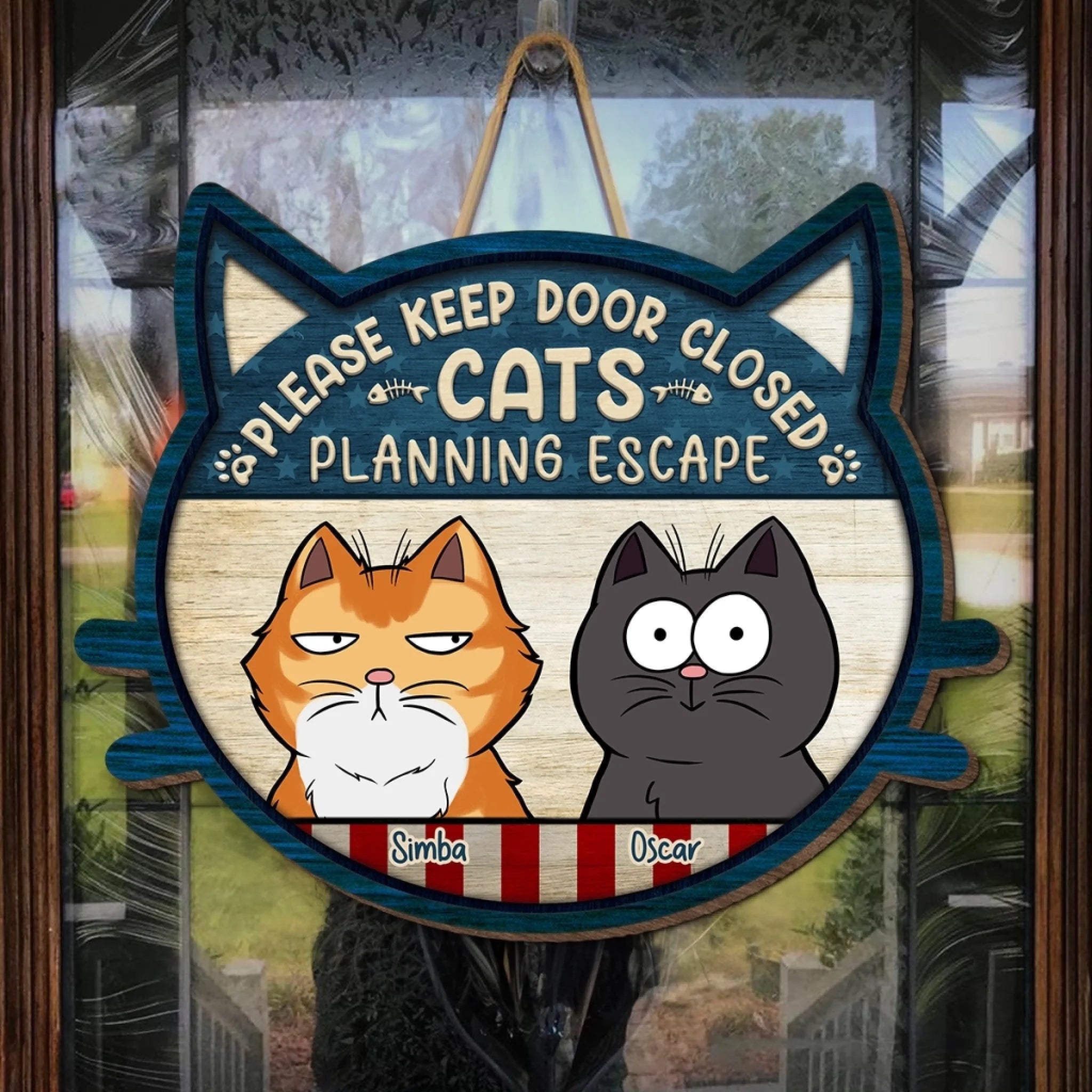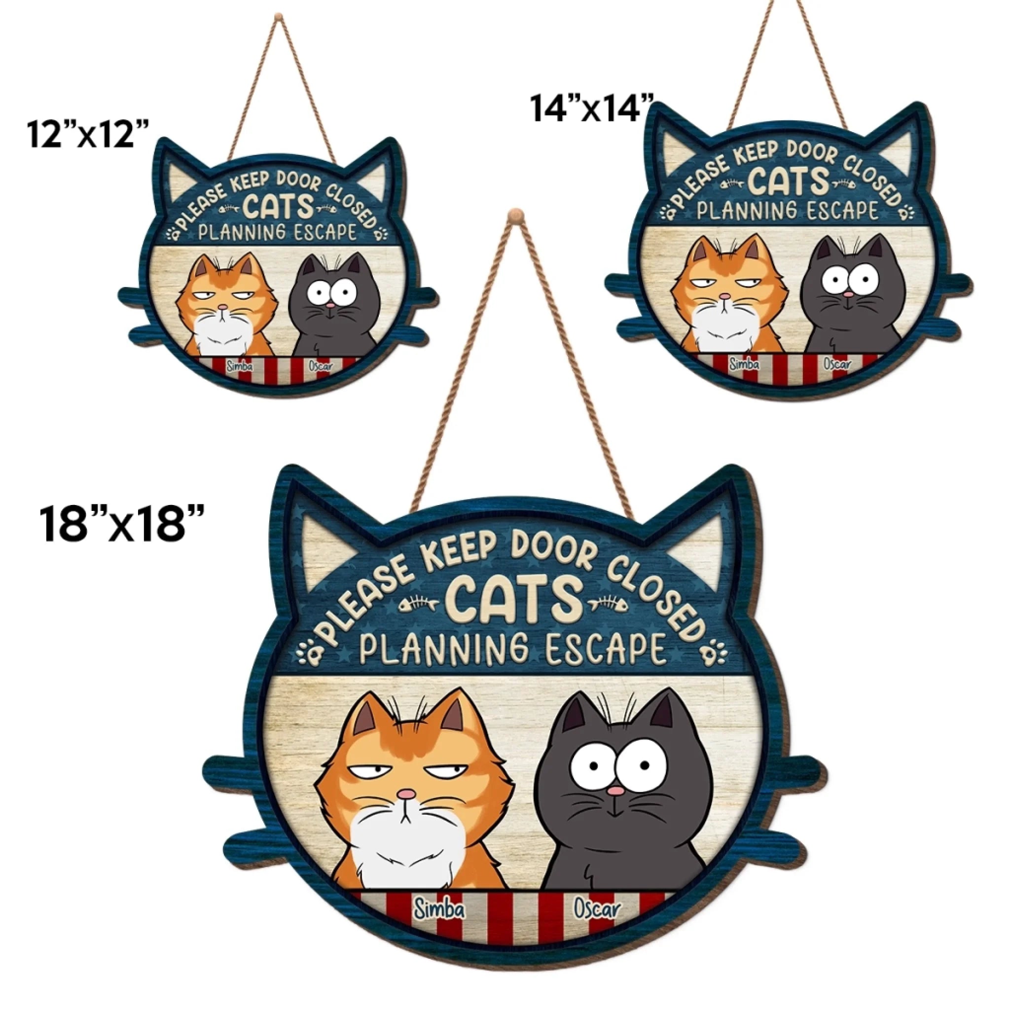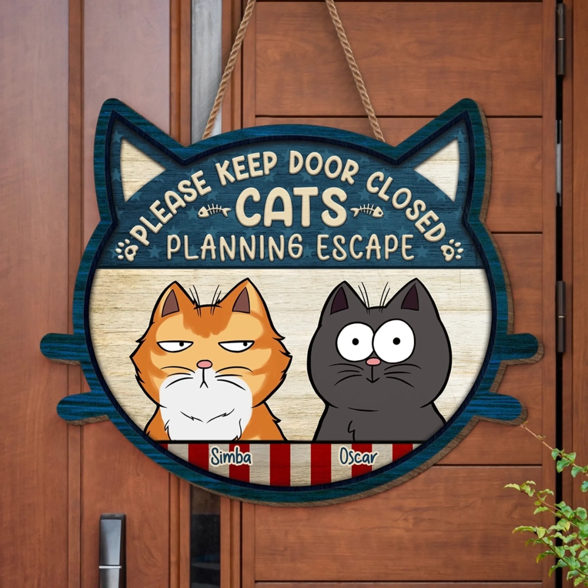 Custom Home Decor Wood Sign - Personalized Birthday Gifts For Cat Lovers, Cat Mom And Dad - Please Keep Door Closed