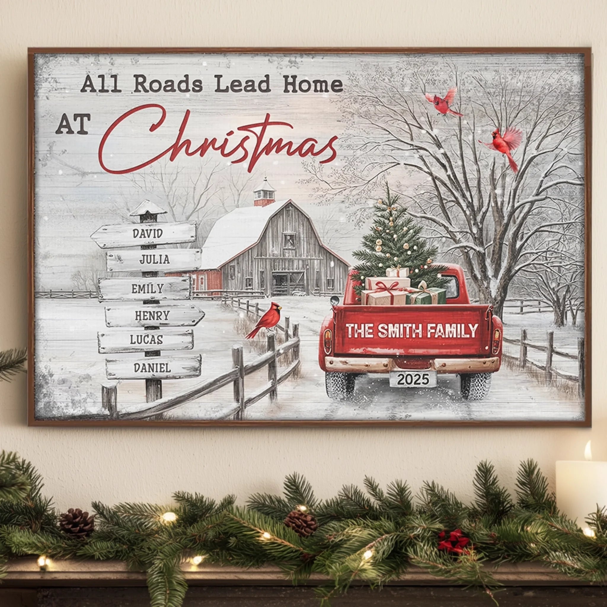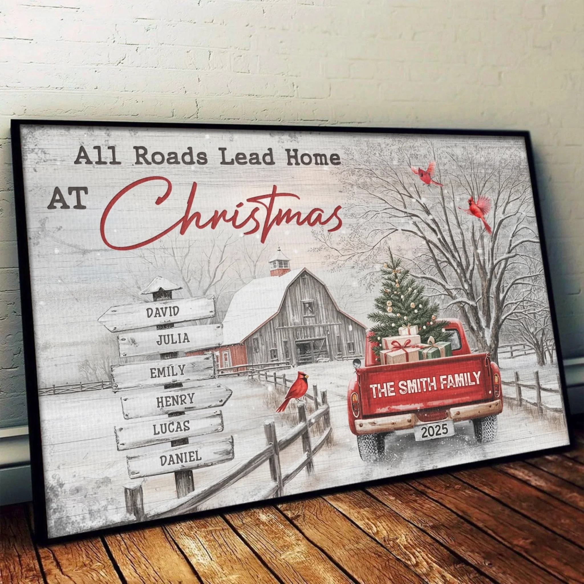 Custom Horizontal Poster - Personalized Christmas Birthday Gifts For Mom, Dad, Brother, Sister, Kids - Every Road Leads Back To Family
