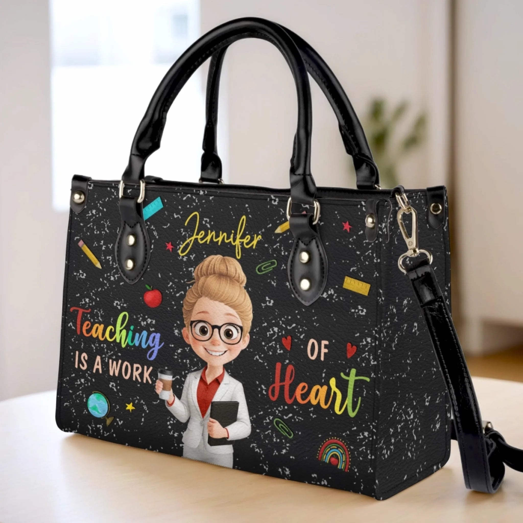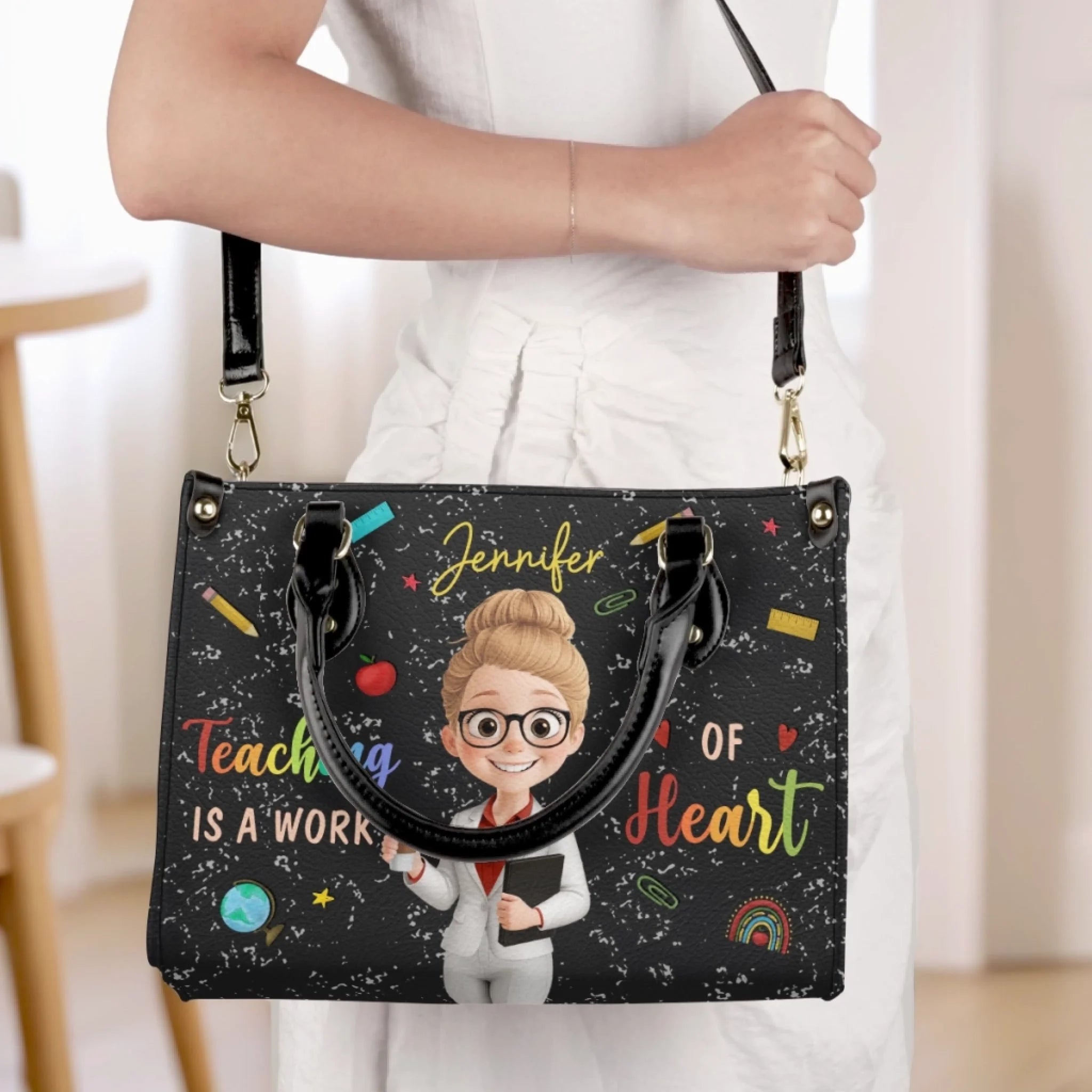 Custom Leather Handbag - Personalized Birthday Gifts For Teachers - Teaching Is A Work Of Heart