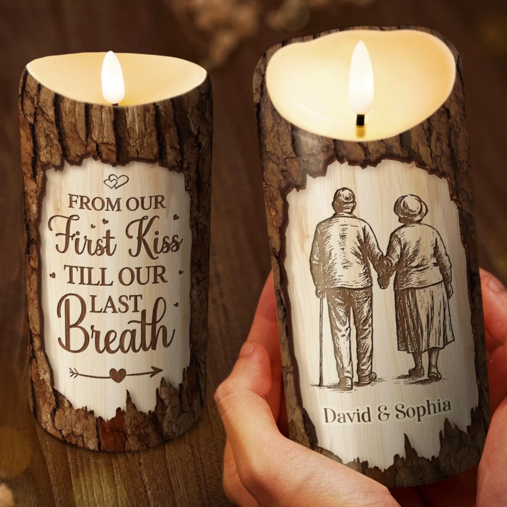Custom LED Candle - Personalized Anniversary Wedding Gifts For Husband And Wife, Him And Her - Our Love Lights On