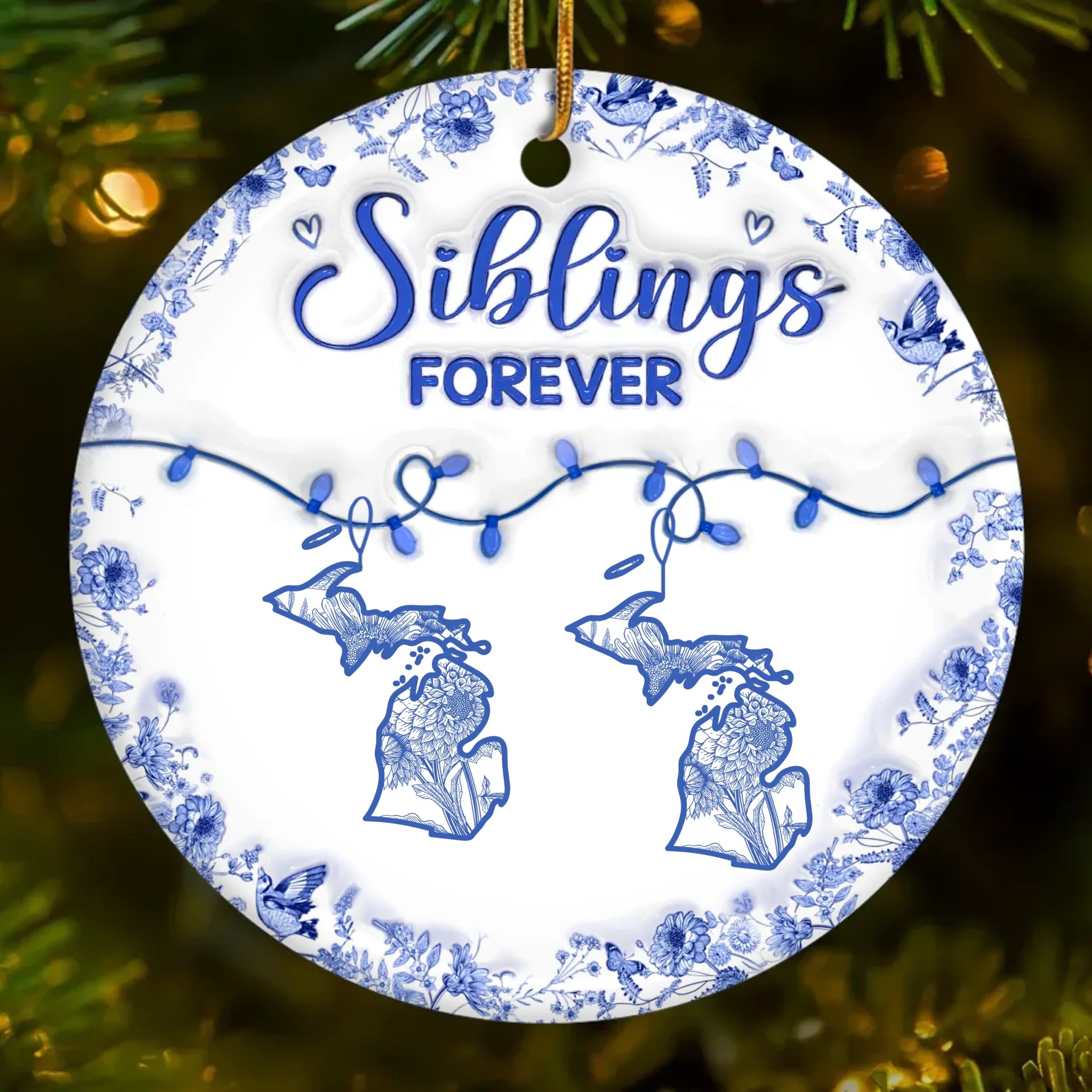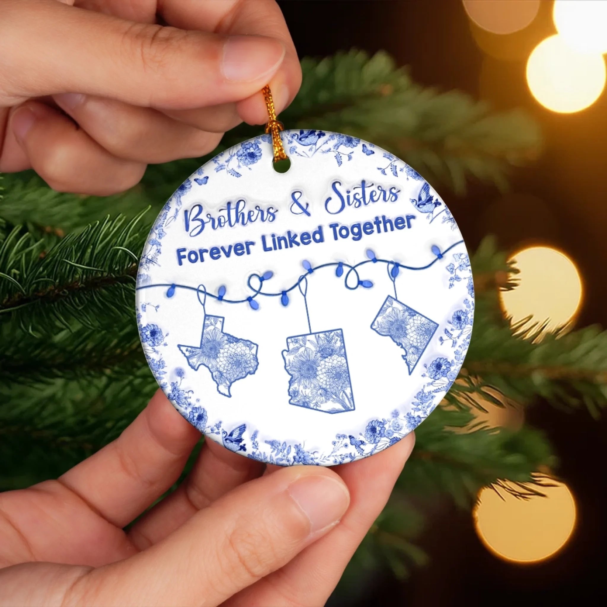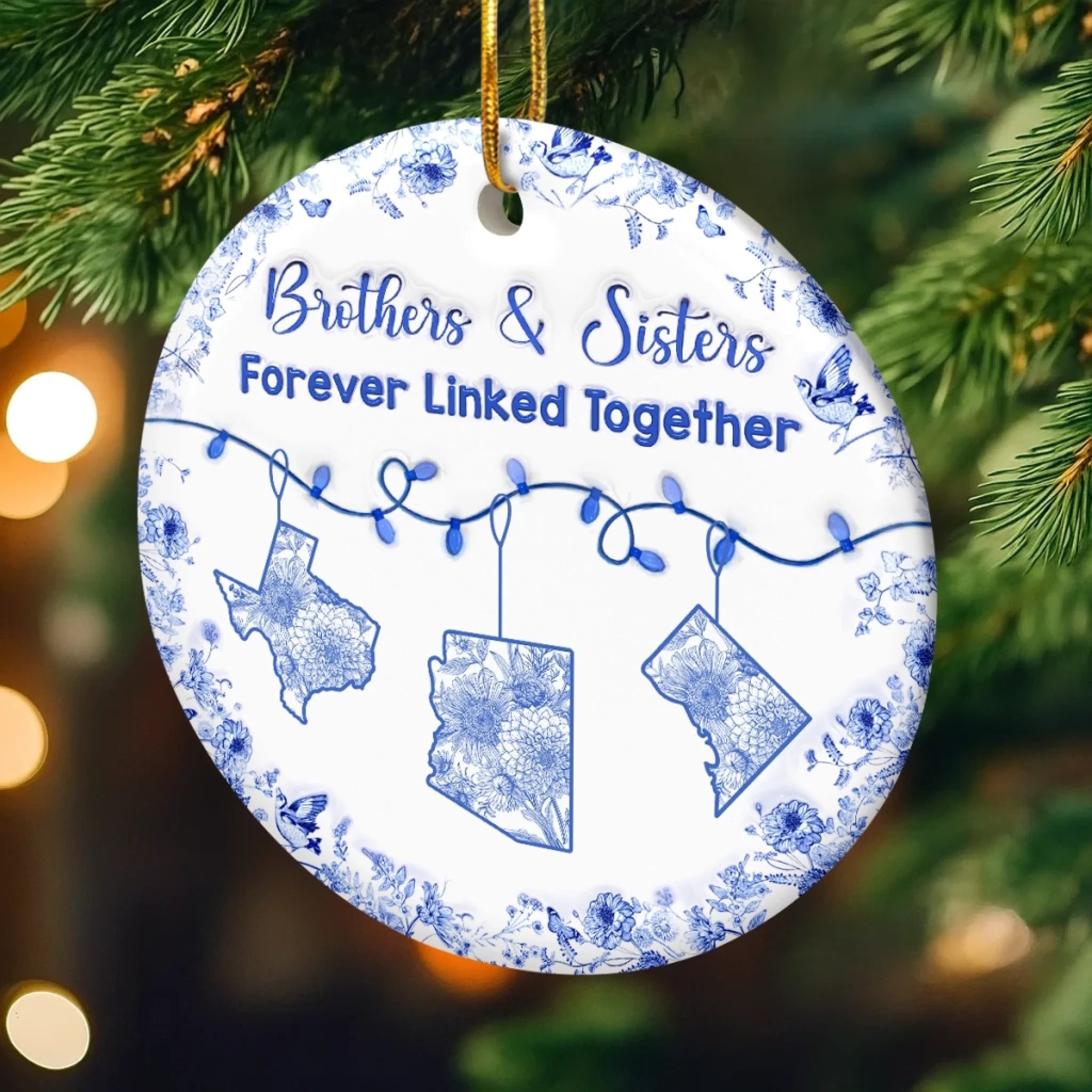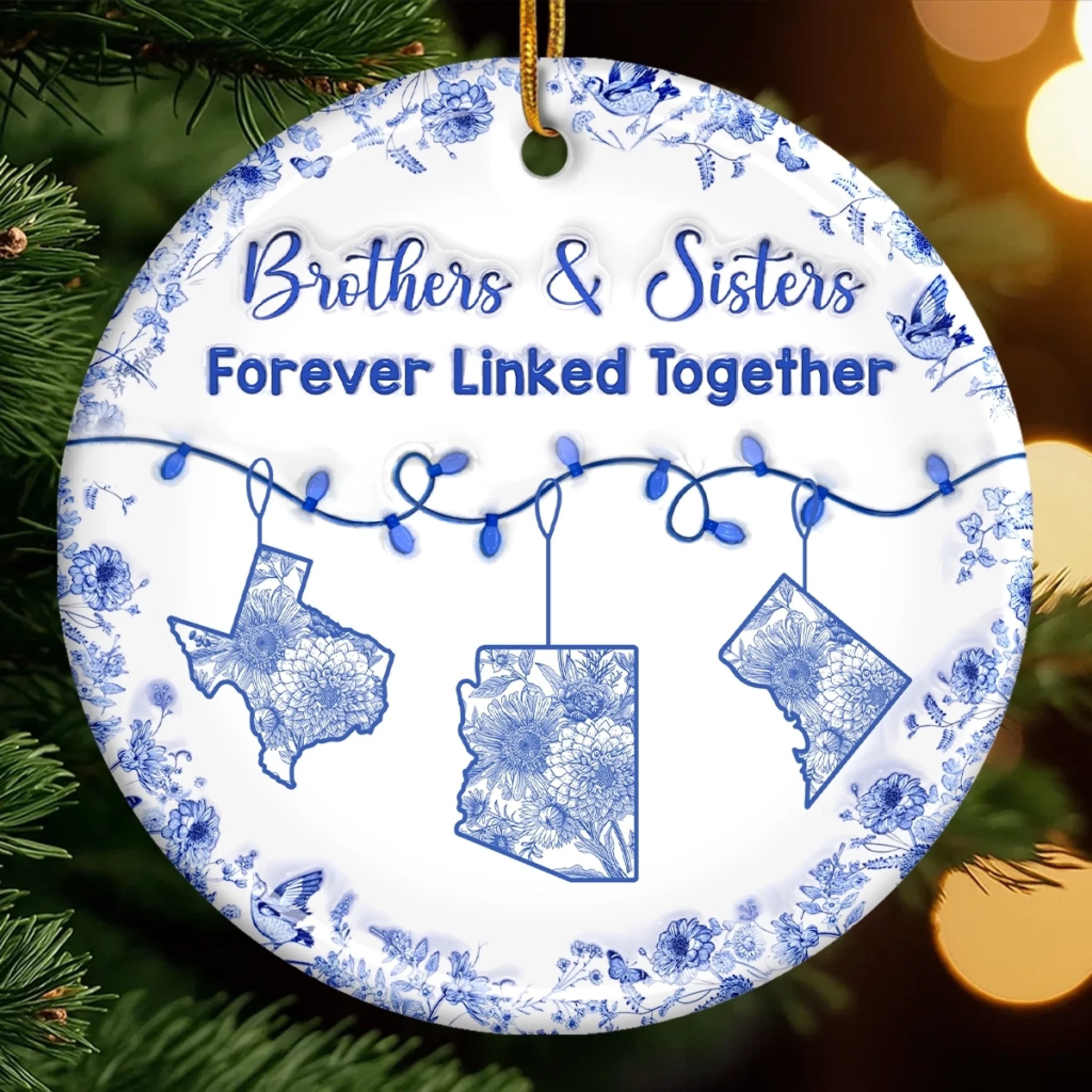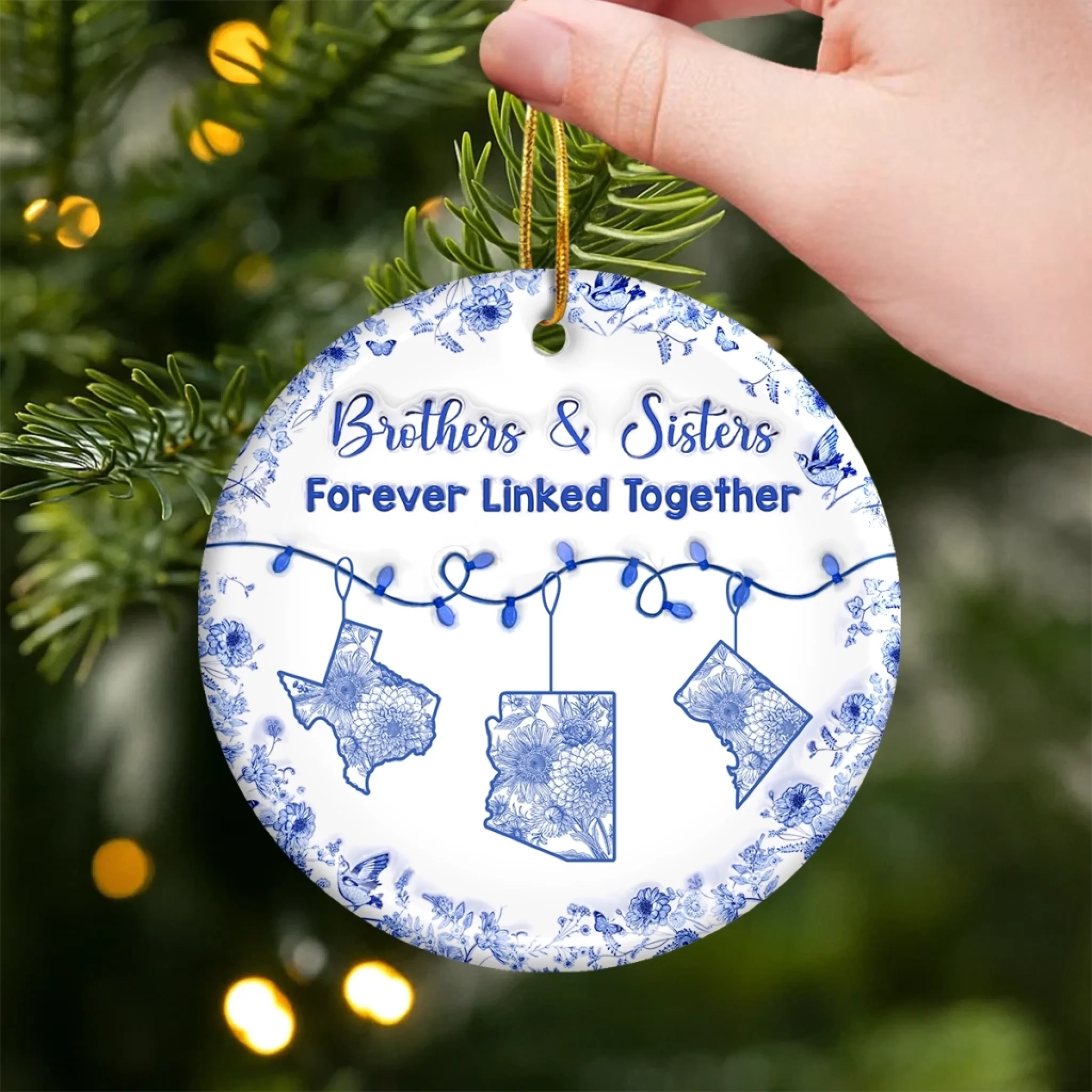 Custom Long Distance Ceramic Ornament - Personalized Christmas Birthday Gifts Brother, Sister - Miles Apart Same Heart