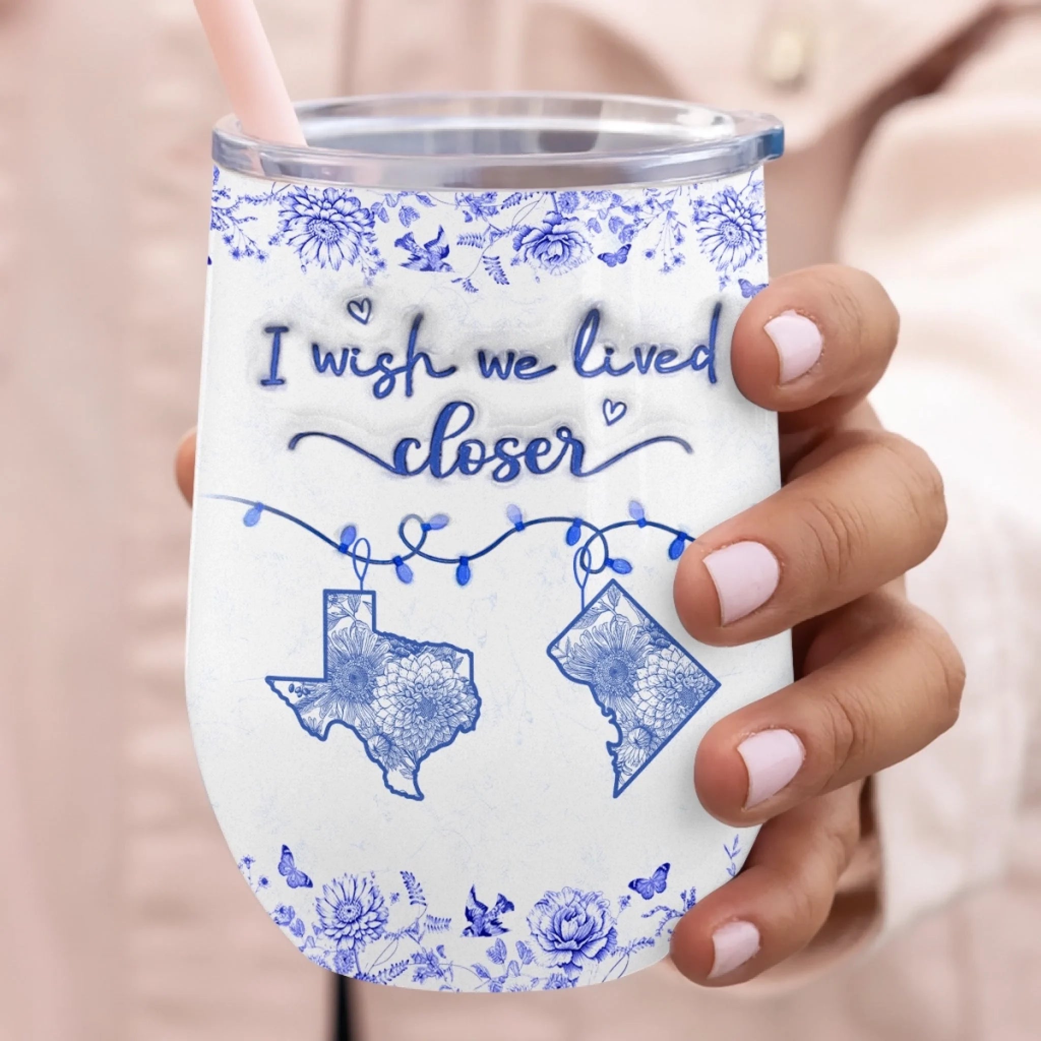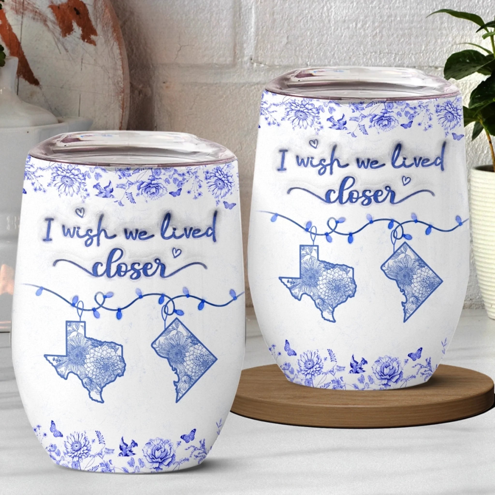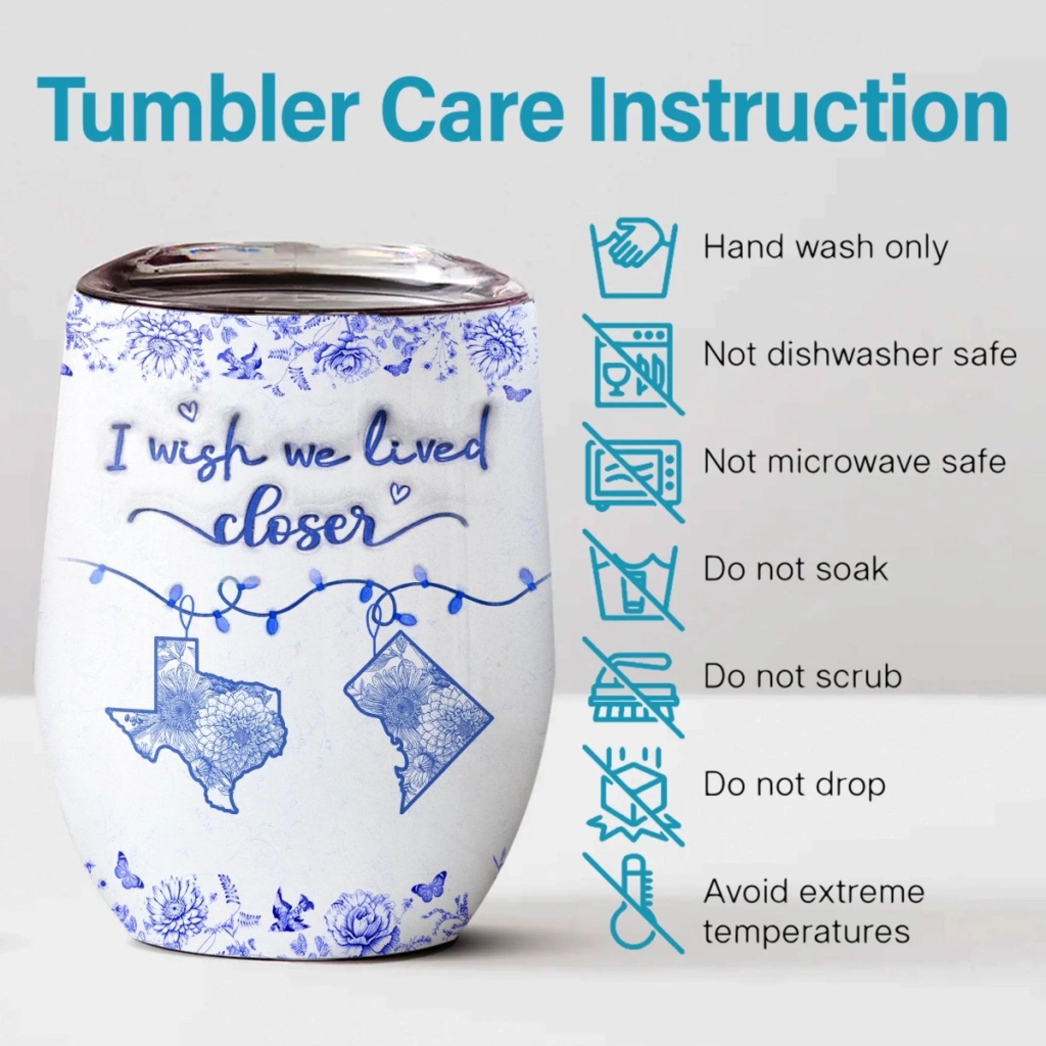 Custom Long Distance Wine Tumbler - Personalized Best Friend Birthday Gifts For Women, Besties, Sisters, BFF - Distance Means Nothing