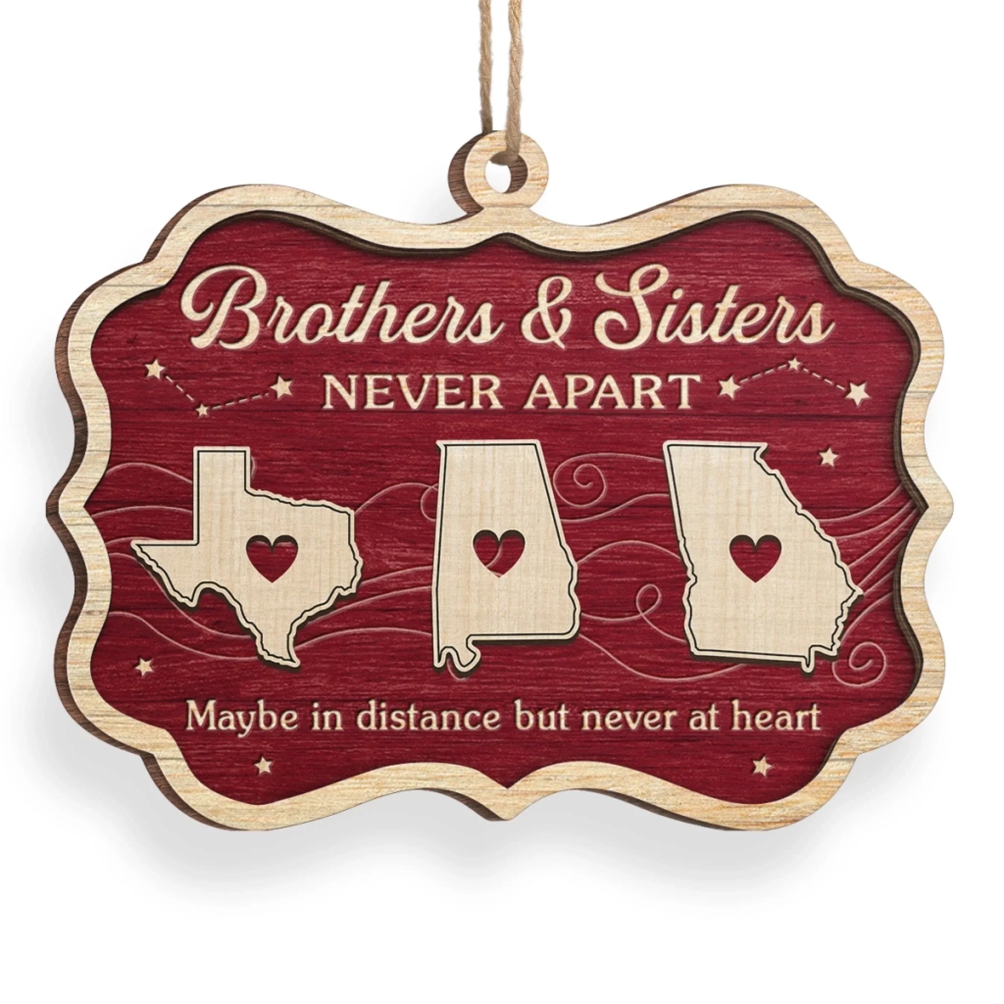 Custom Long Distance Wood Ornament - Personalized Christmas Birthday Gifts For Brother, Sister - Sibling Love Knows No Borders